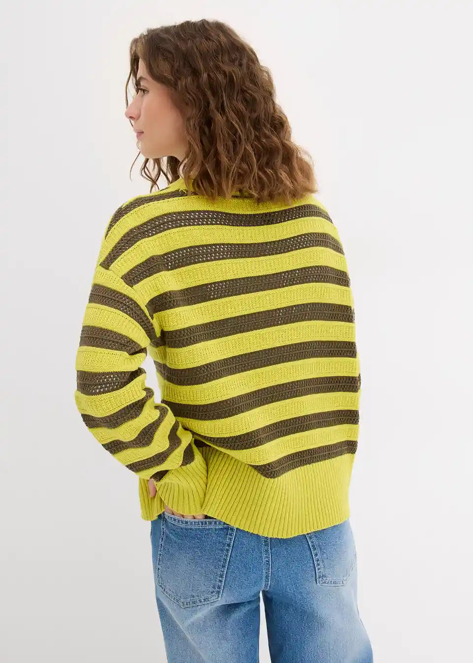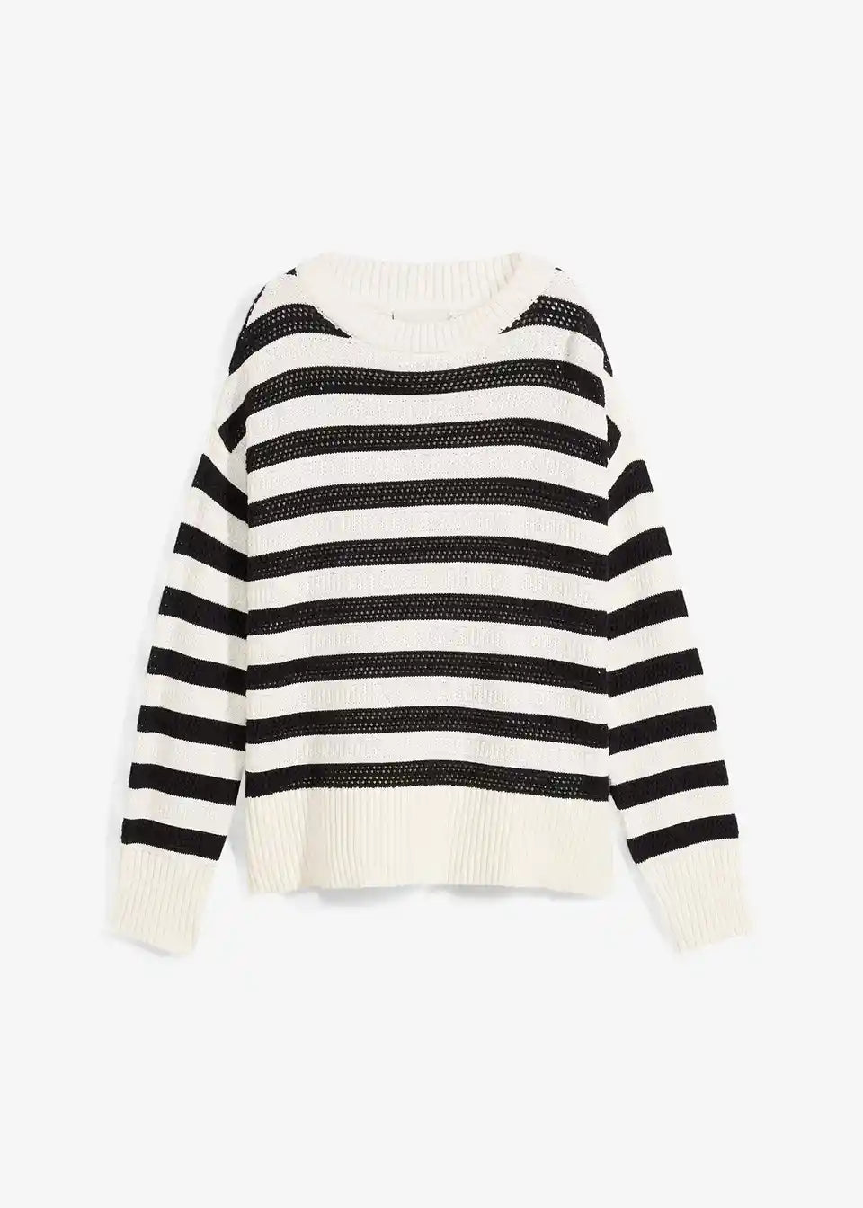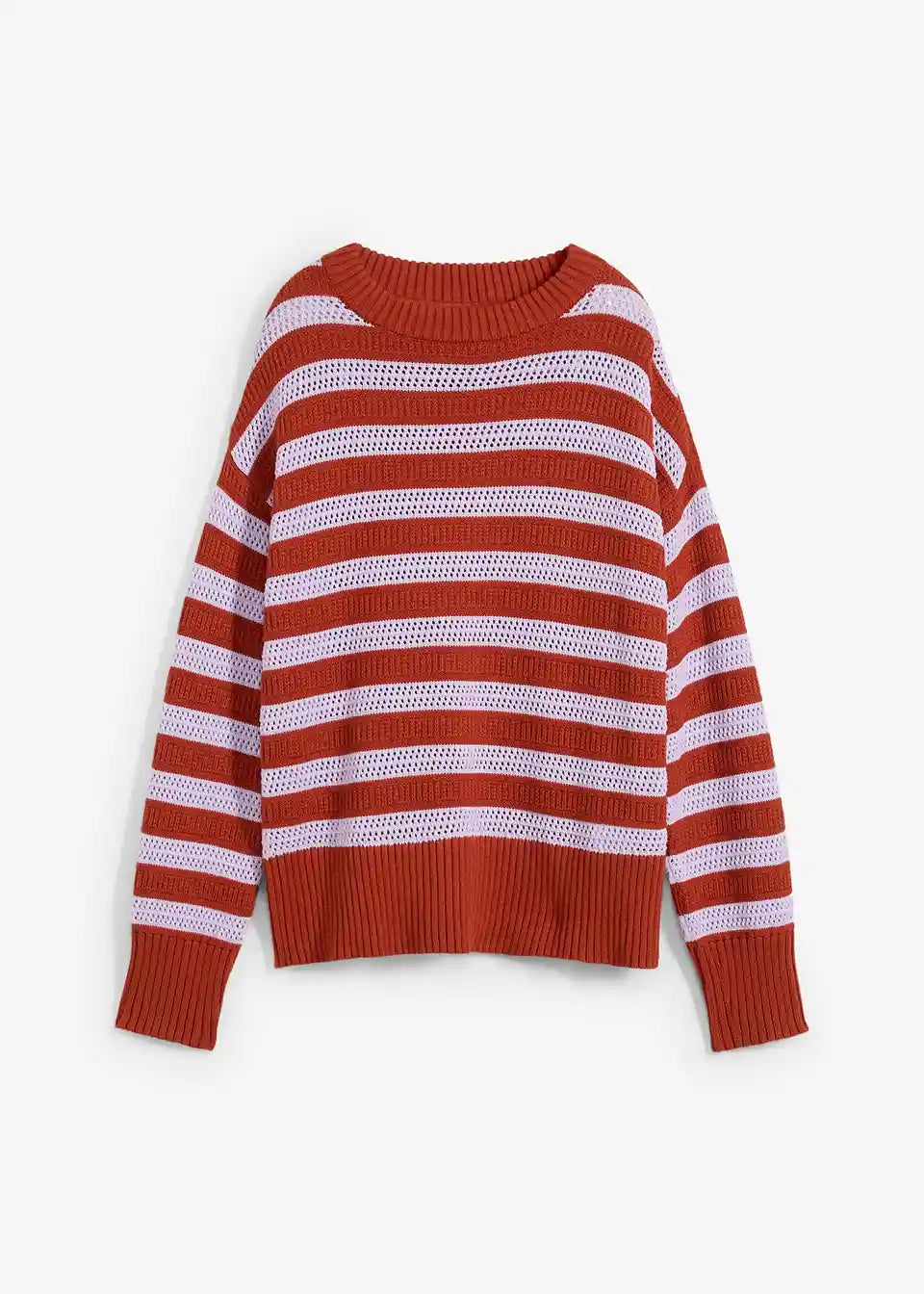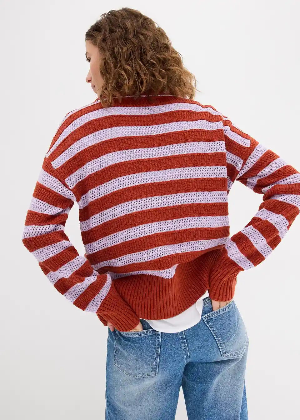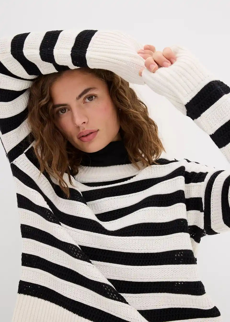 Pulover v kvadratnem kroju iz ažurne pletenine