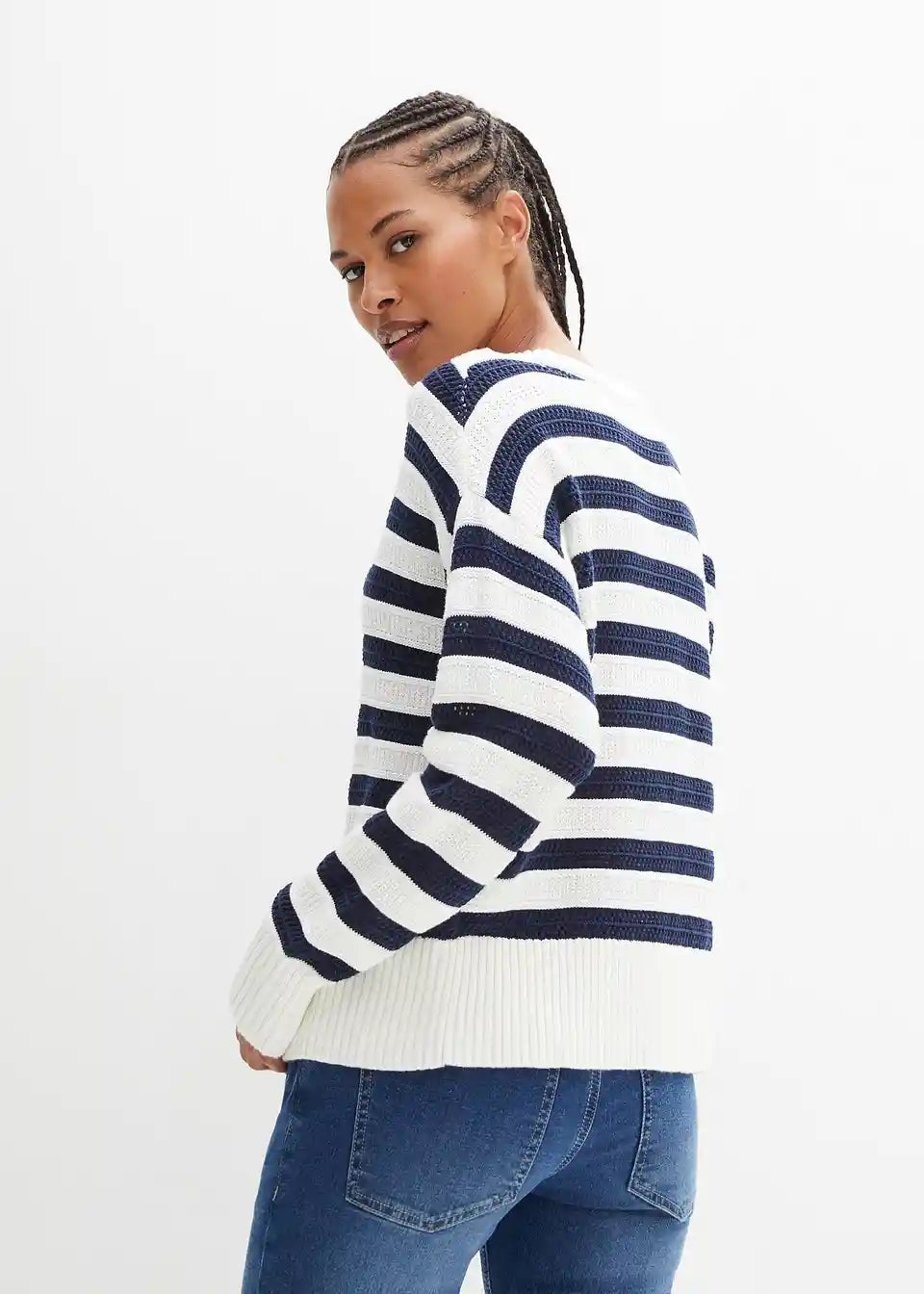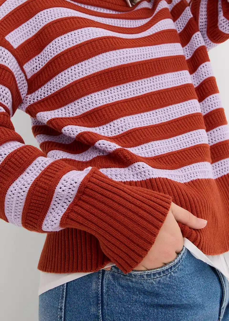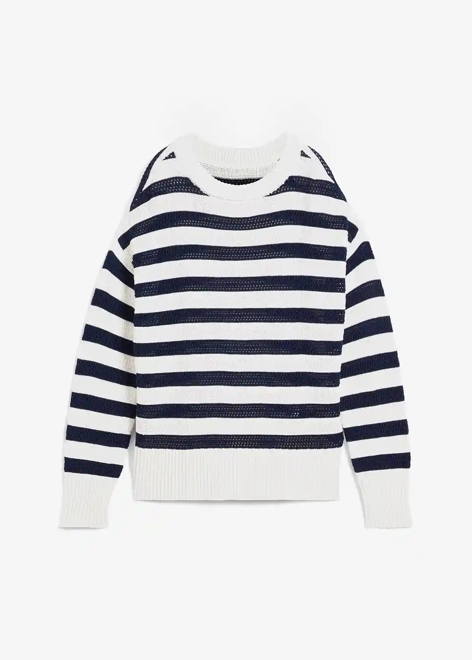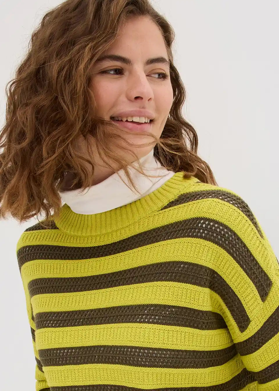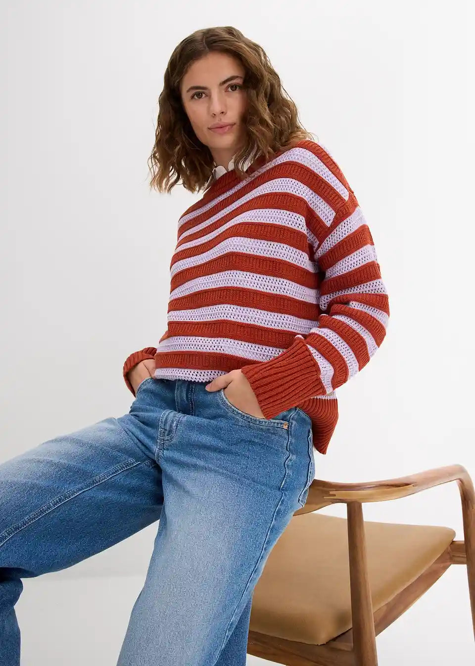 Pulover v kvadratnem kroju iz ažurne pletenine