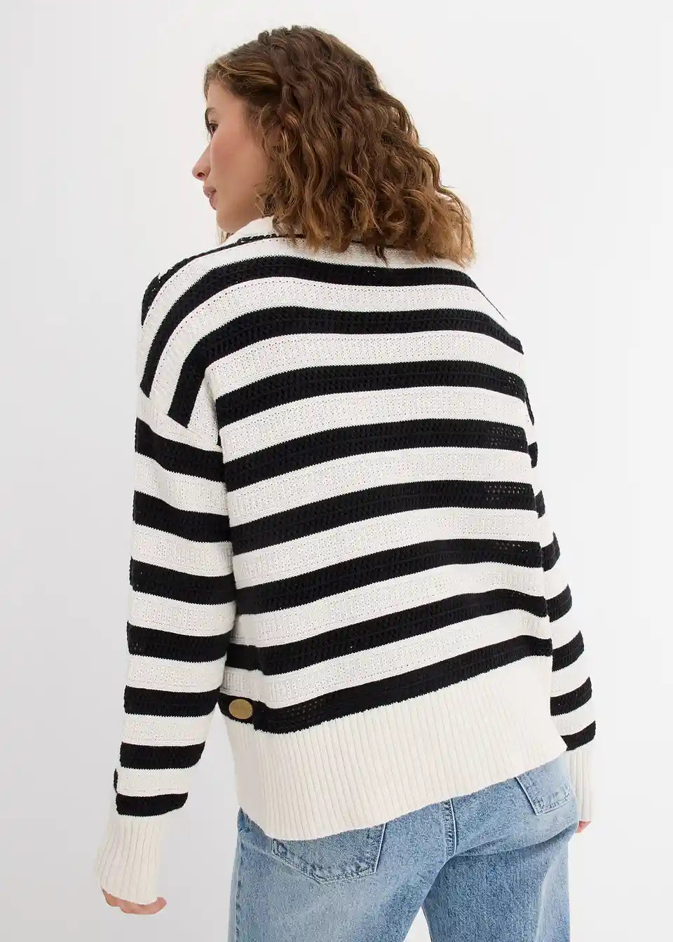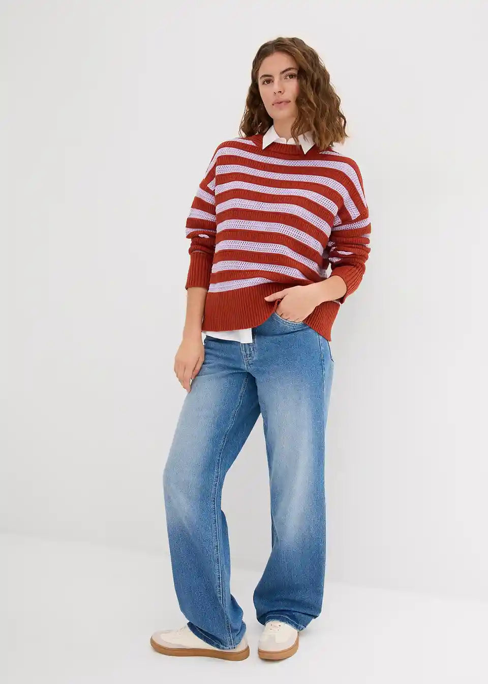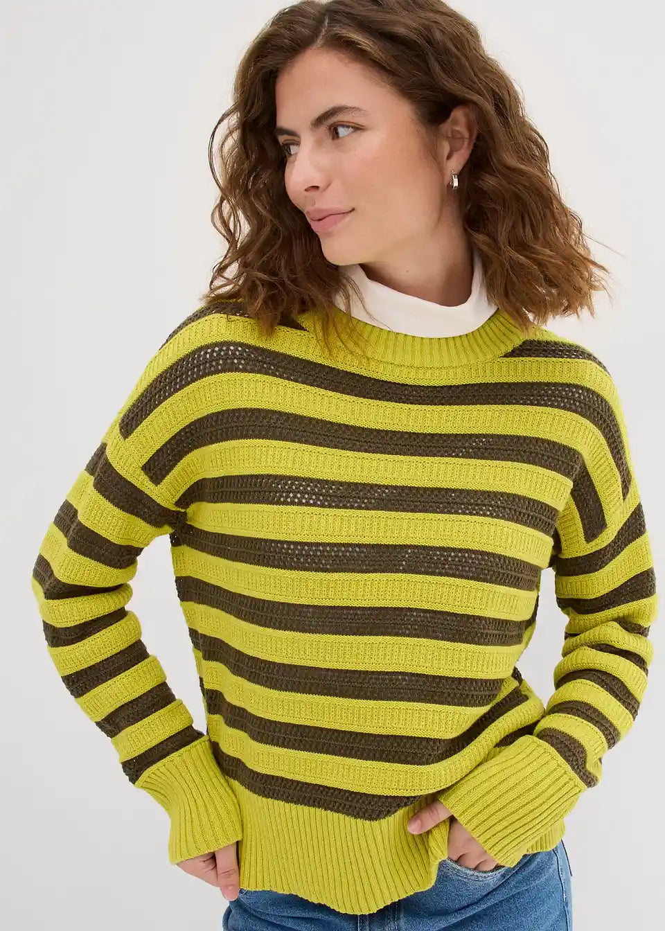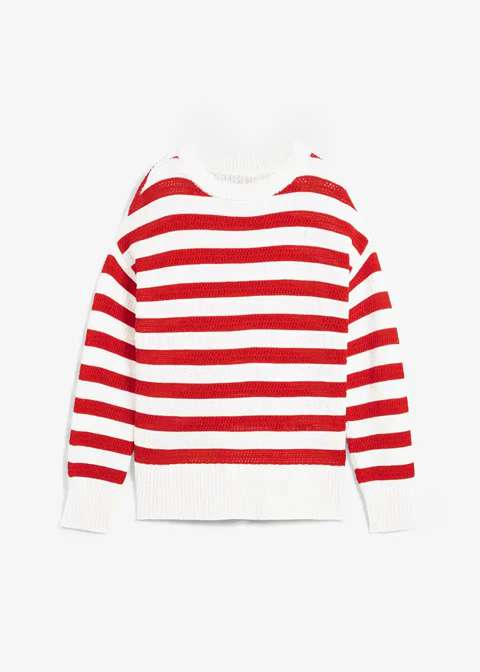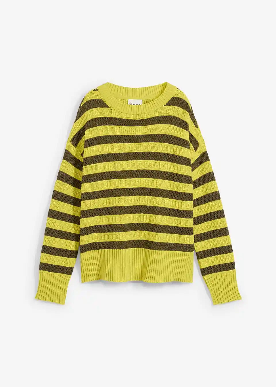 Pulover v kvadratnem kroju iz ažurne pletenine