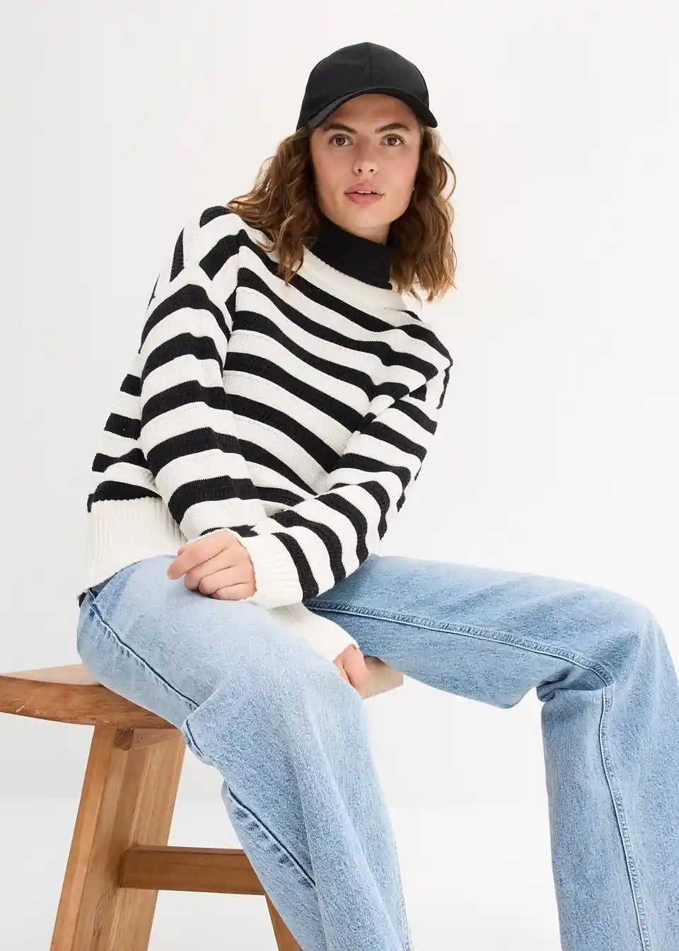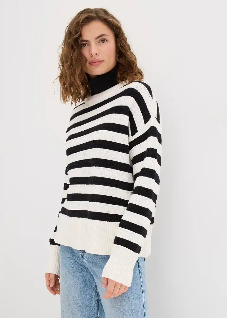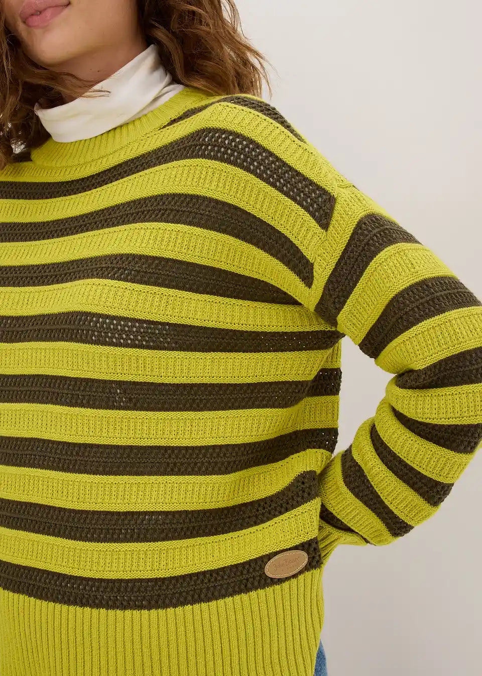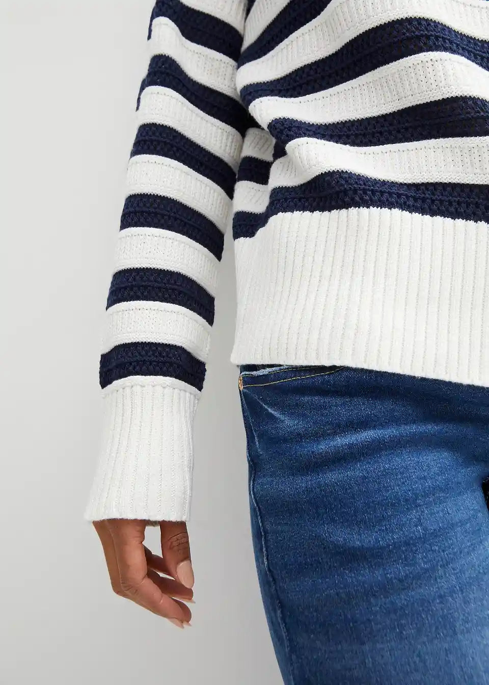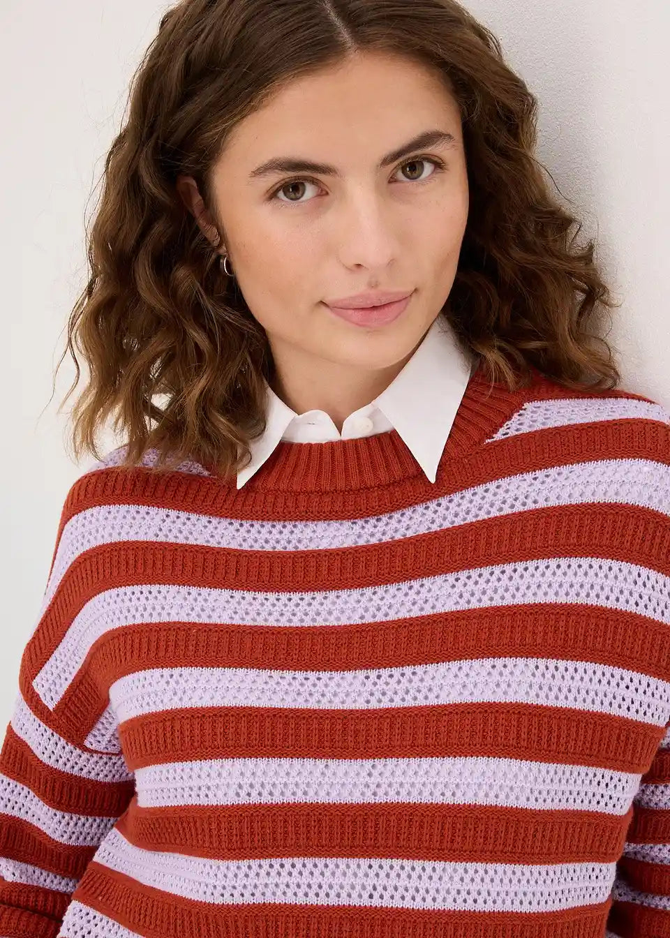 Pulover v kvadratnem kroju iz ažurne pletenine