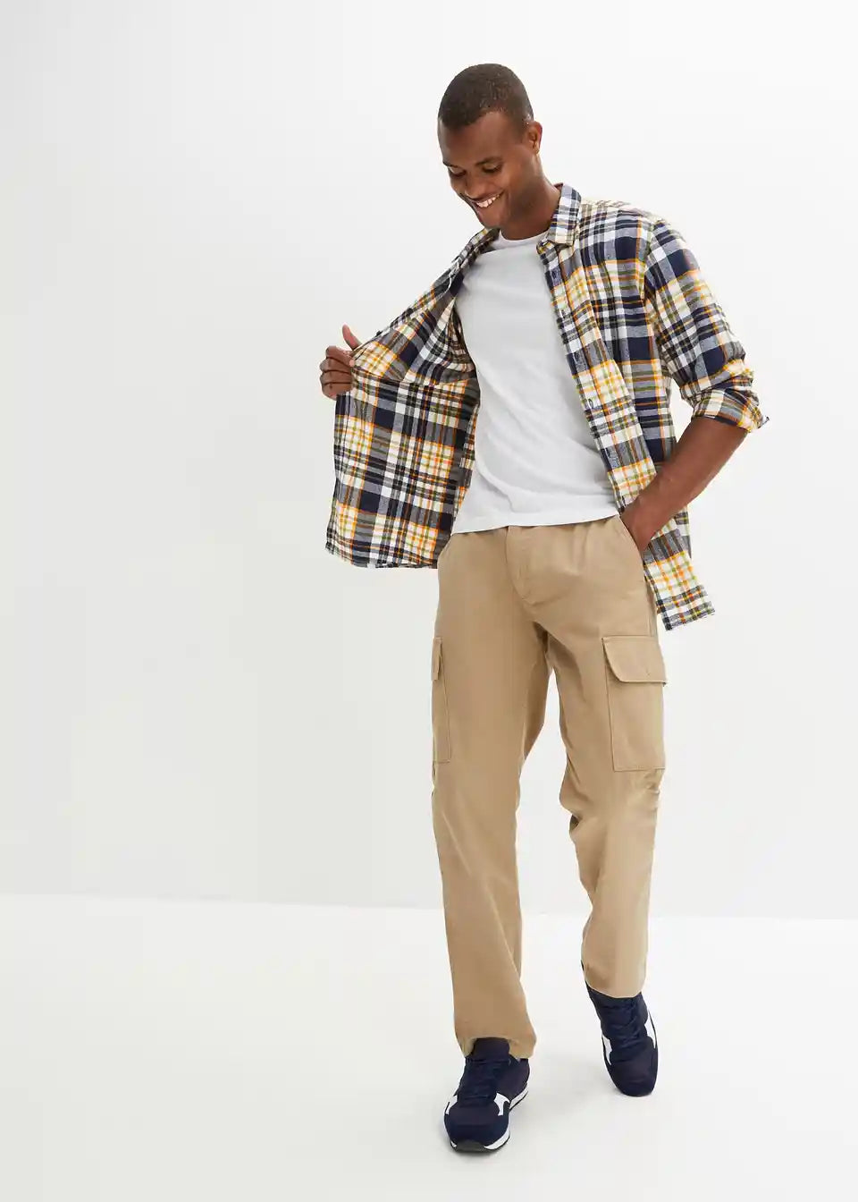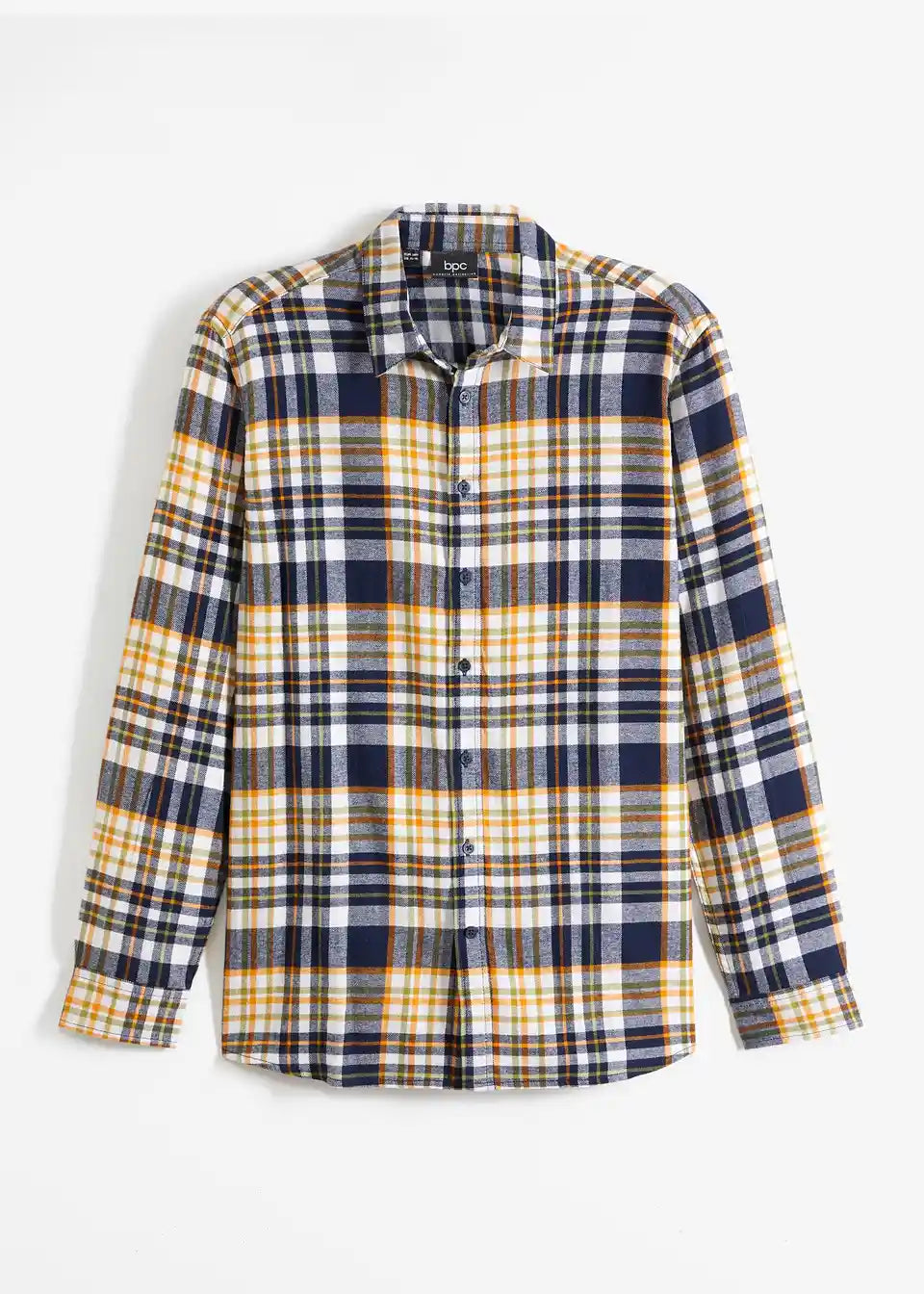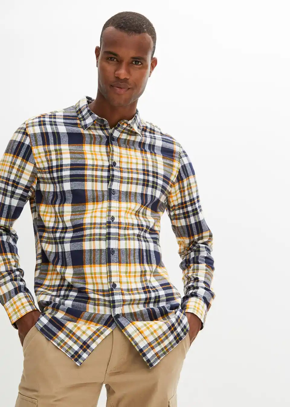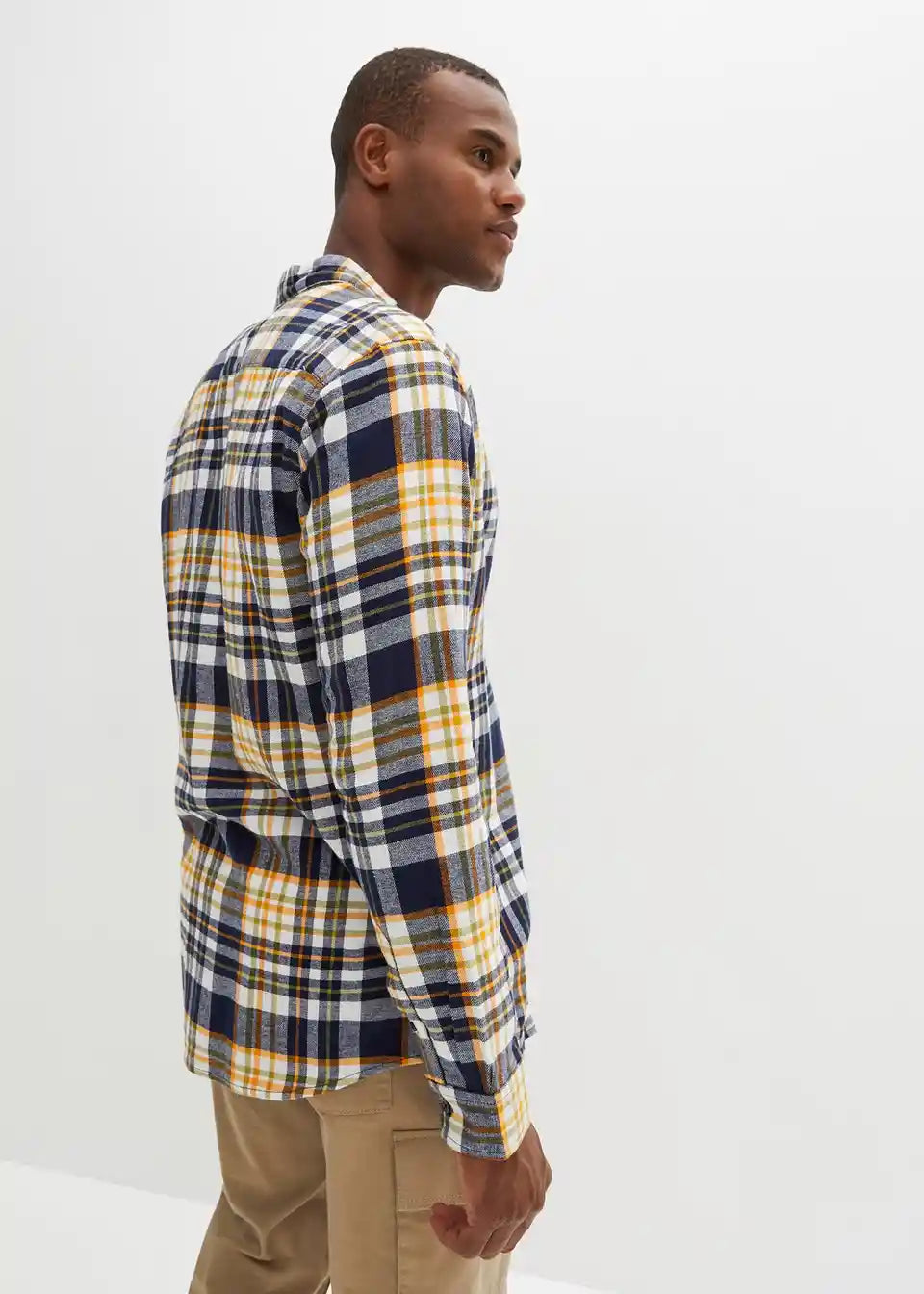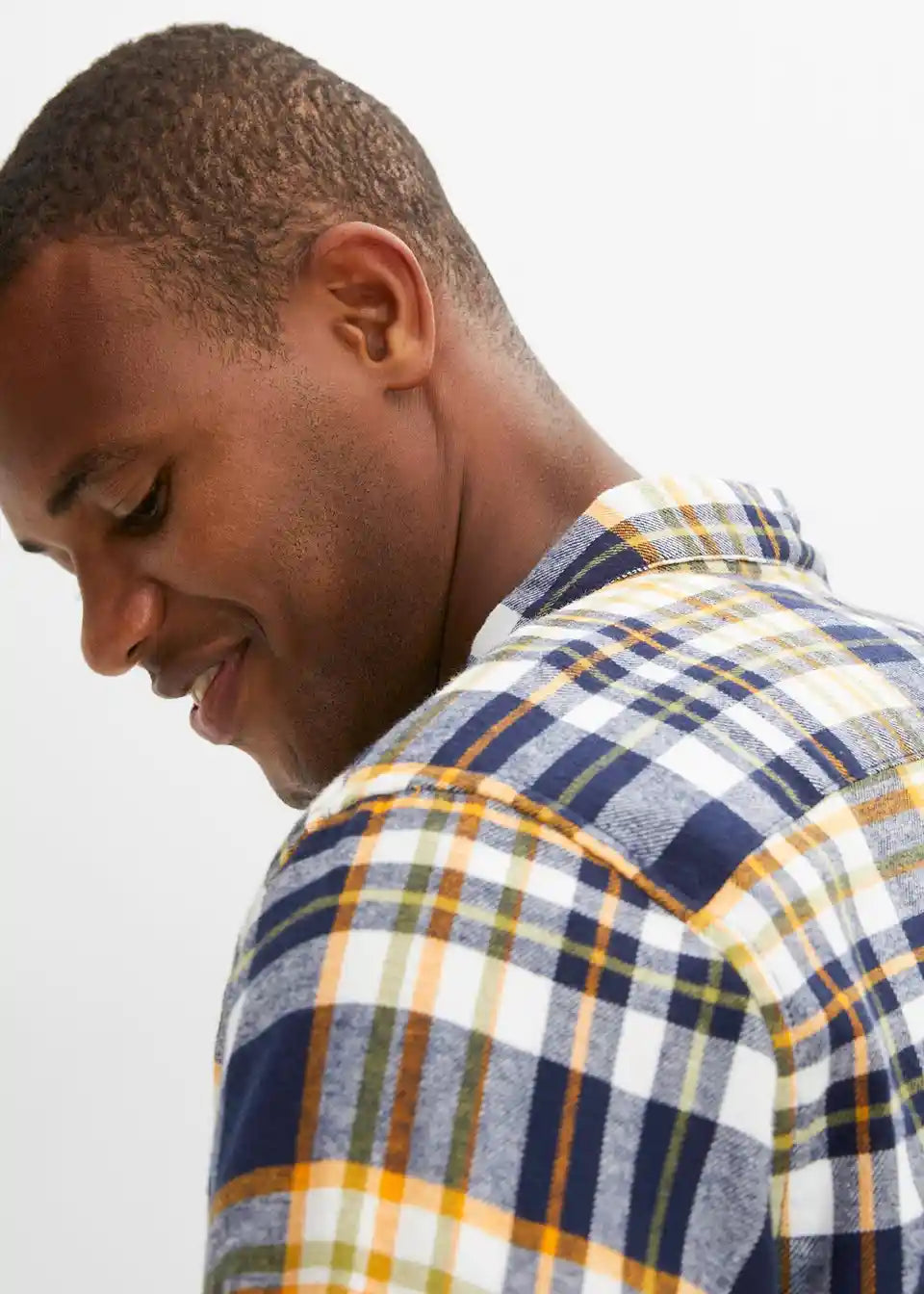 Moderna karirana flanelasta srajca s Kentovim ovratnikom in zaobljenim robom