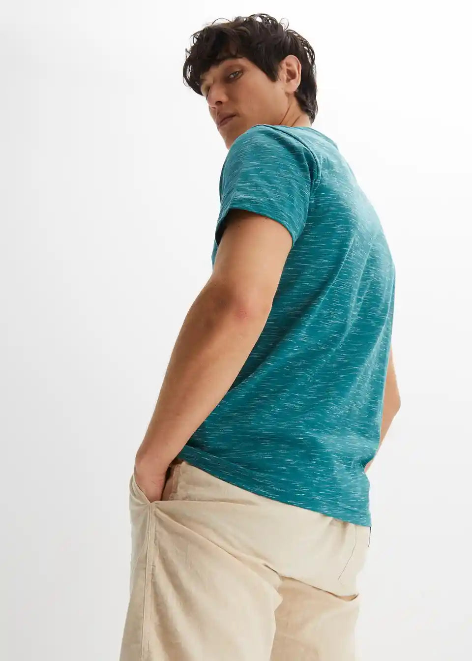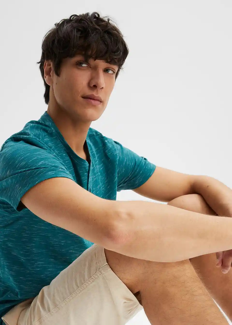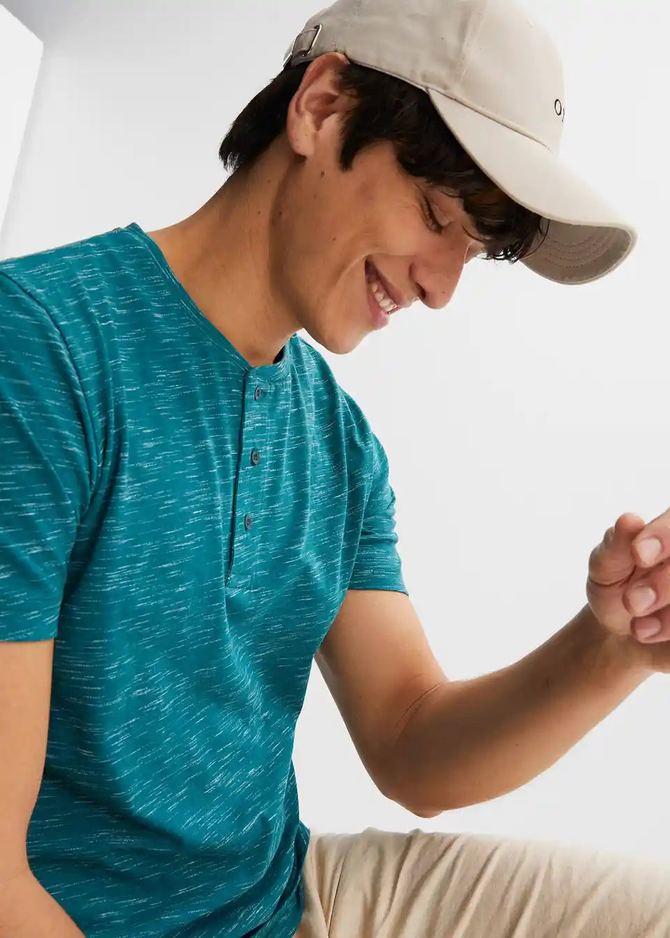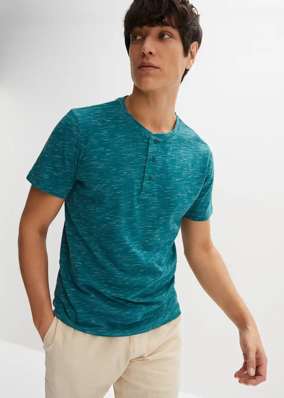 Moška majica z Henleyjevim okroglim izrezom z gumbi, pralno v pralnem stroju.