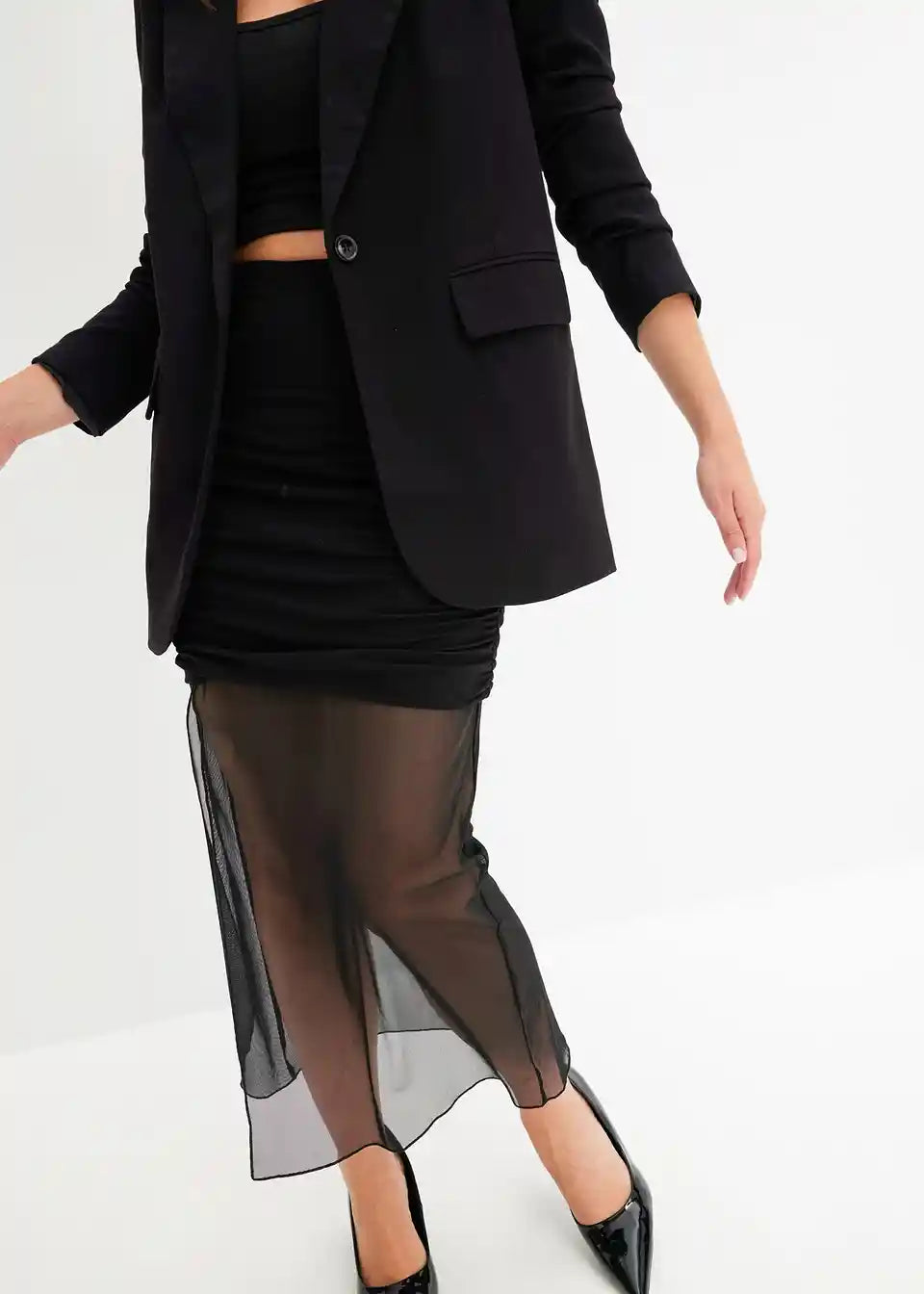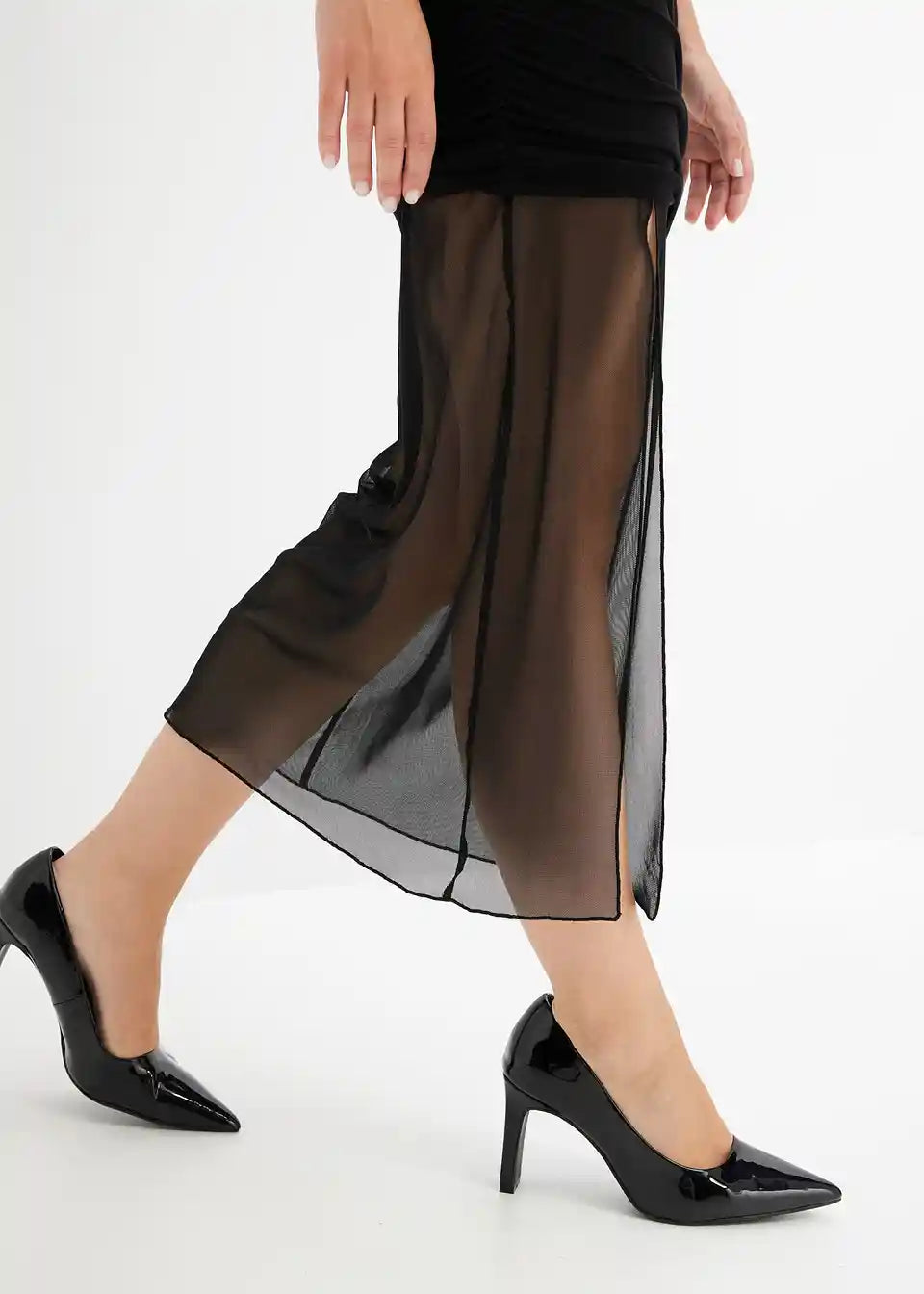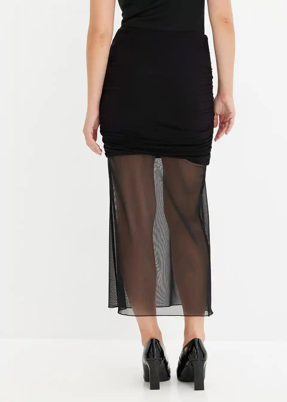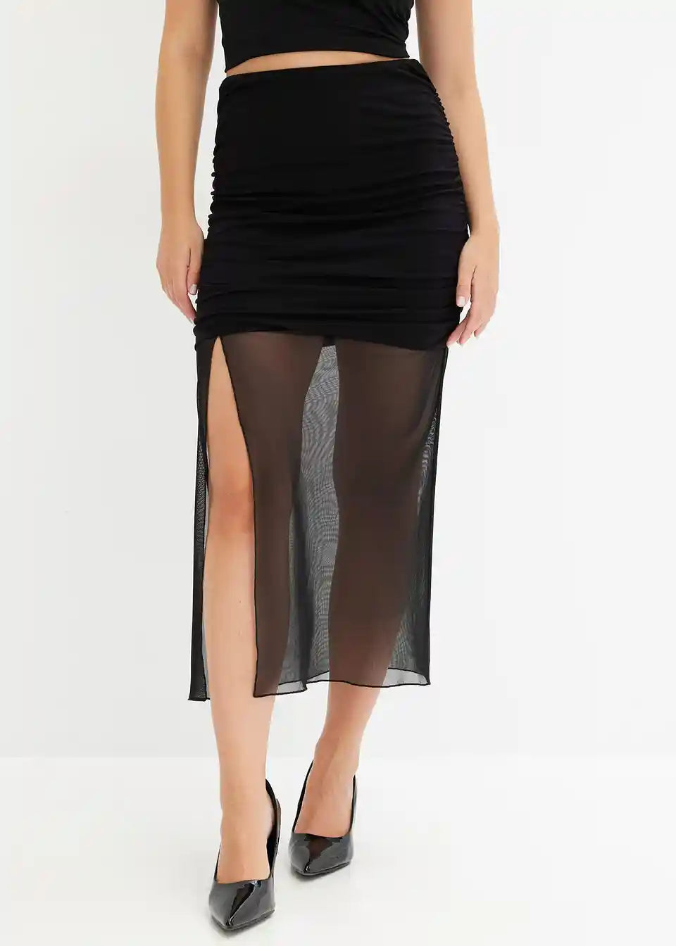 Modno jersey krilo z mrežico in razporkom