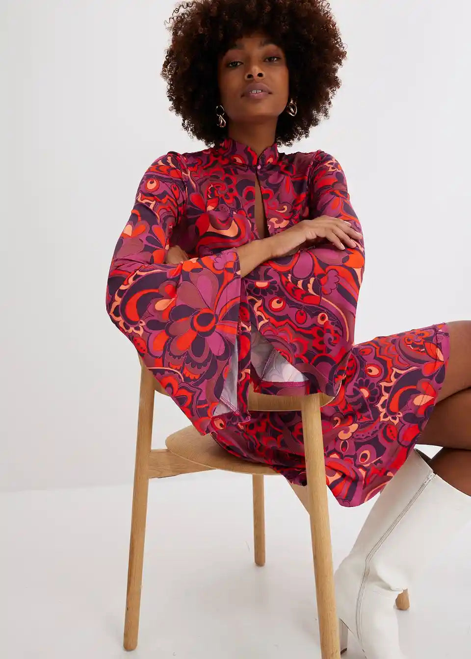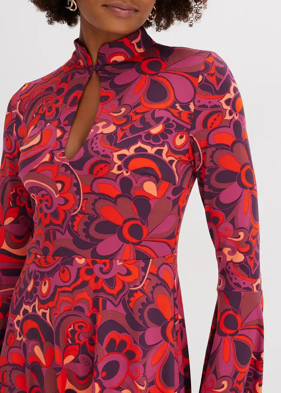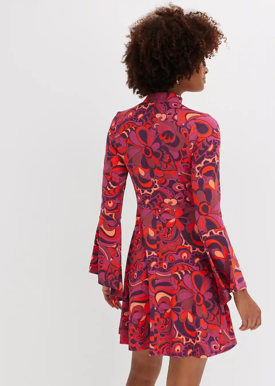 Moderna in ženstvena: Jersey obleka s stoječim ovratnikom in volan rokavi