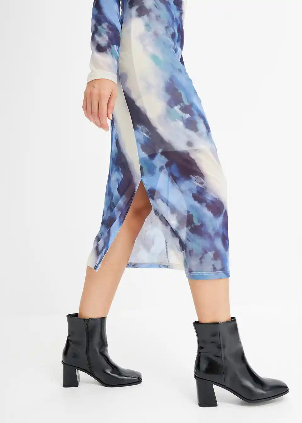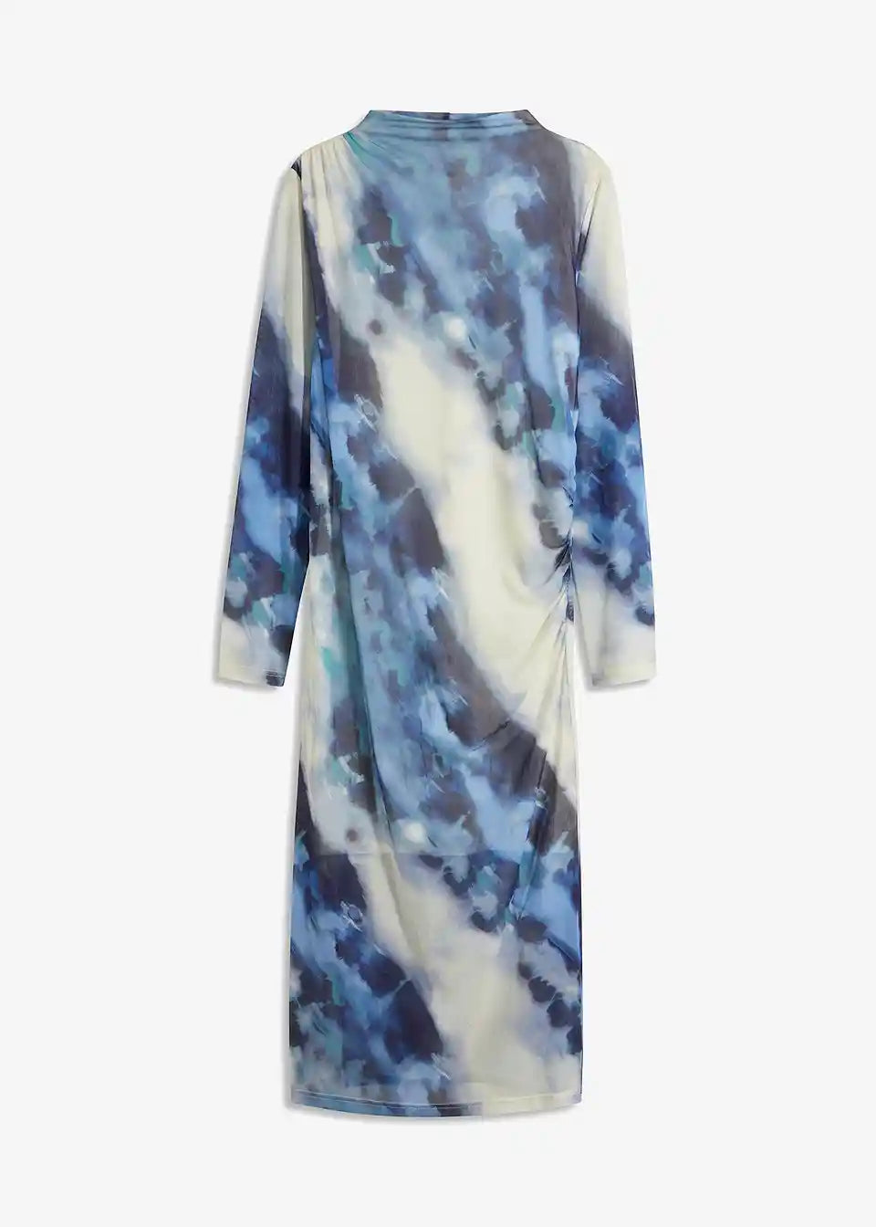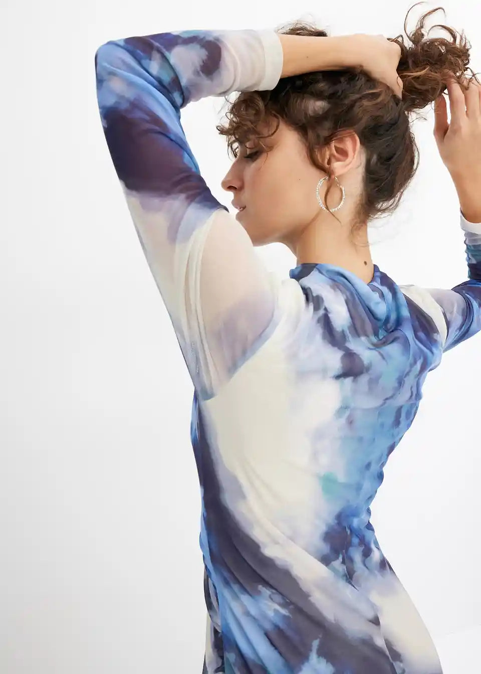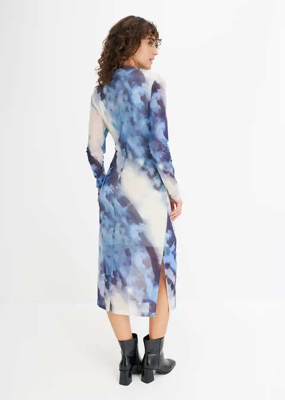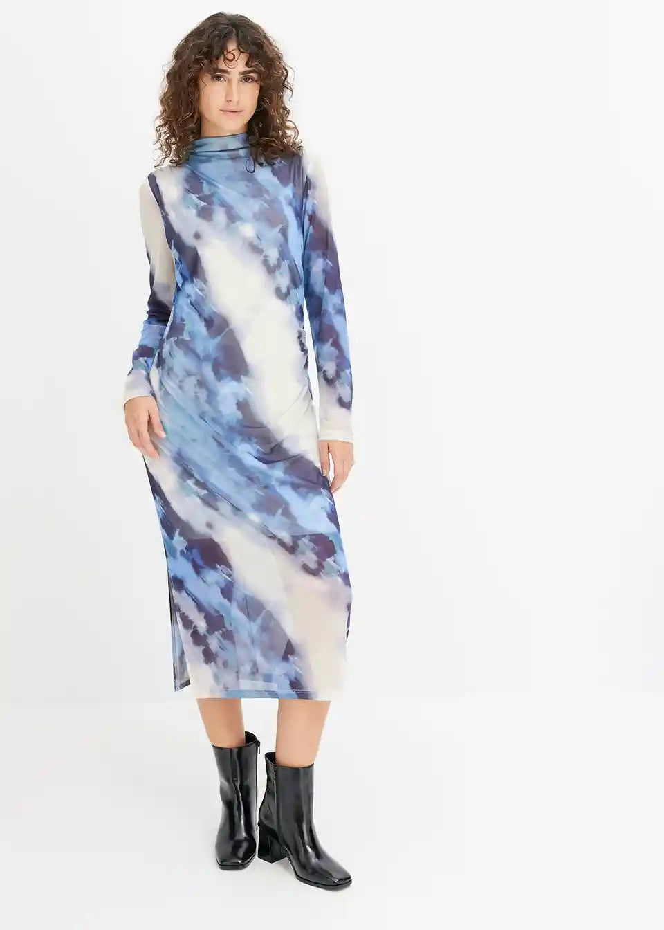 Ovratni do vratu, tiskana maxi obleka iz mrežastega materiala