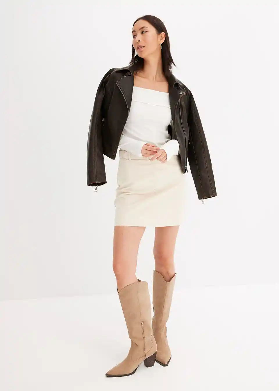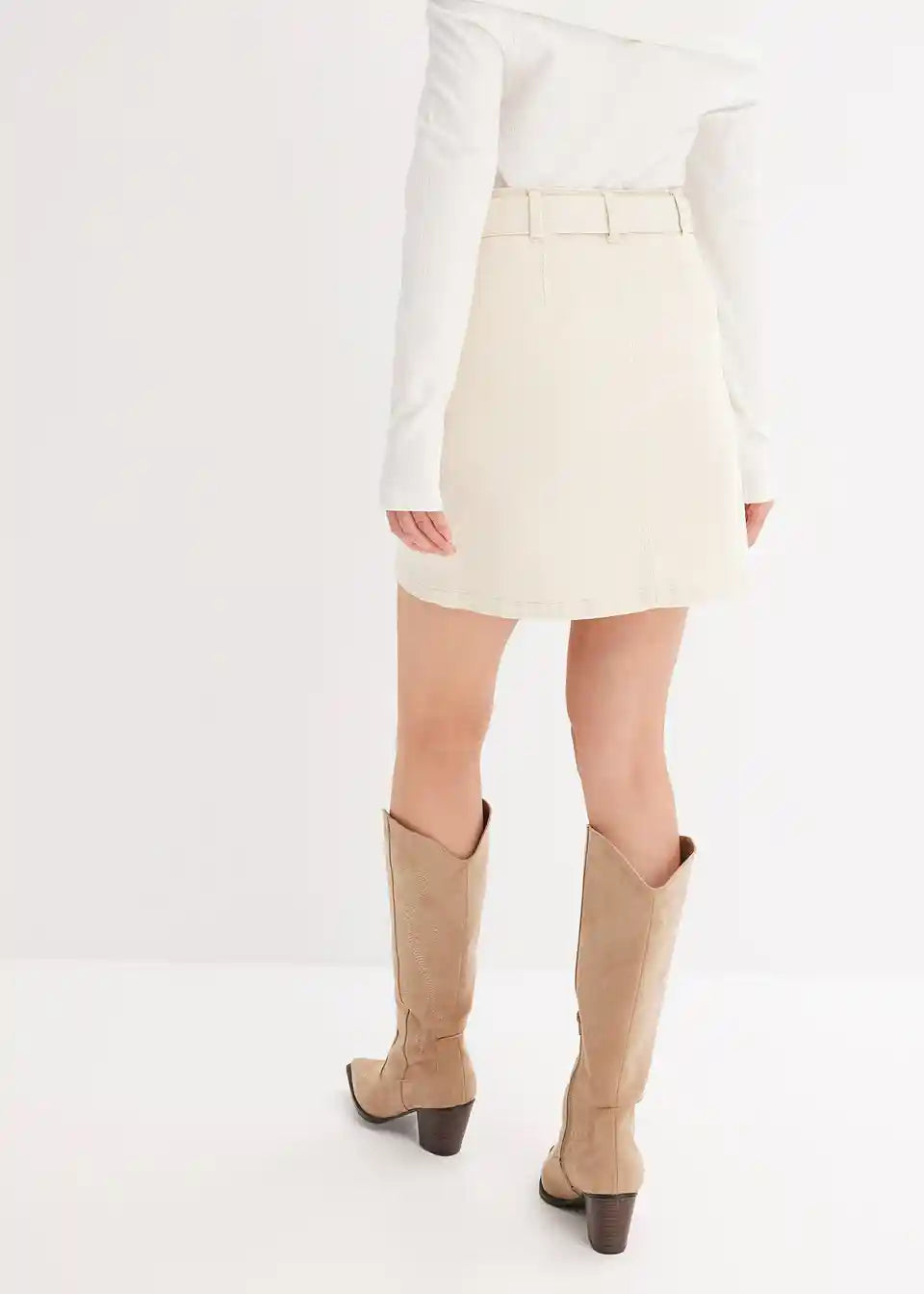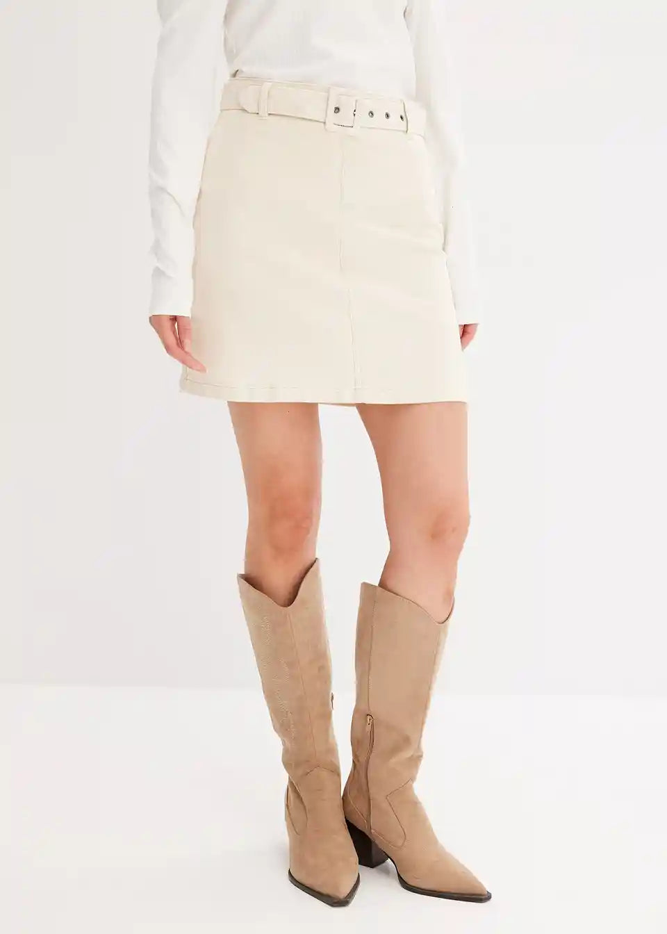 Mini krilo iz rebrastega žameta z pasom (2-delni komplet)
