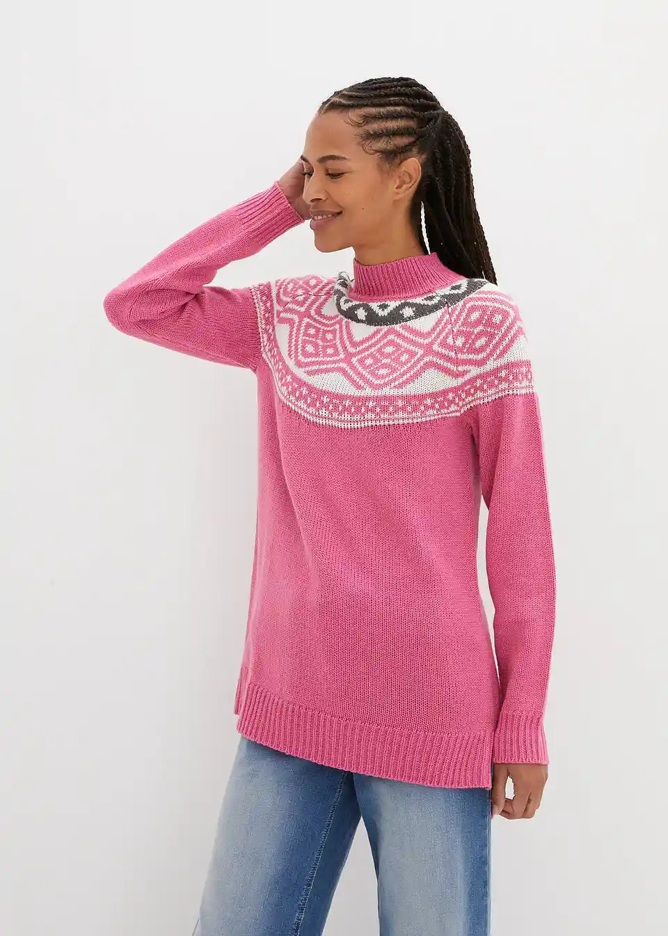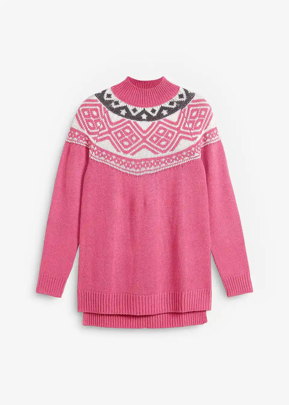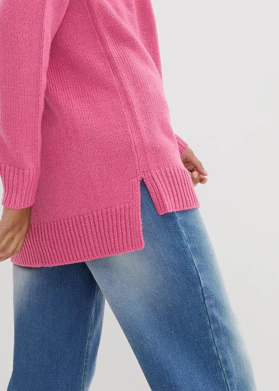 Zimski pulover s stoječim ovratnikom in razporki na strani