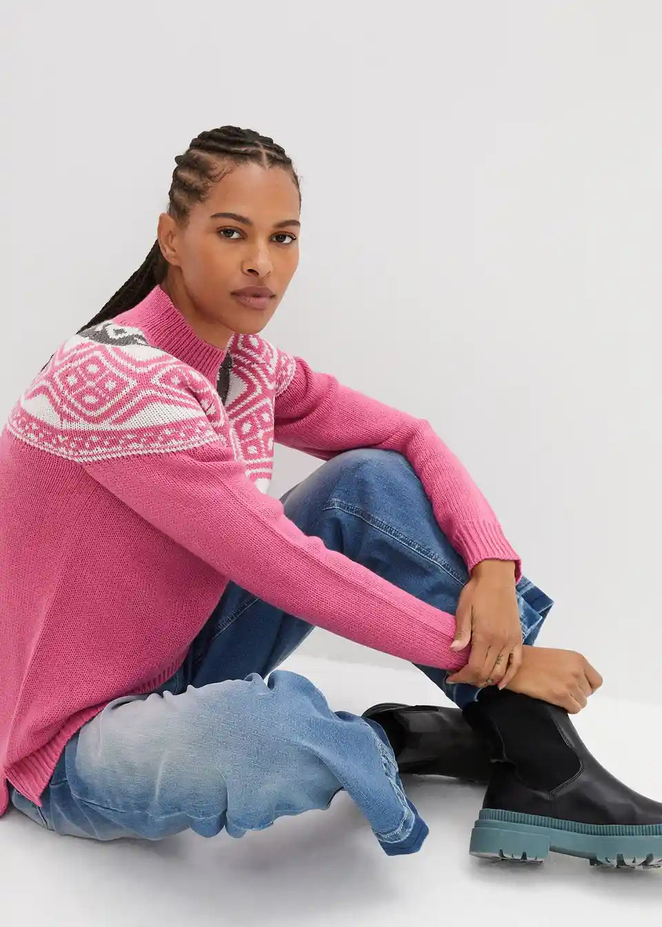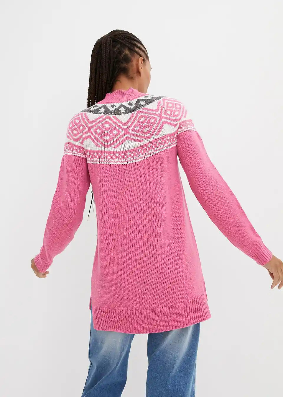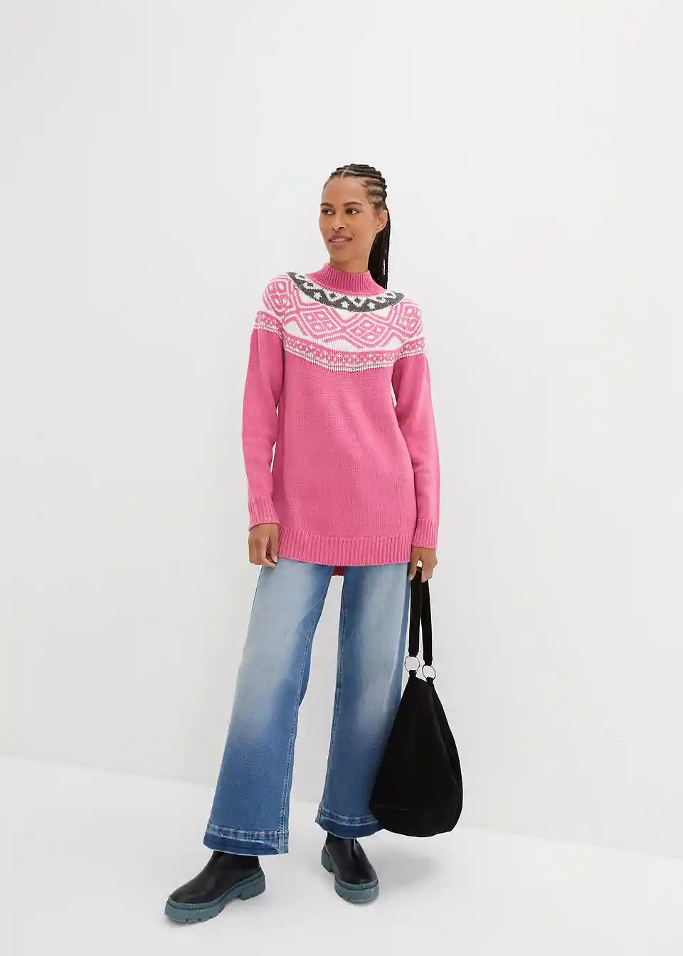 Zimski pulover s stoječim ovratnikom in razporki na strani