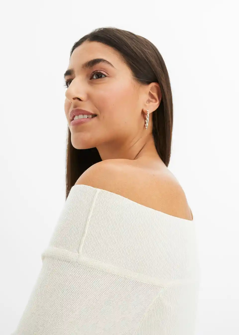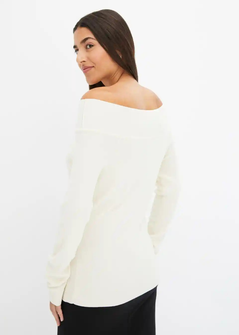 Rebrast pulover z odkritimi ramami
