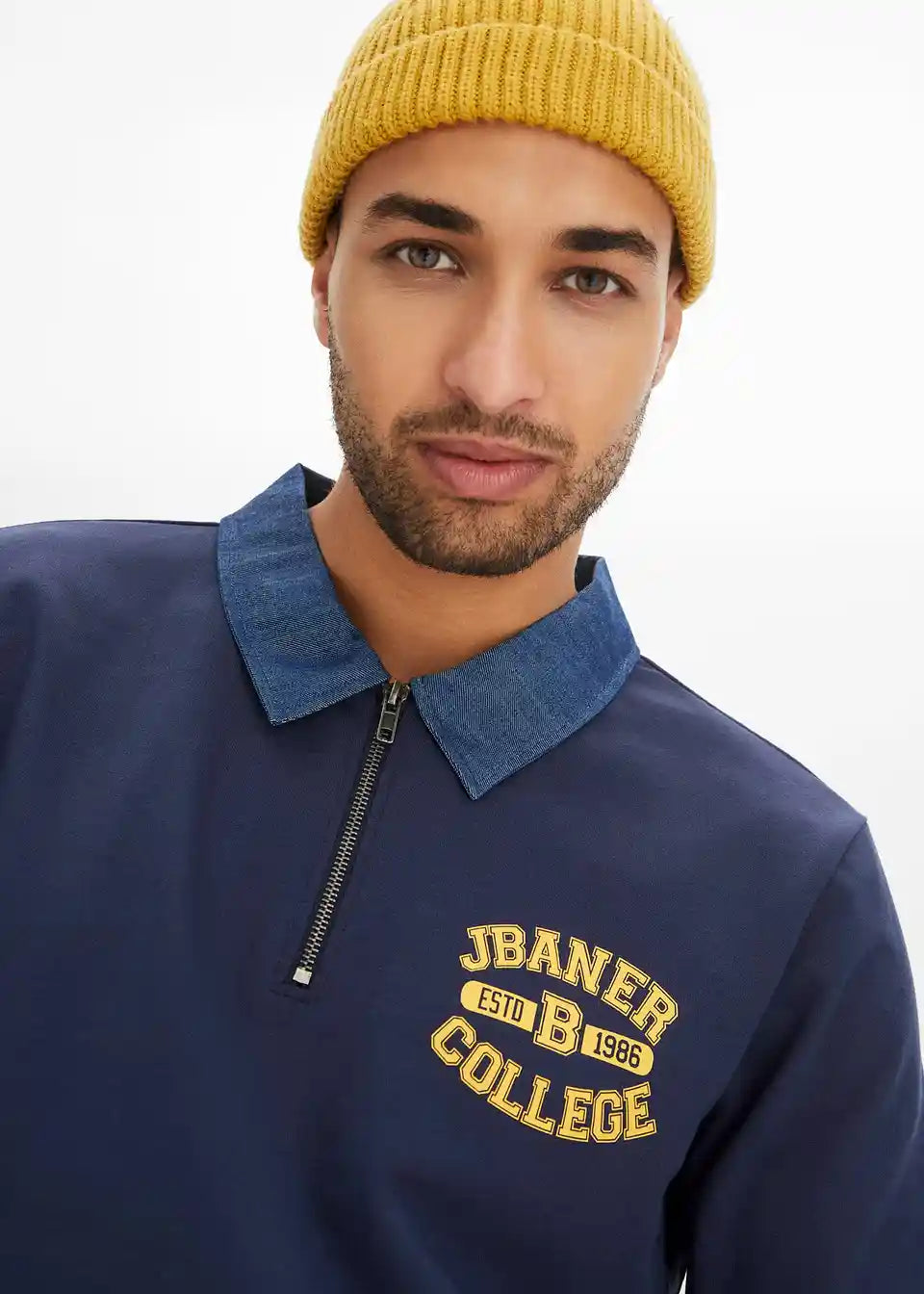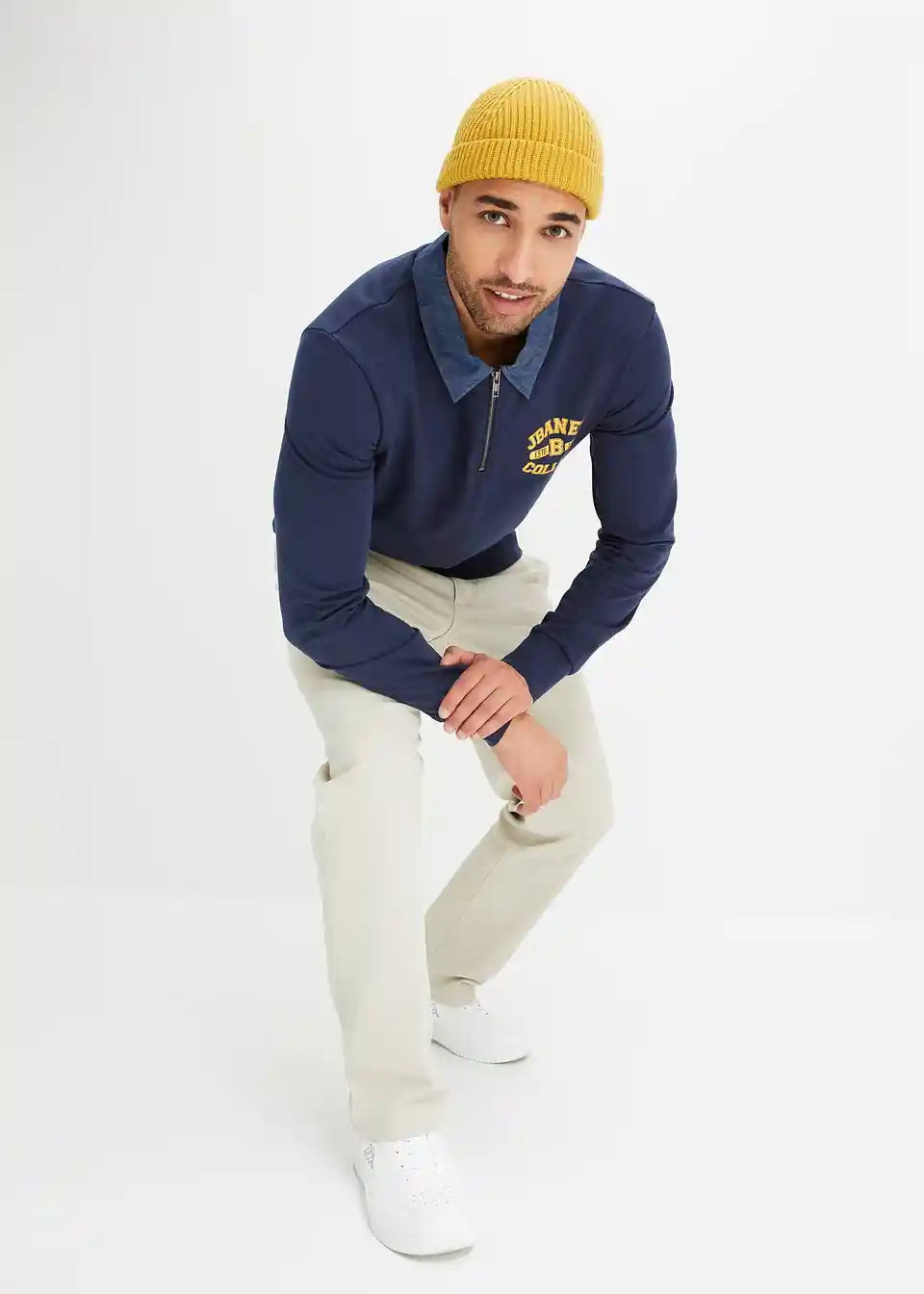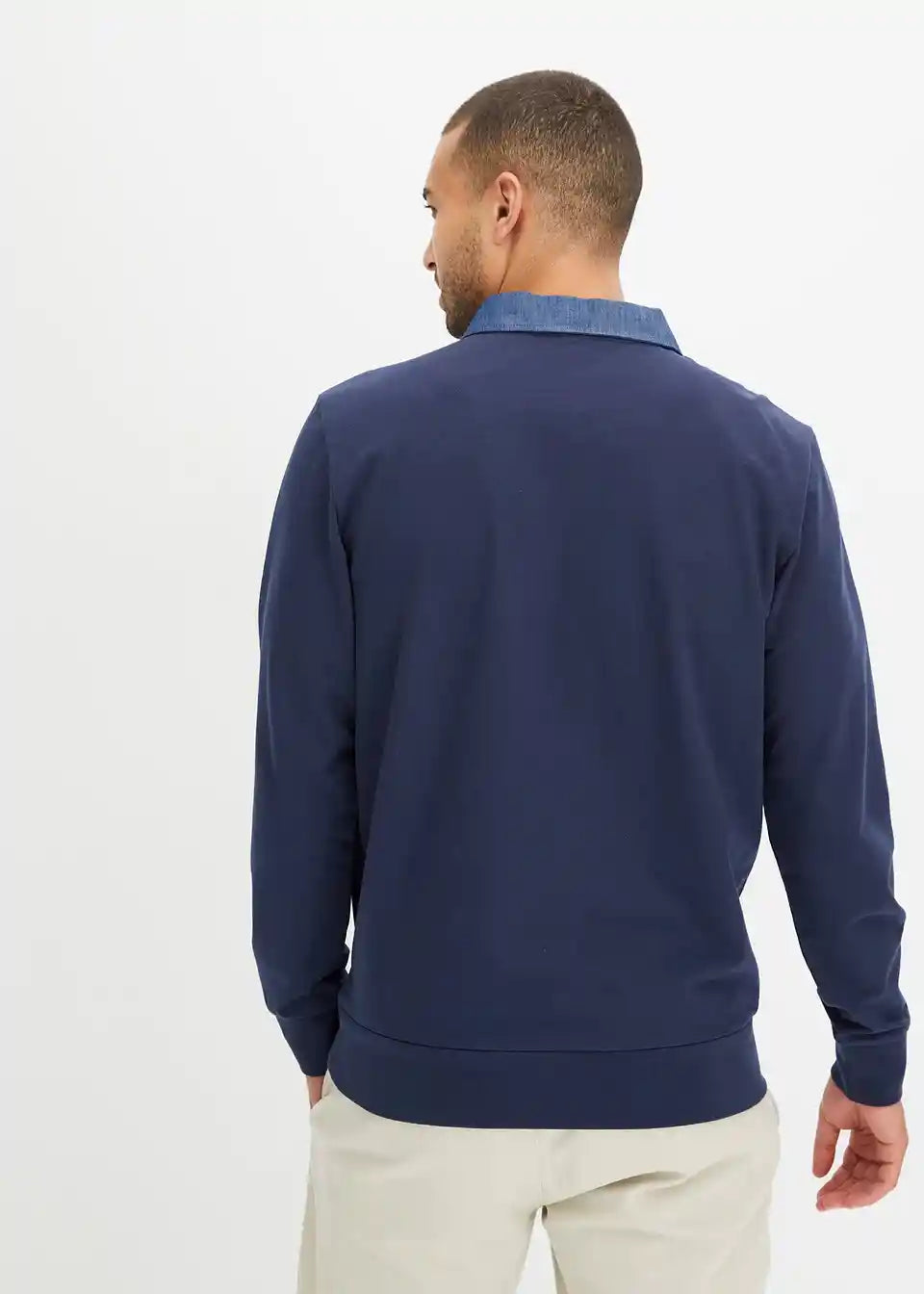 Moden pulover z denim ovratnikom, notranjost mehka in brušena