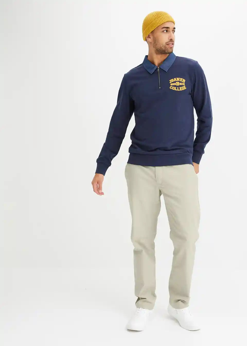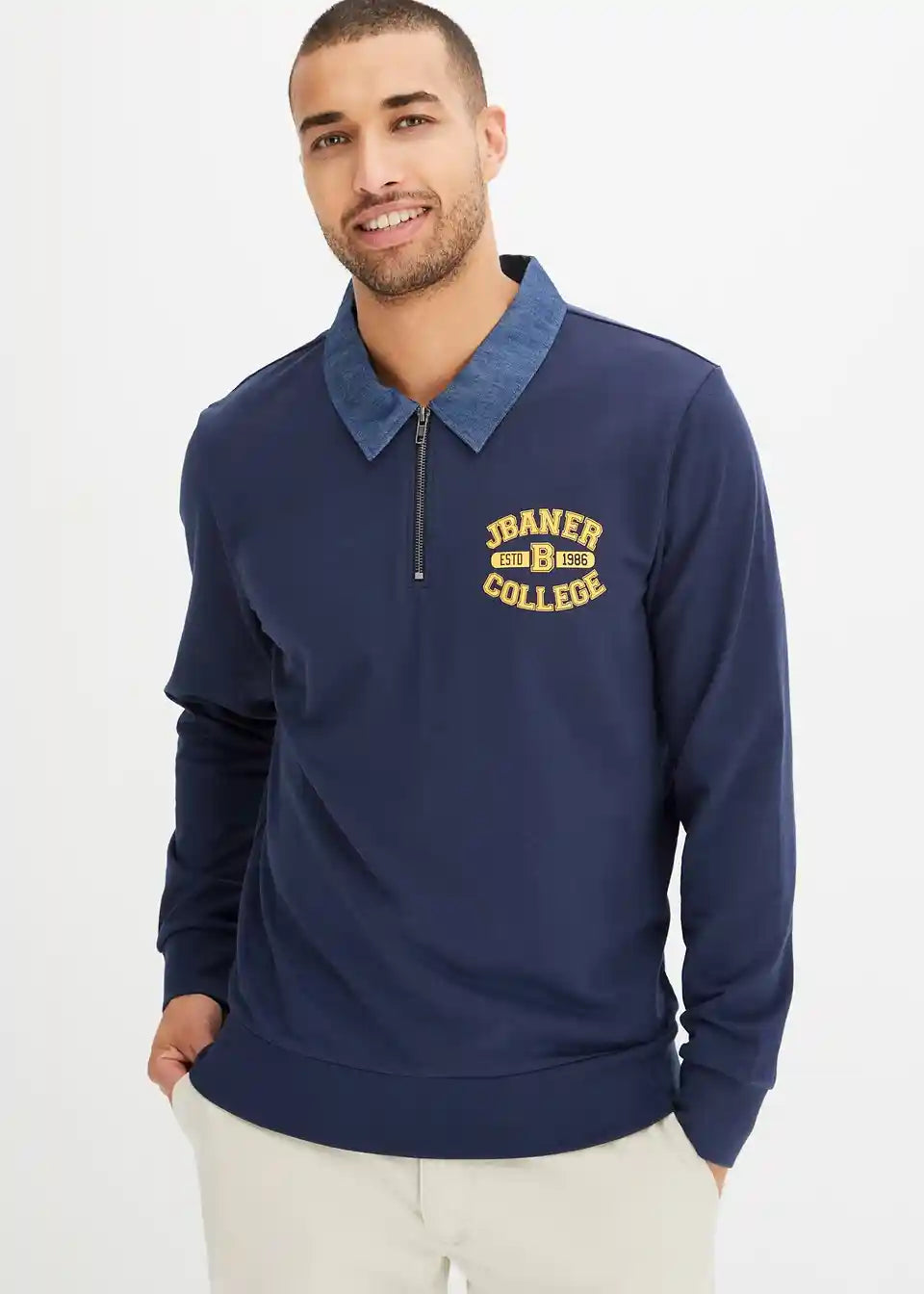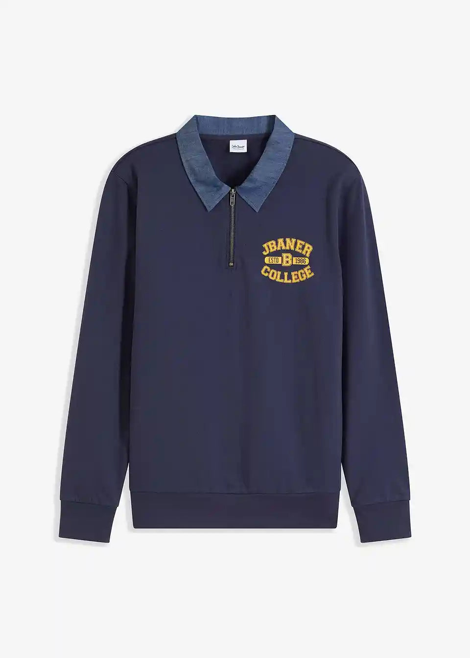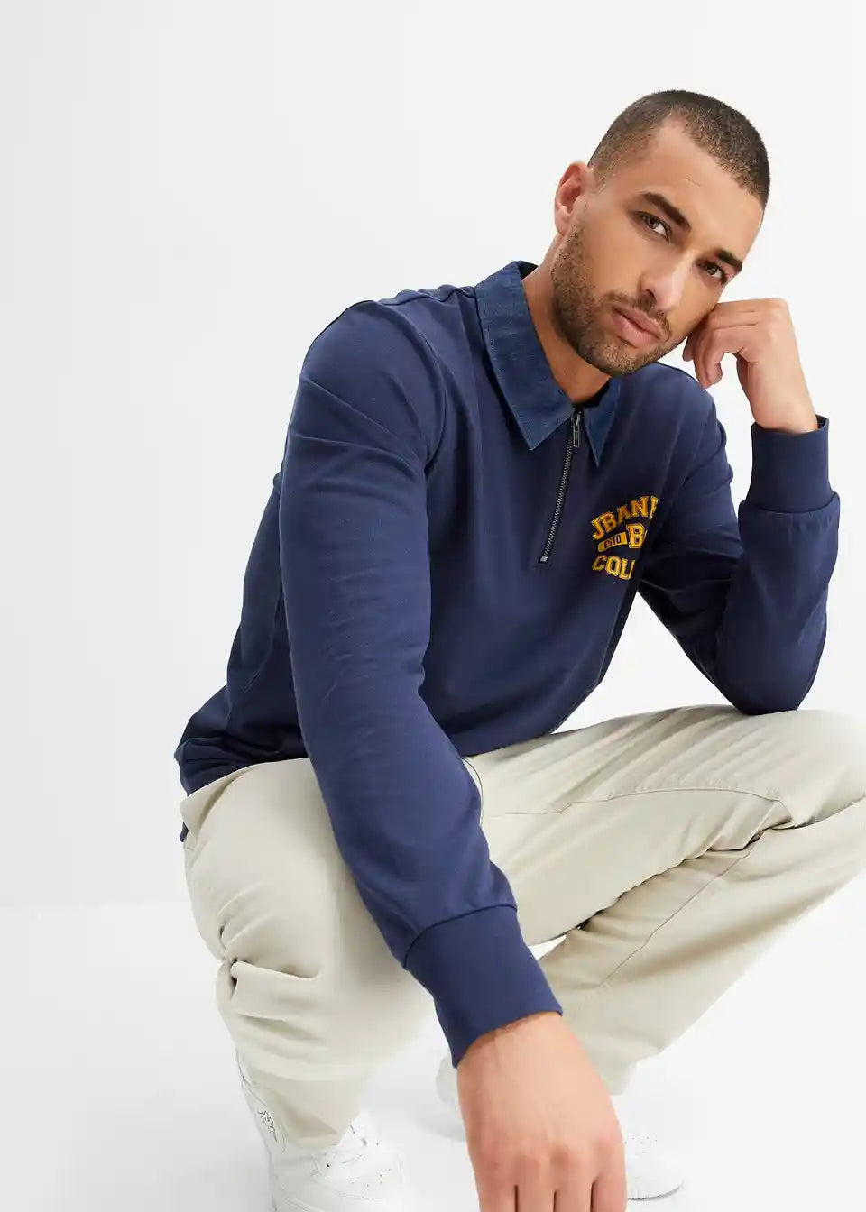 Moden pulover z denim ovratnikom, notranjost mehka in brušena