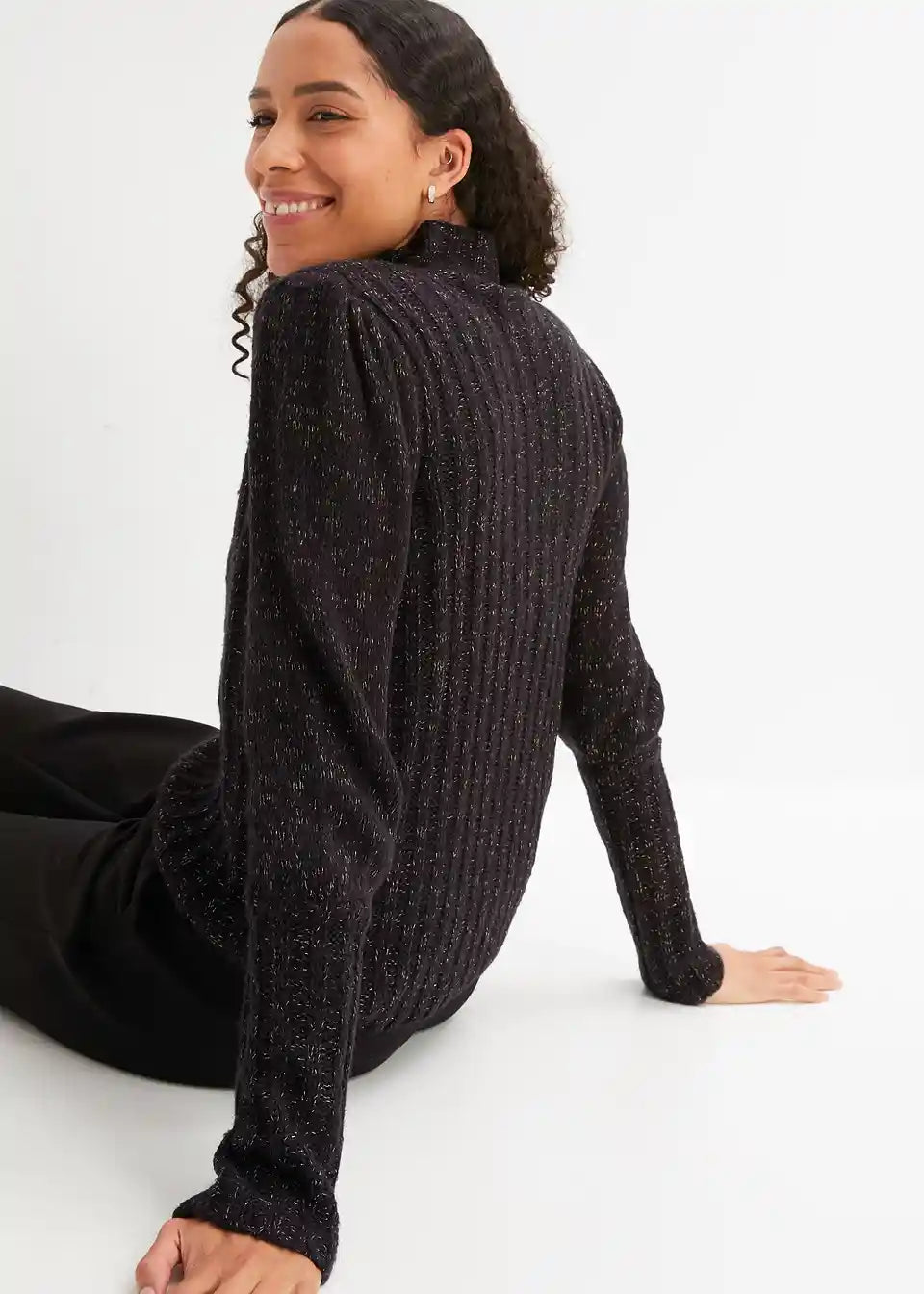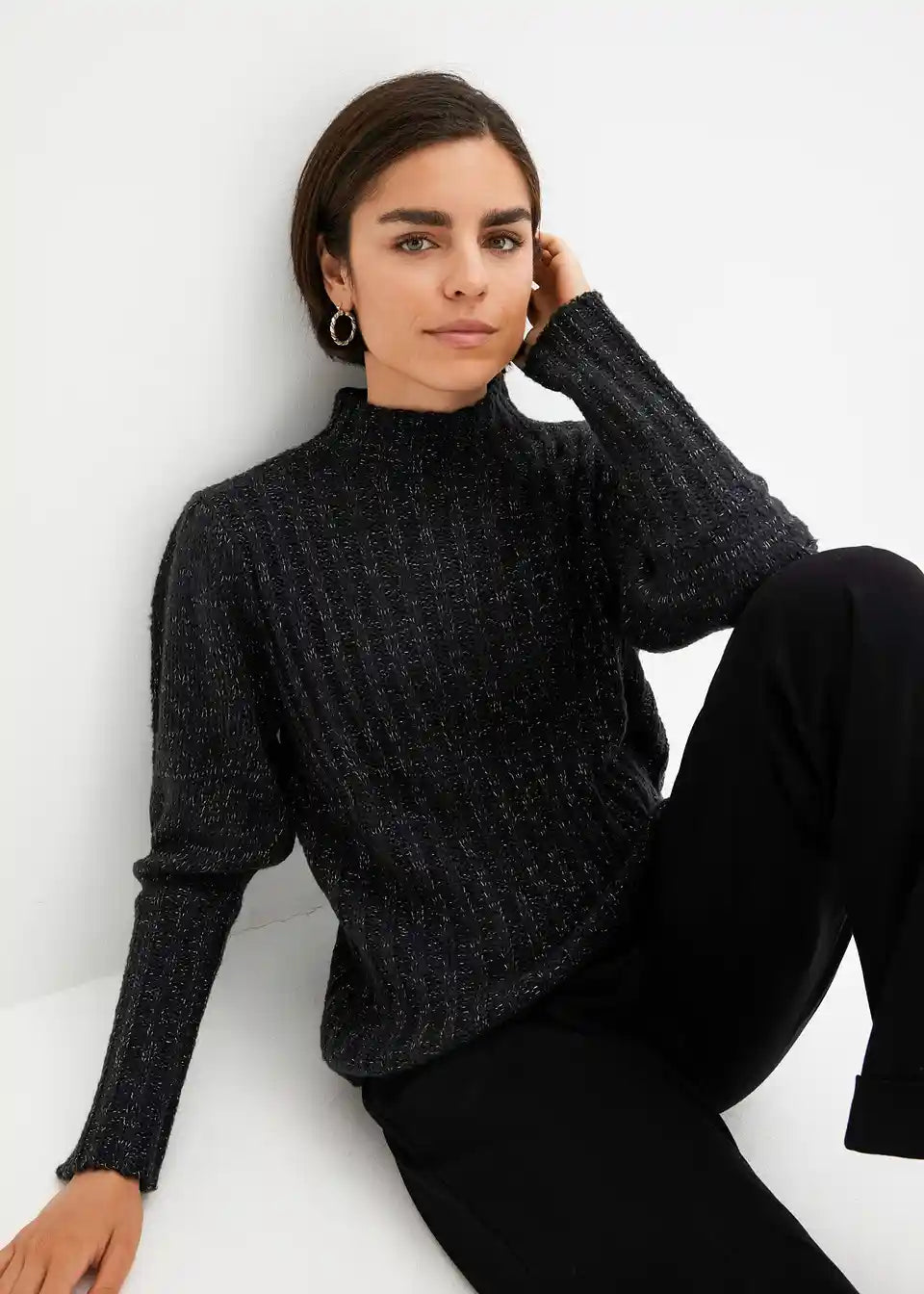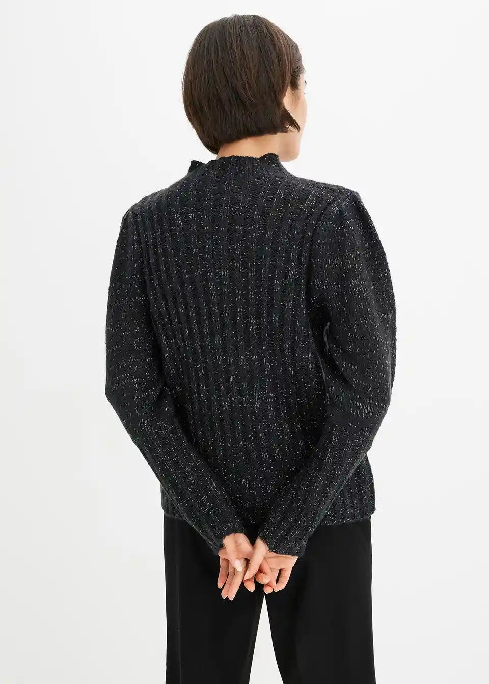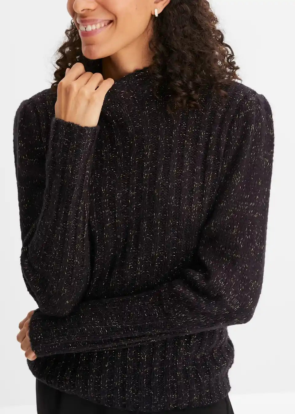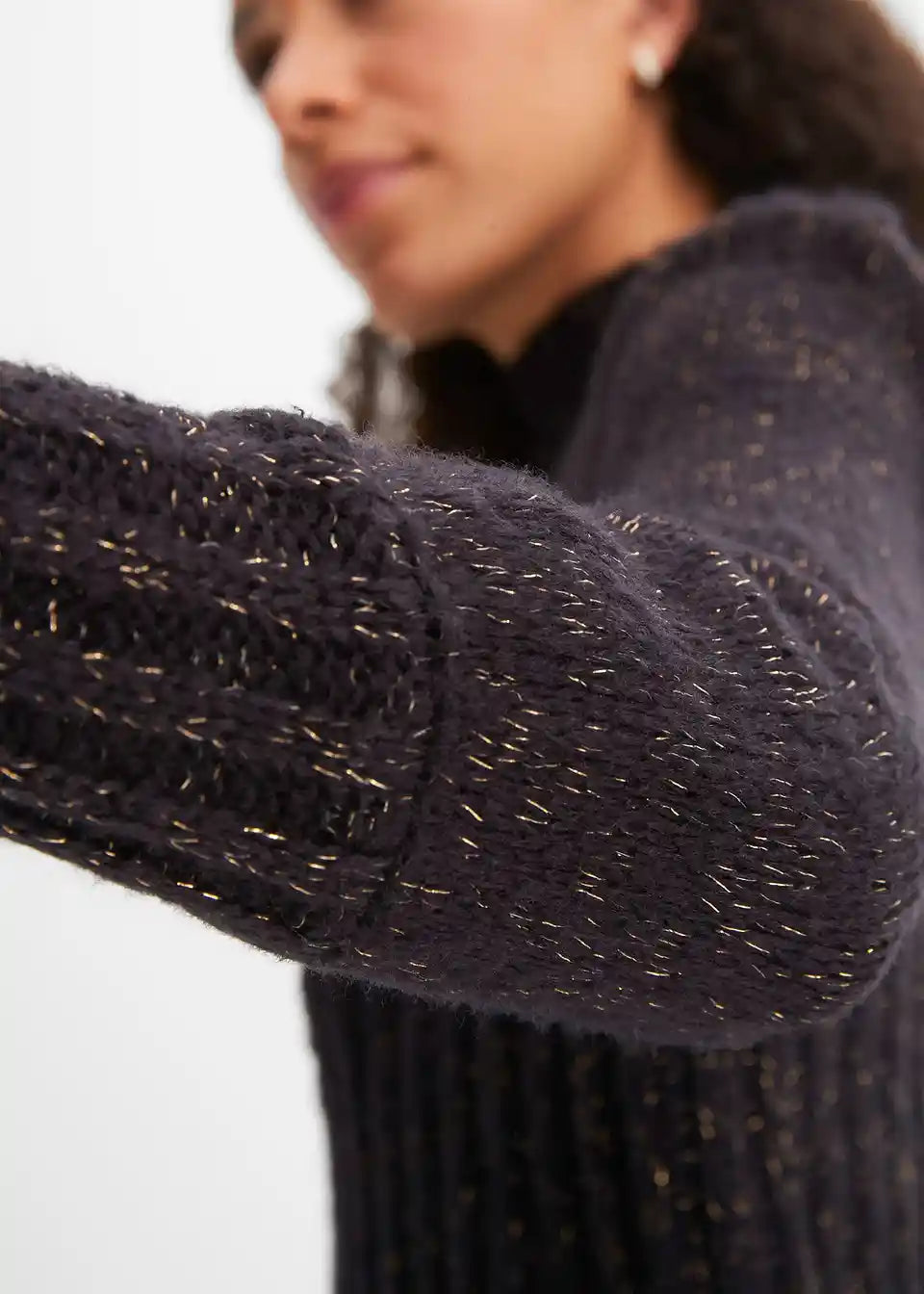 Prijeten pulover z bleščečim učinkom in napihnjenimi rokavi