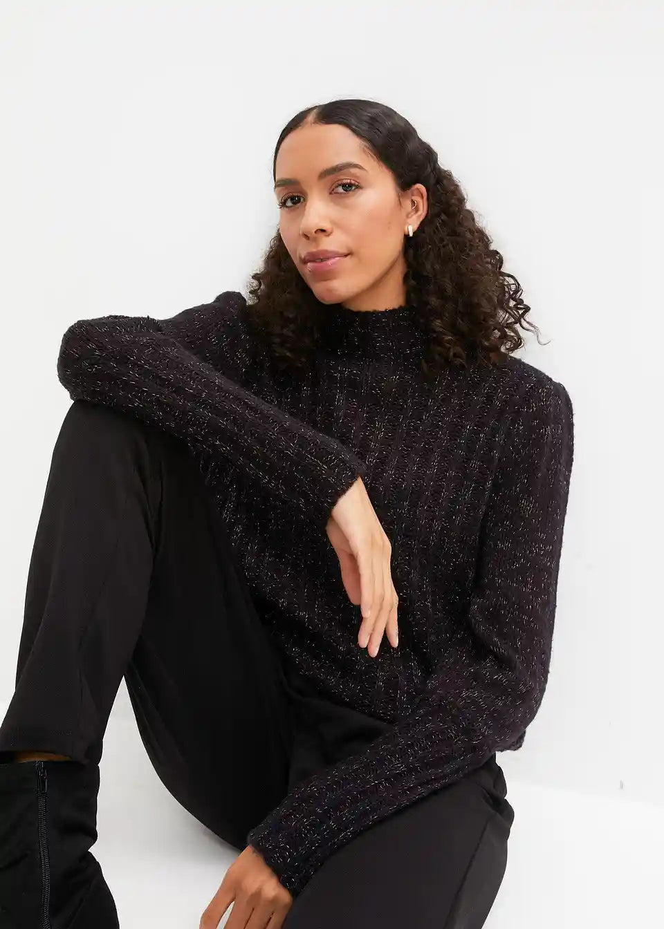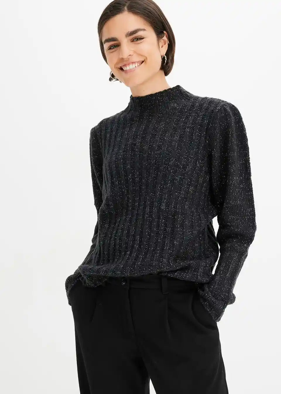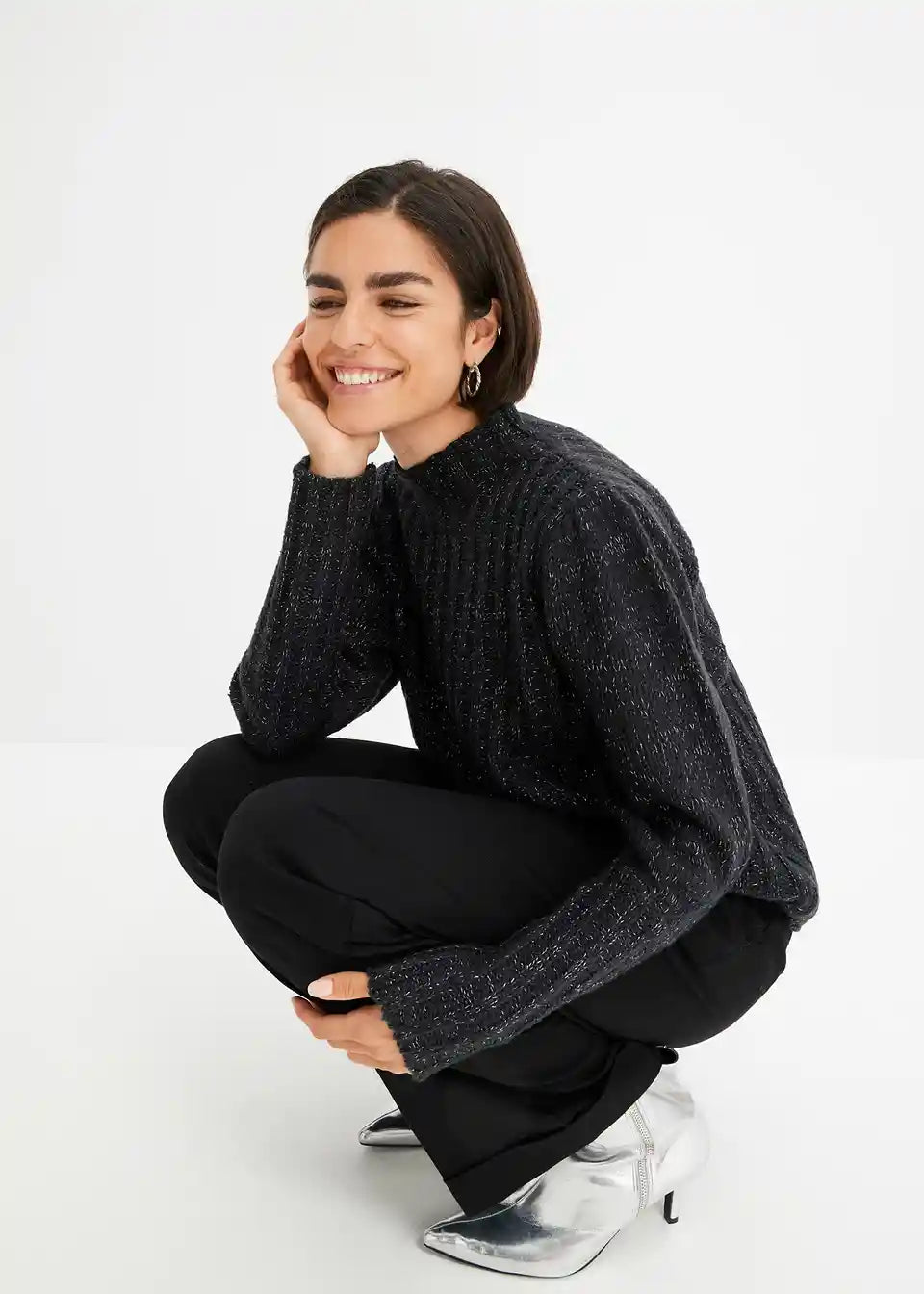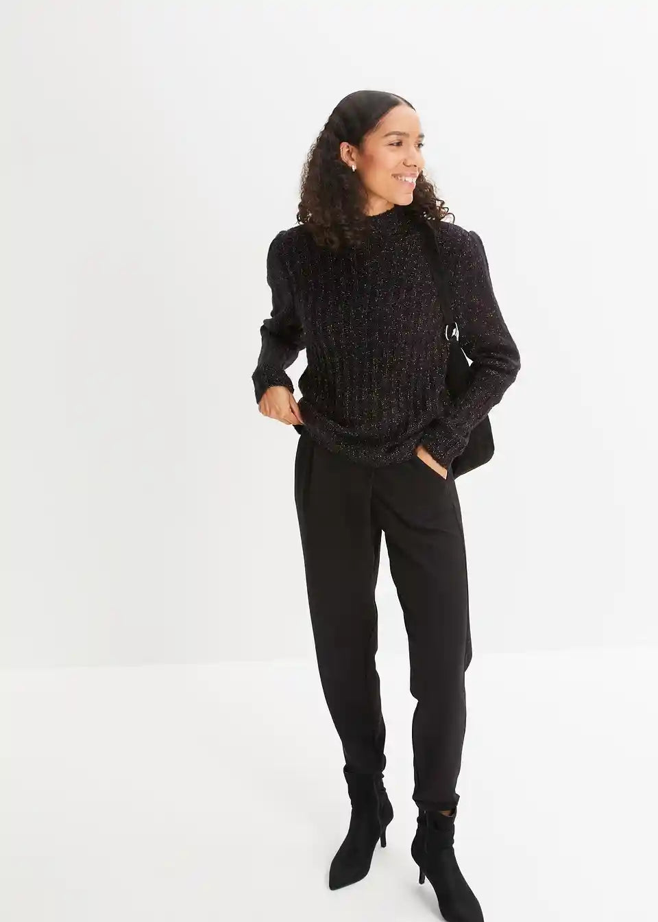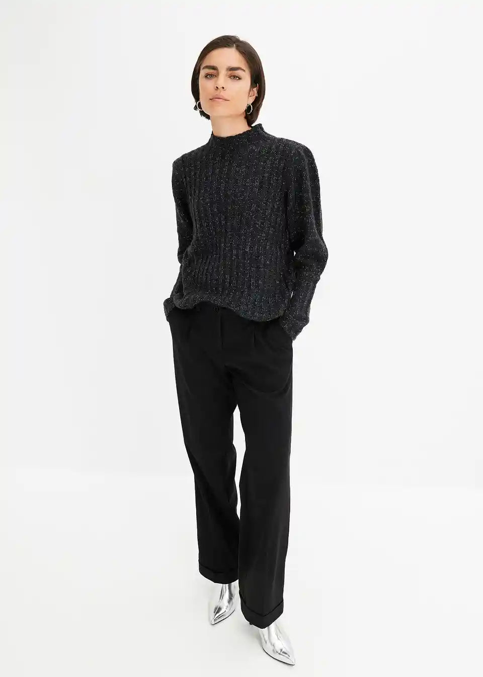 Prijeten pulover z bleščečim učinkom in napihnjenimi rokavi