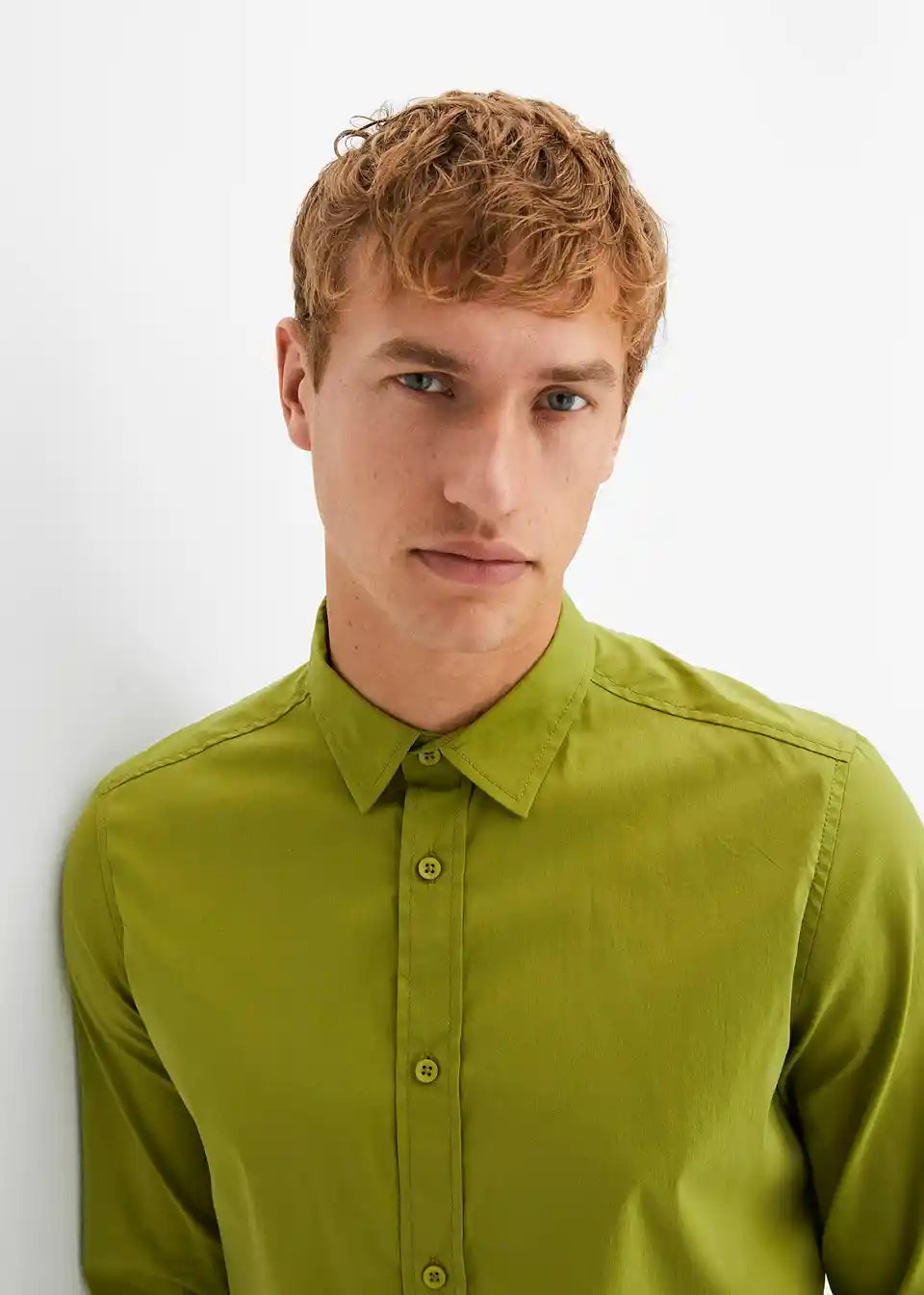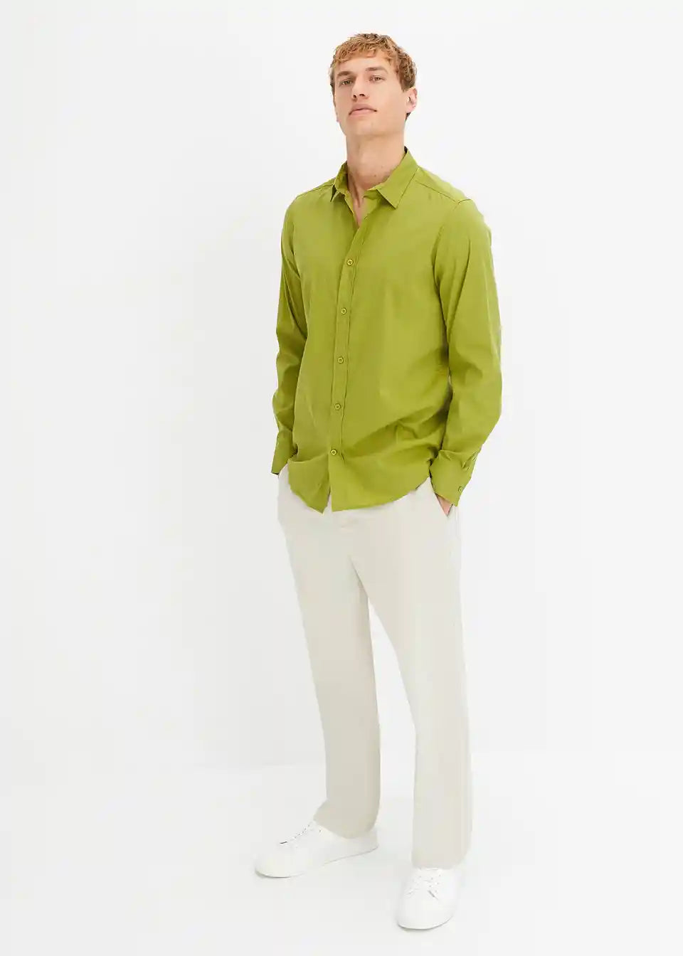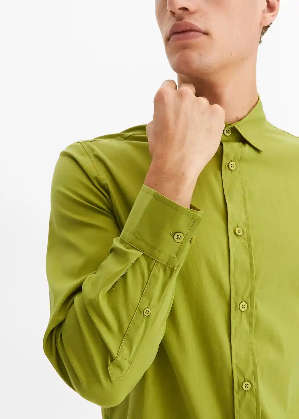 Moška srajca z dolgimi rokavi, raztegljiva tkanina in rahlo zaobljenim robom