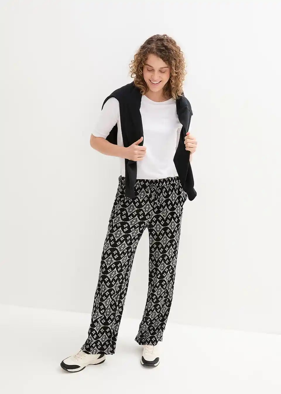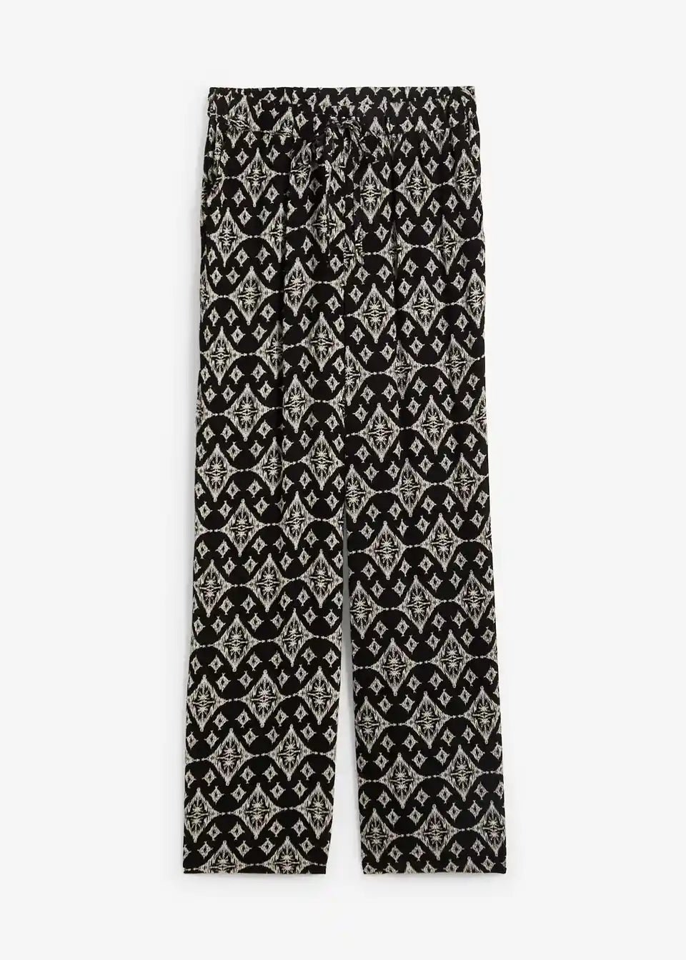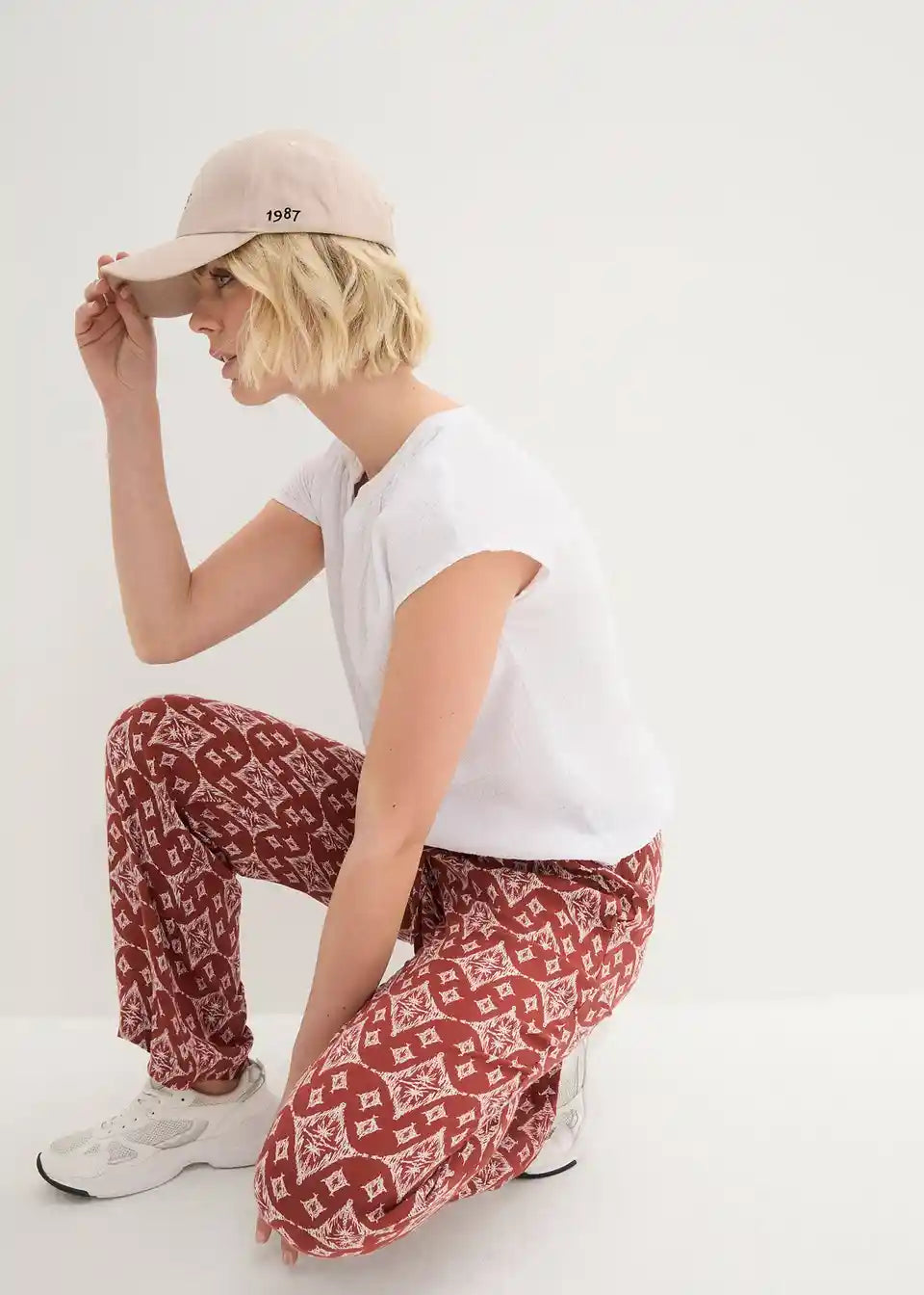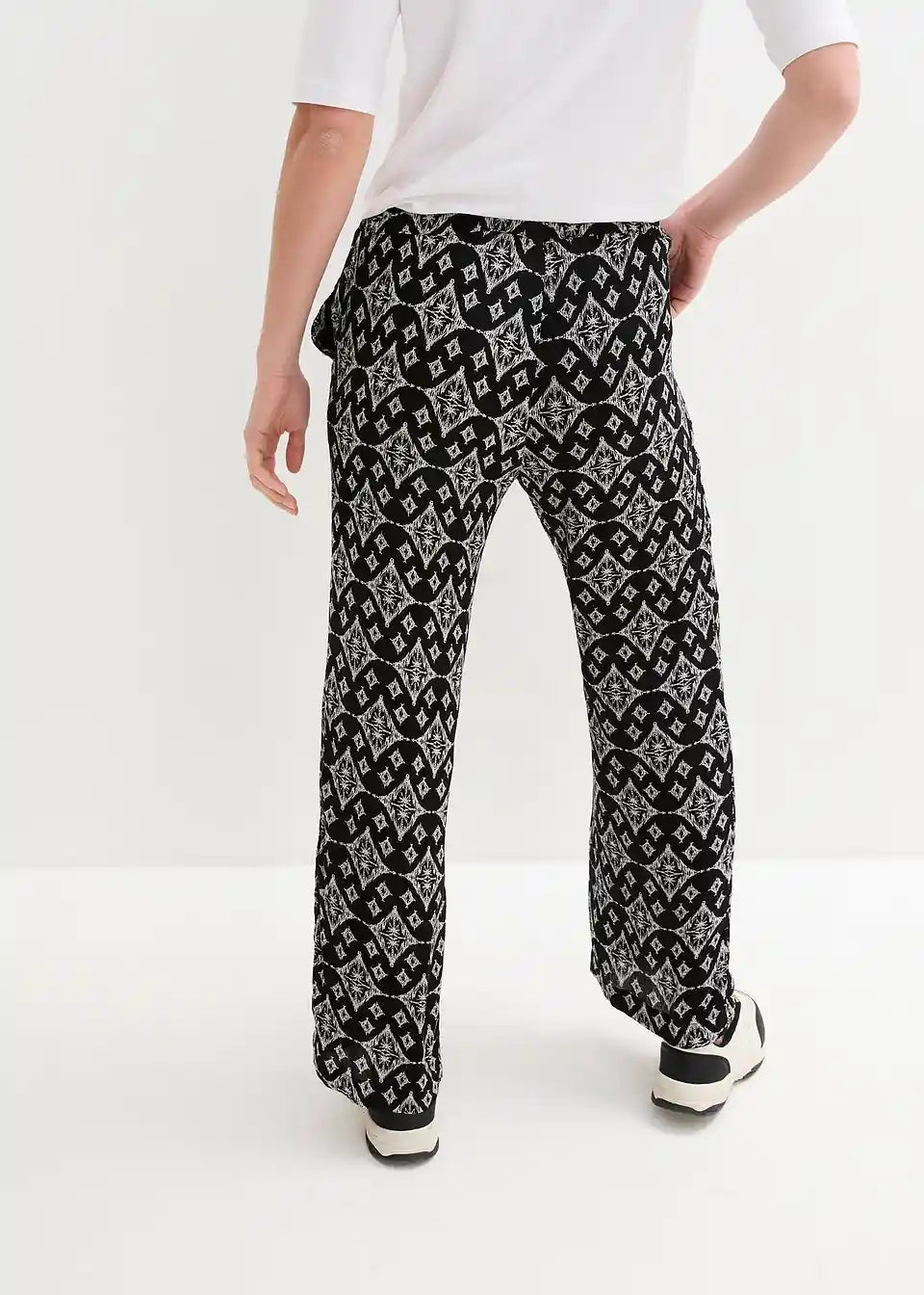 Ležerne hlače iz nagubanega materiala laskajo silhueti s svojo geometrično zasnovo