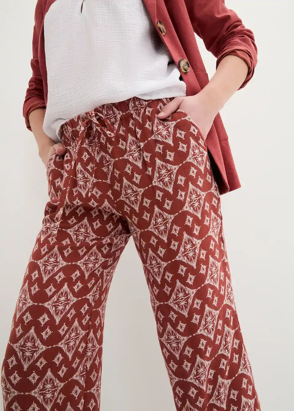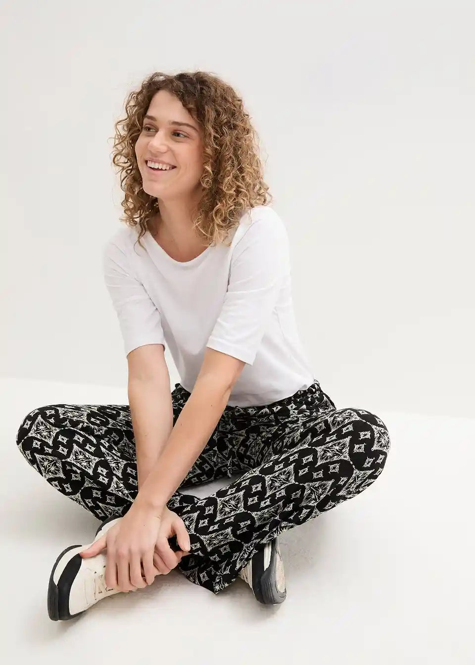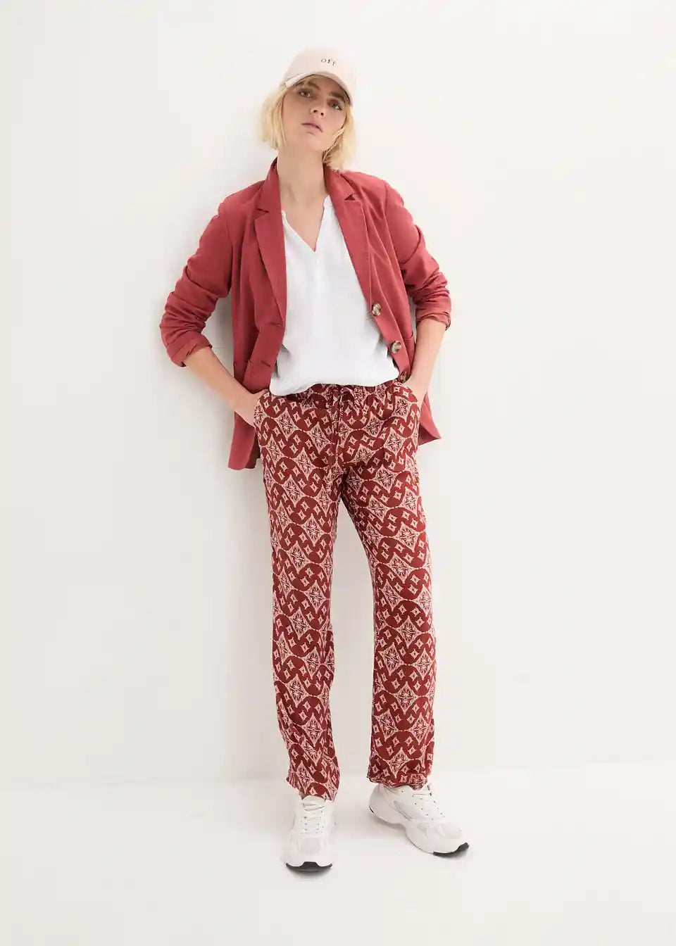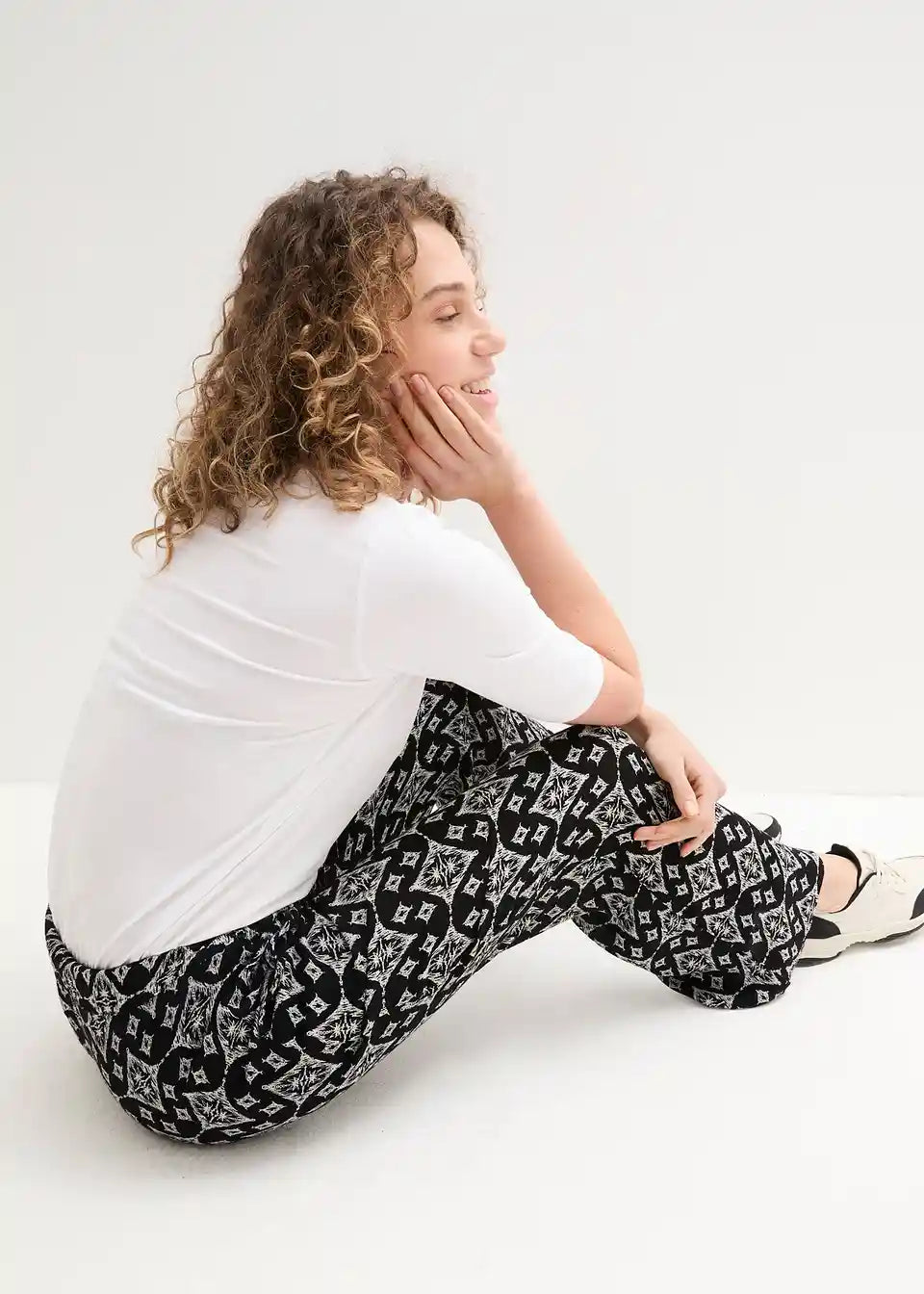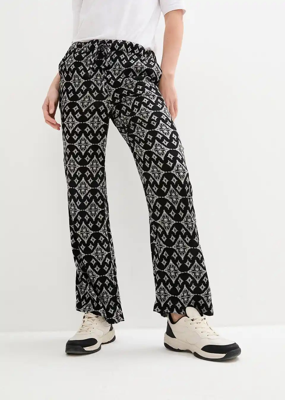 Ležerne hlače iz nagubanega materiala laskajo silhueti s svojo geometrično zasnovo