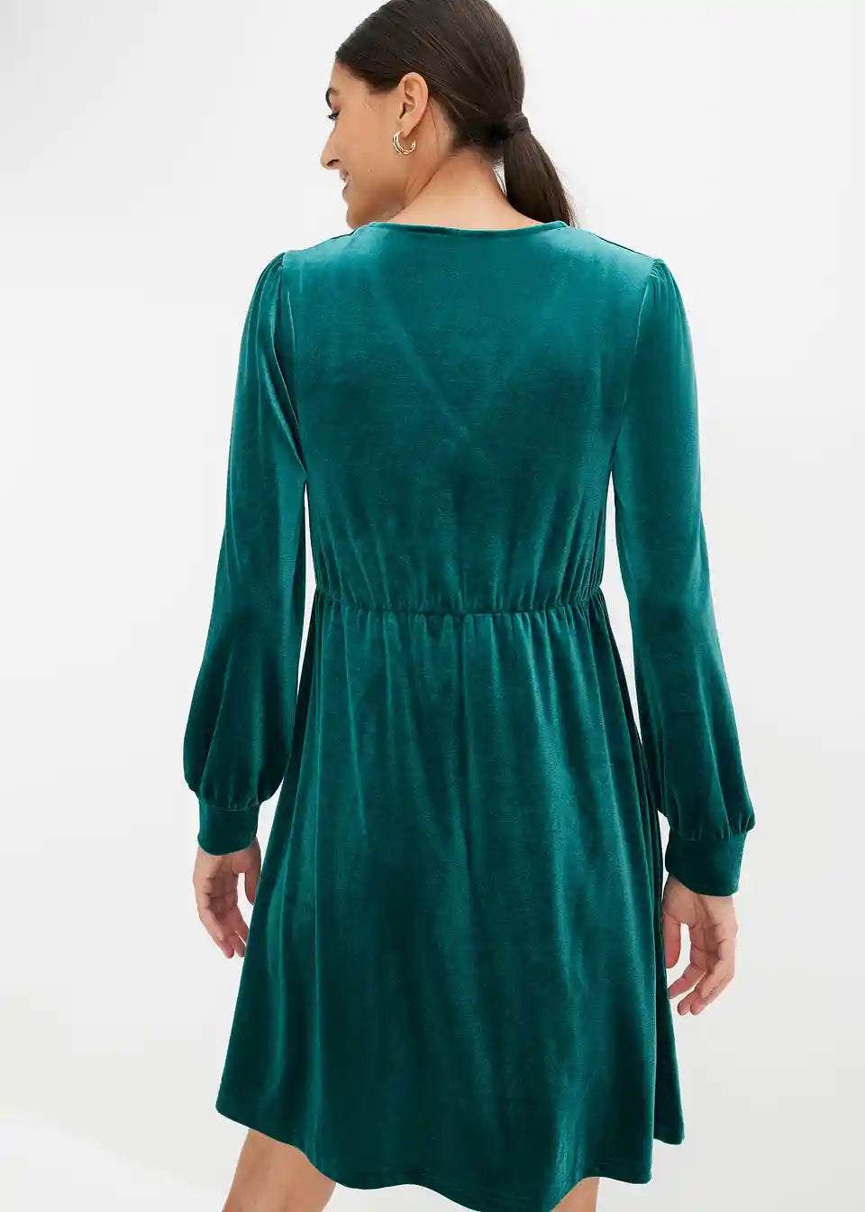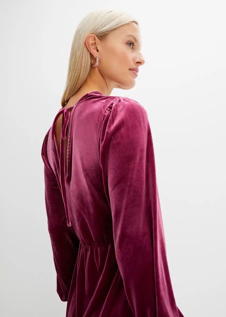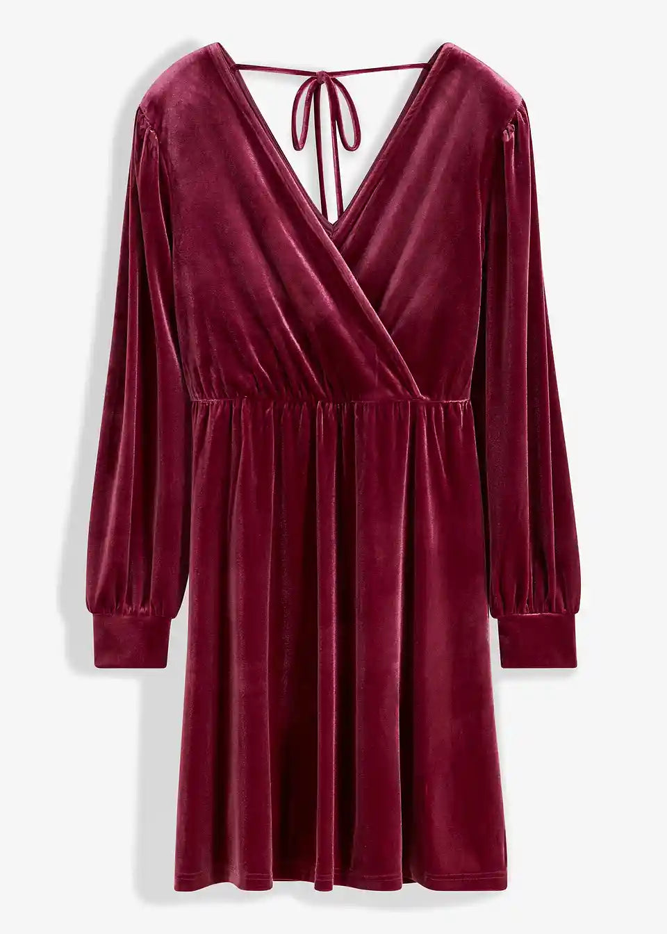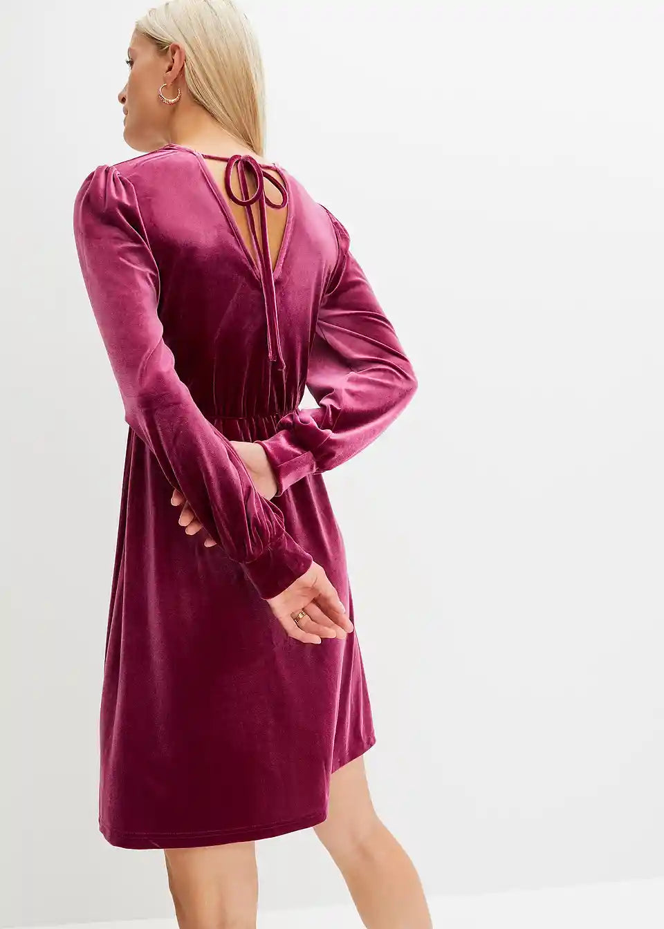 Žametna obleka s čudovitim V-izrezom spredaj in na hrbtni strani