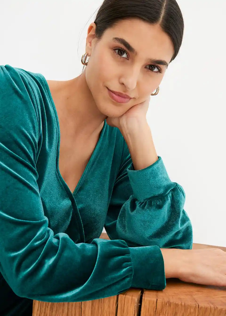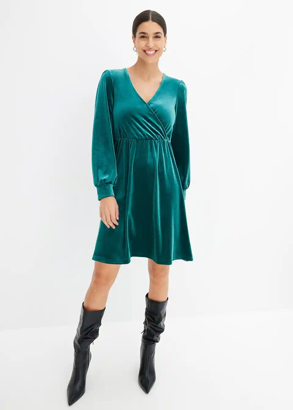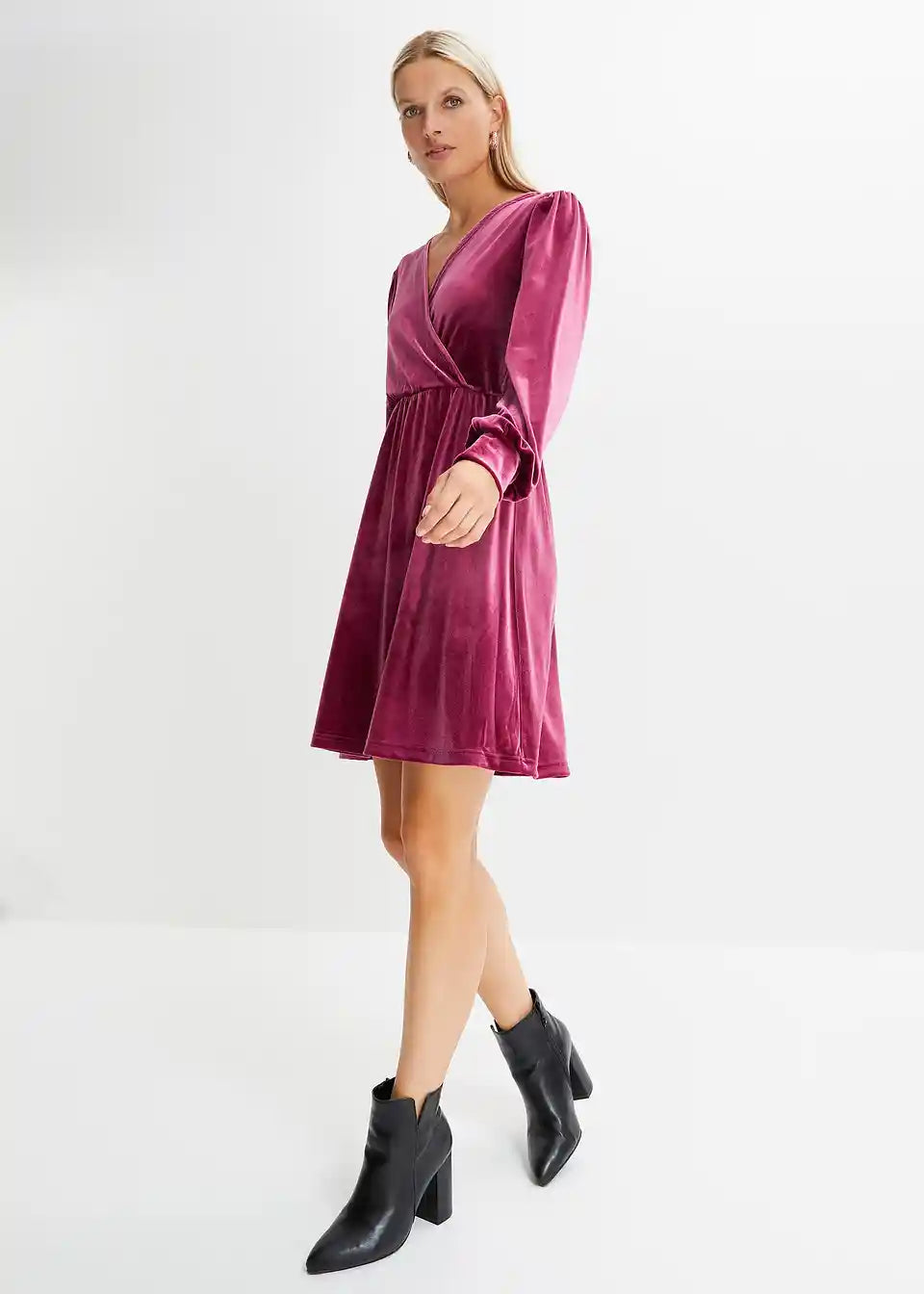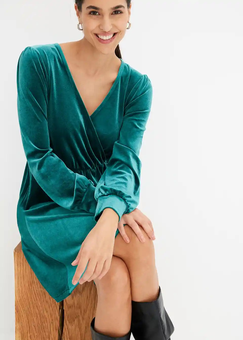 Žametna obleka s čudovitim V-izrezom spredaj in na hrbtni strani