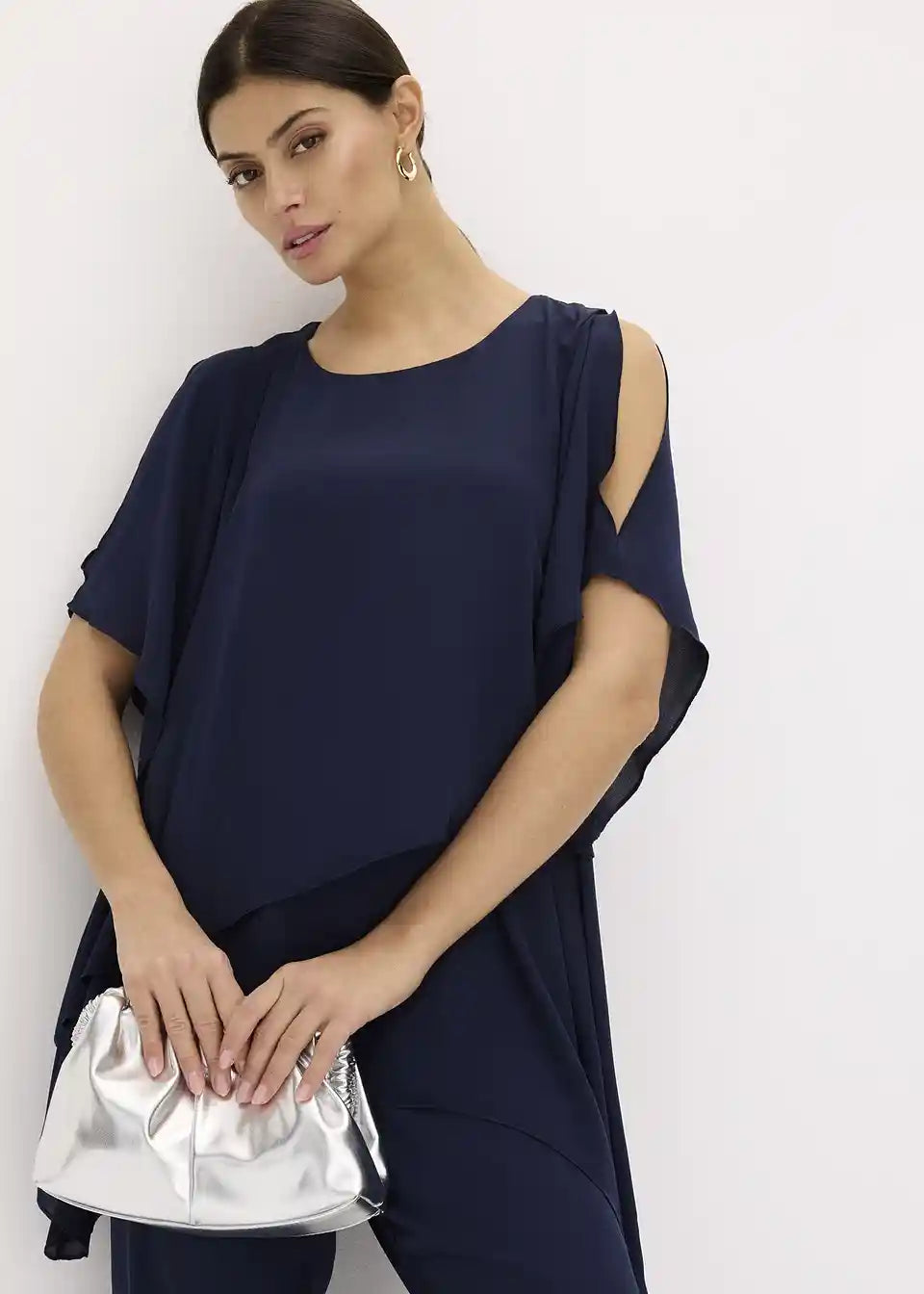 Moderna in prikrivajoča bluza v slojevitom videzu z asimetričnim robom