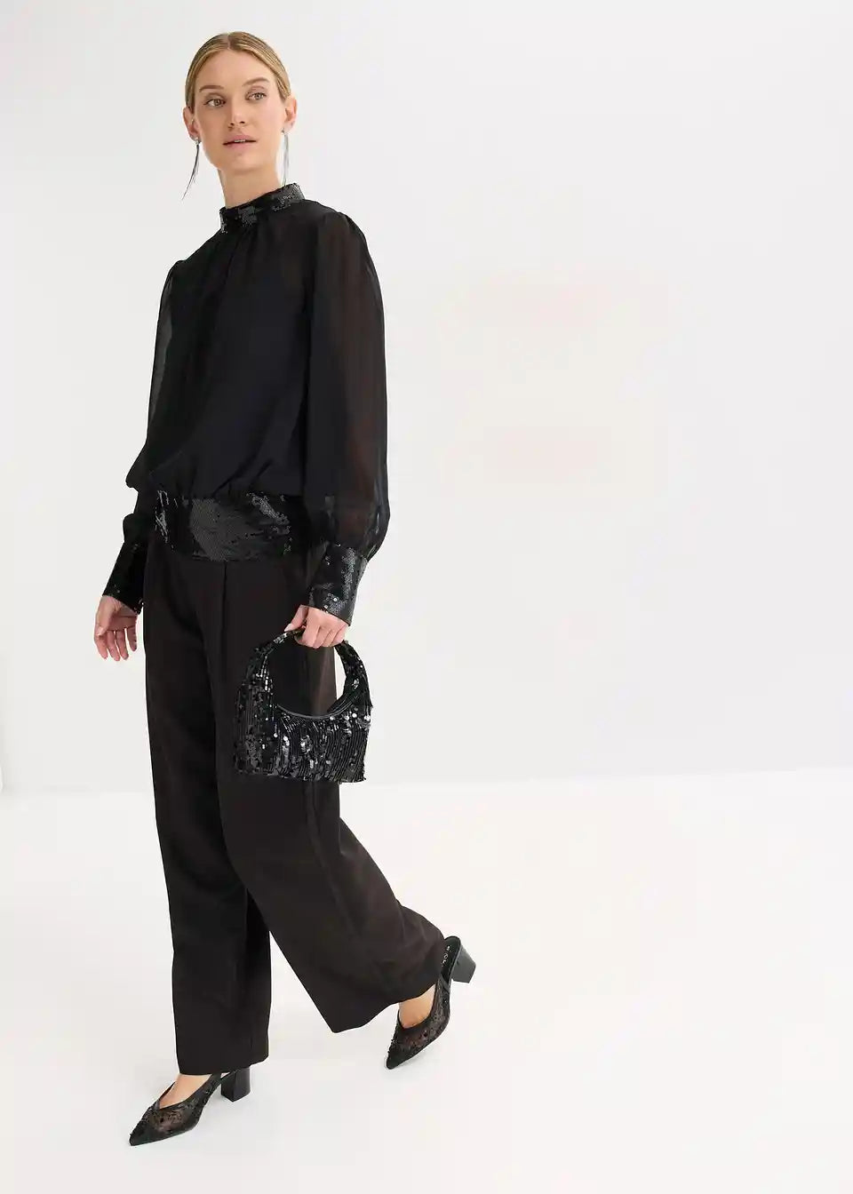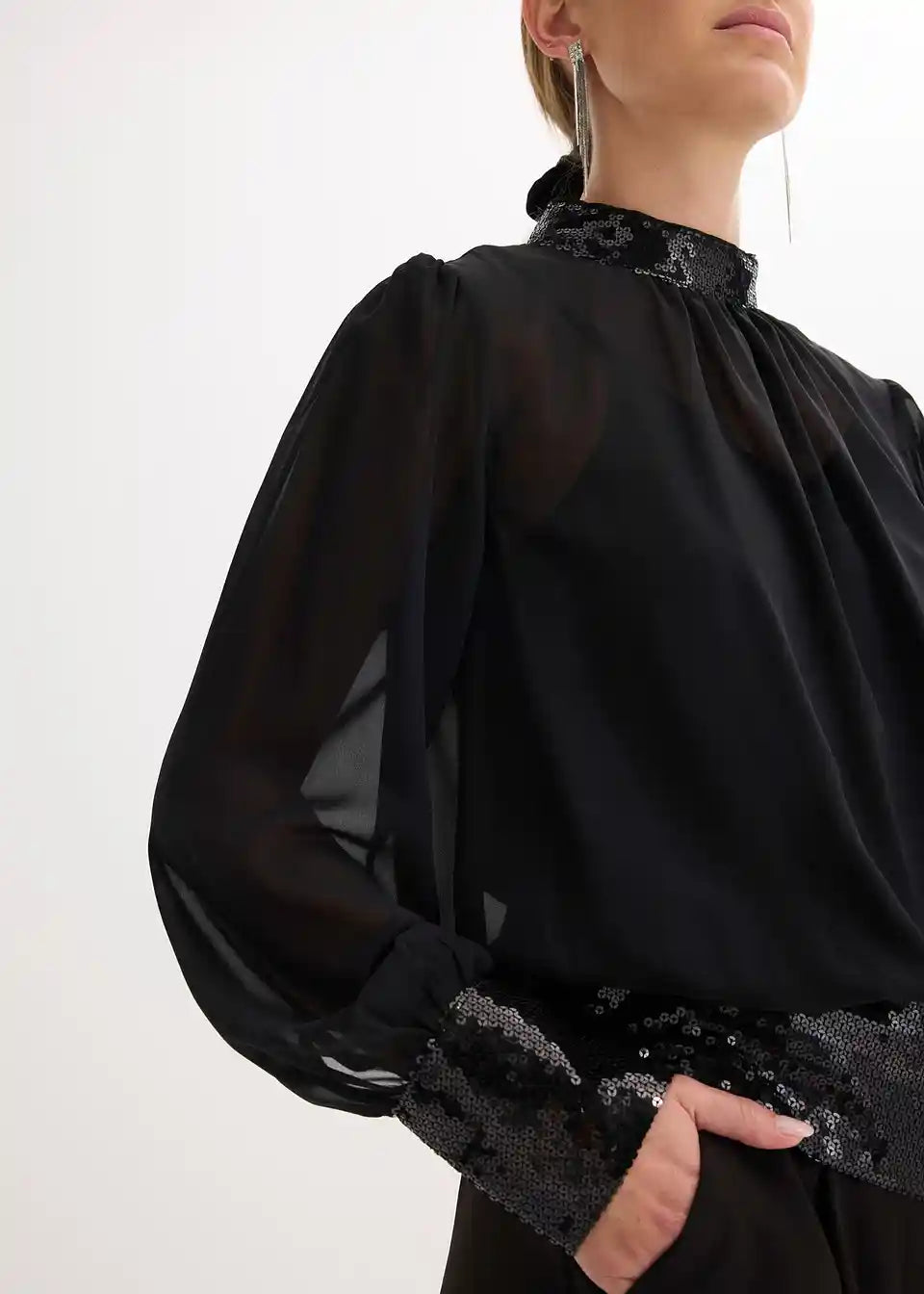 Moderna in ženstvena bluza iz finega šifona s podlogo in našitkom z bleščicami