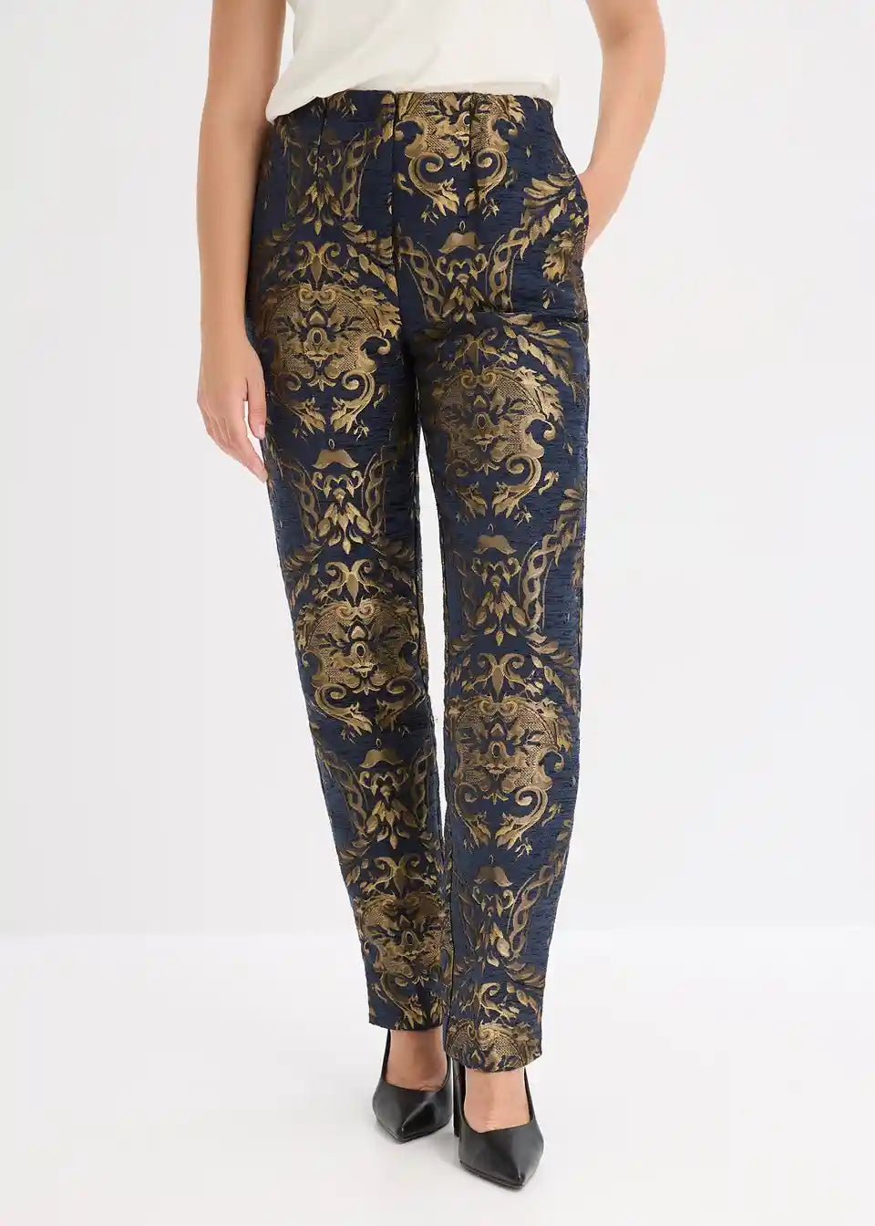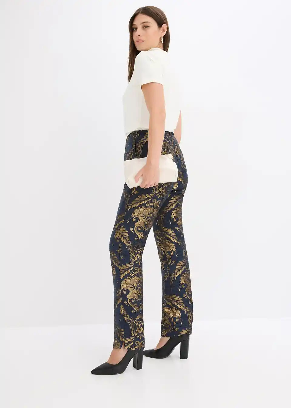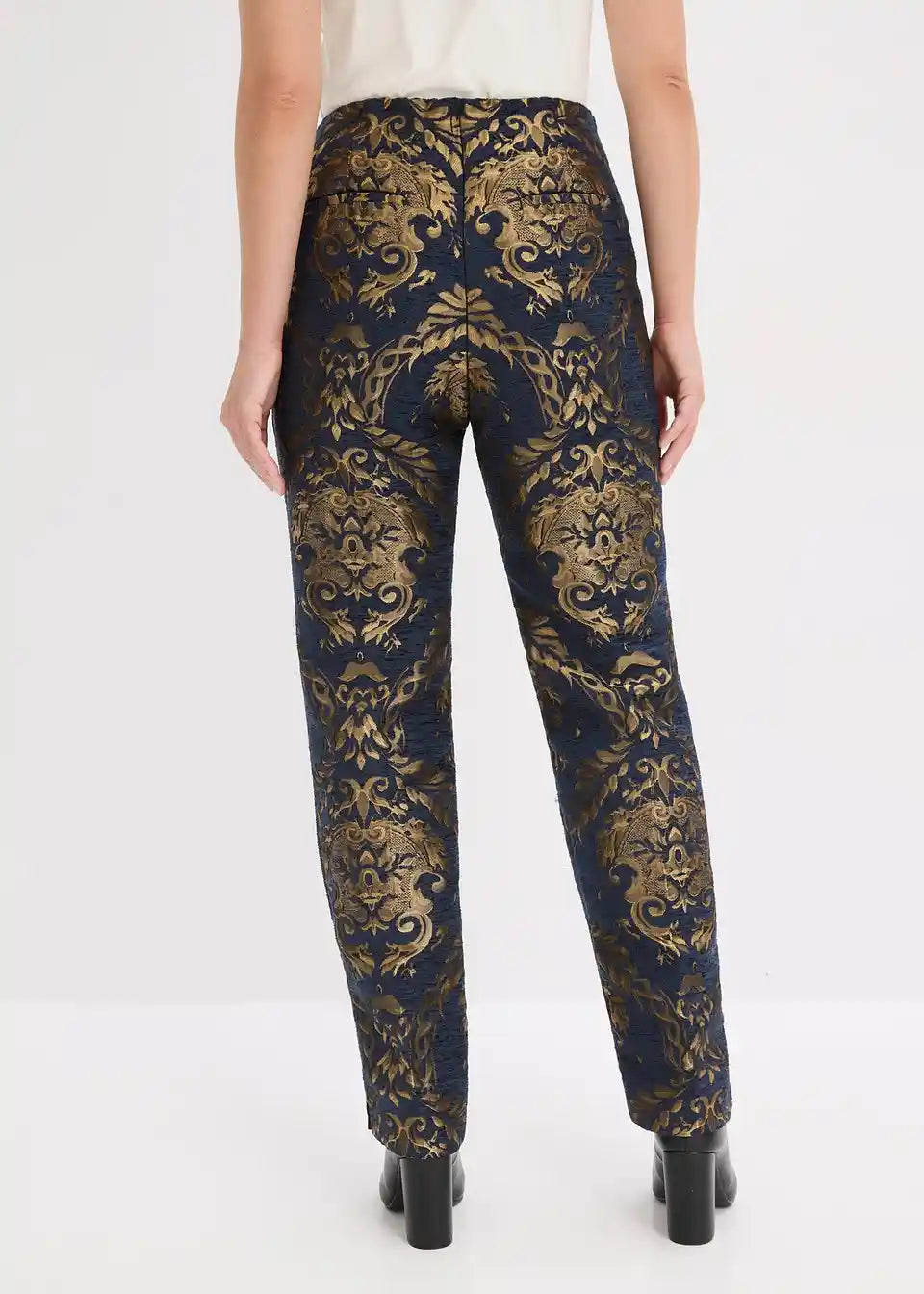 Moderne in ženstvene dolge žakarske hlače iz sijočega materiala