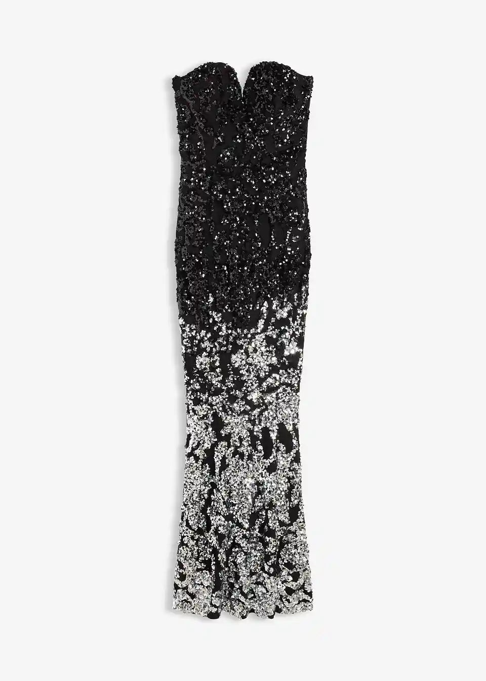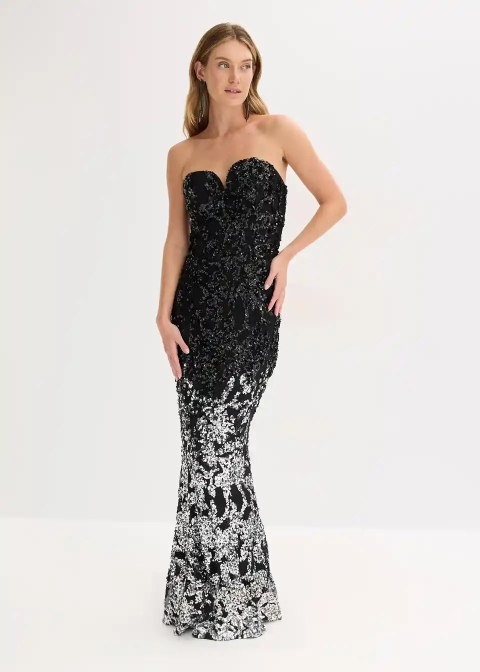 Glamurozno in seksi: večerna obleka v dolgem kroju v stilu morske deklice z vezenino iz bleščic in barvnim prelivom