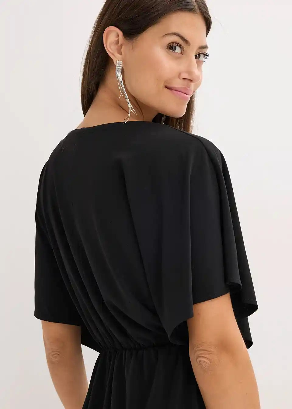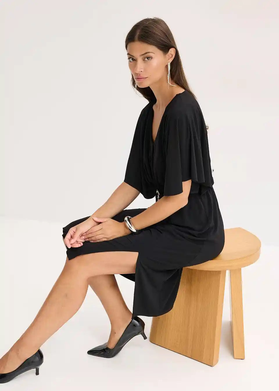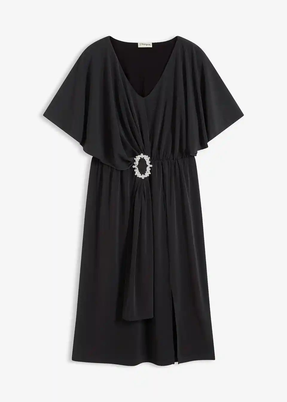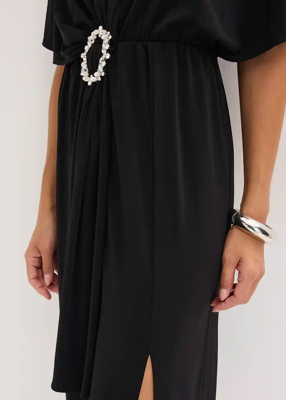 Ohlapna obleka iz finega jerseyja z okrasno zaponko v pasu