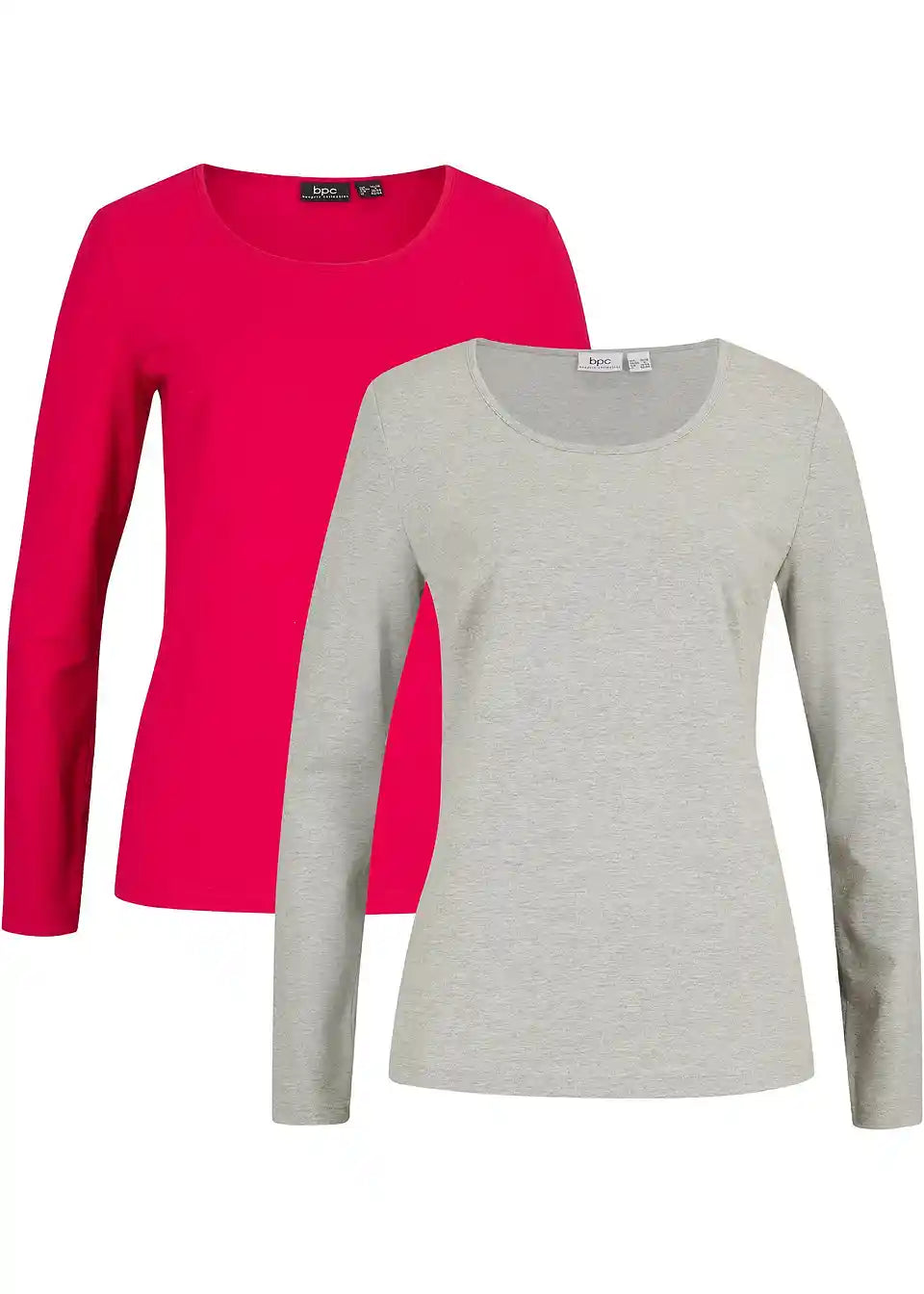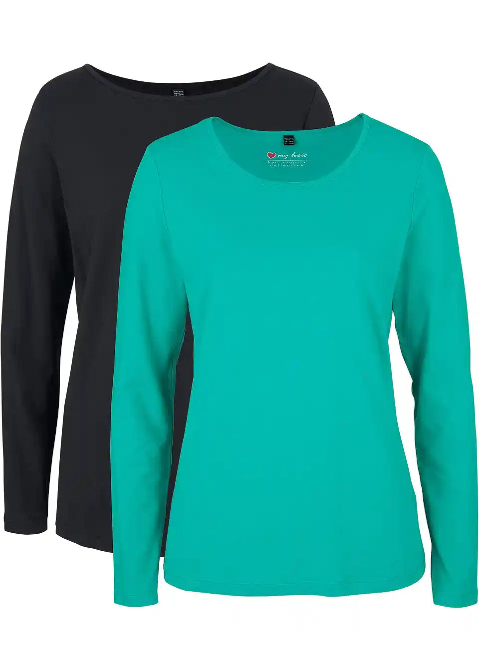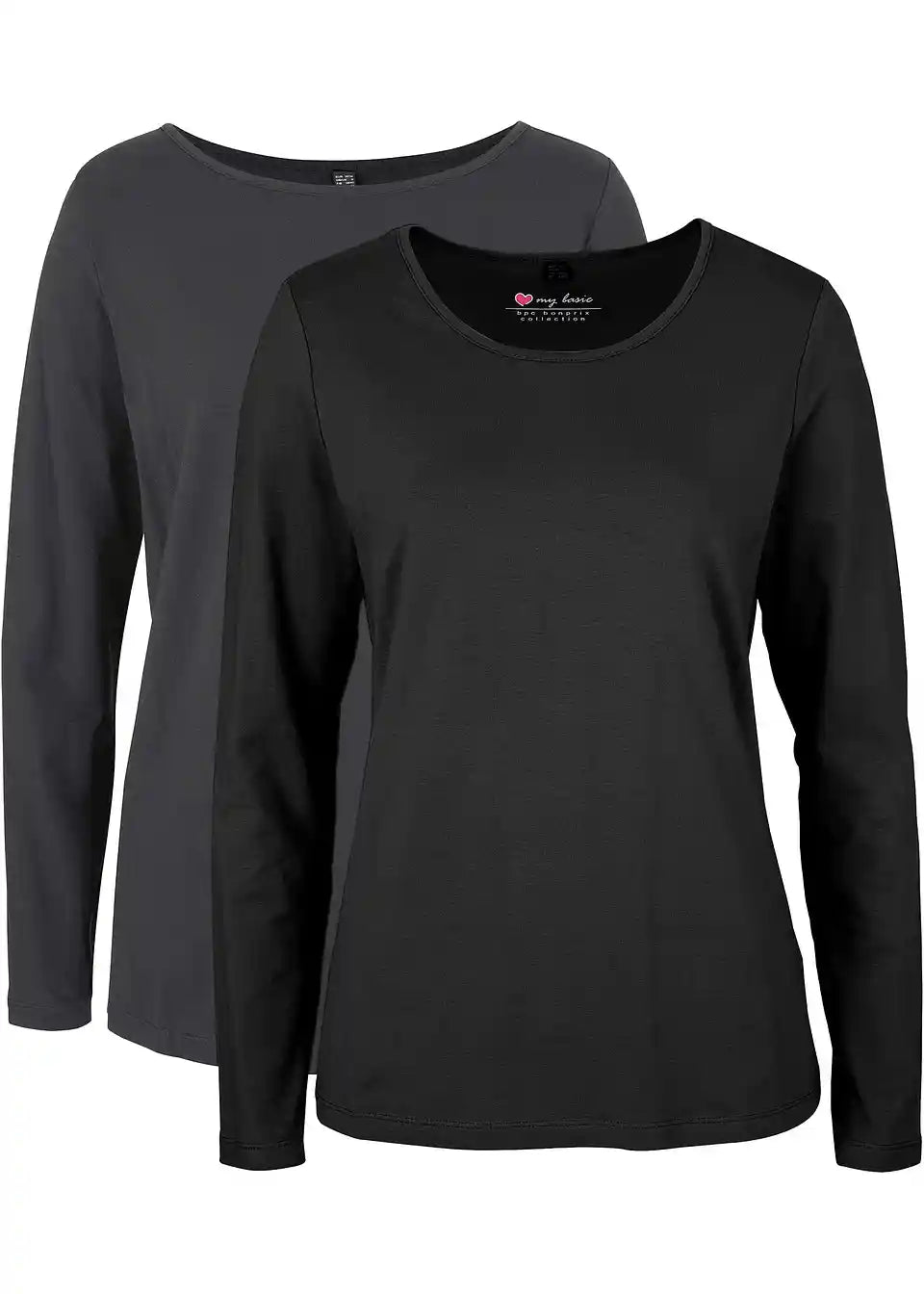 Majica z okroglim izrezom in dolgimi rokavi (2 kosa)