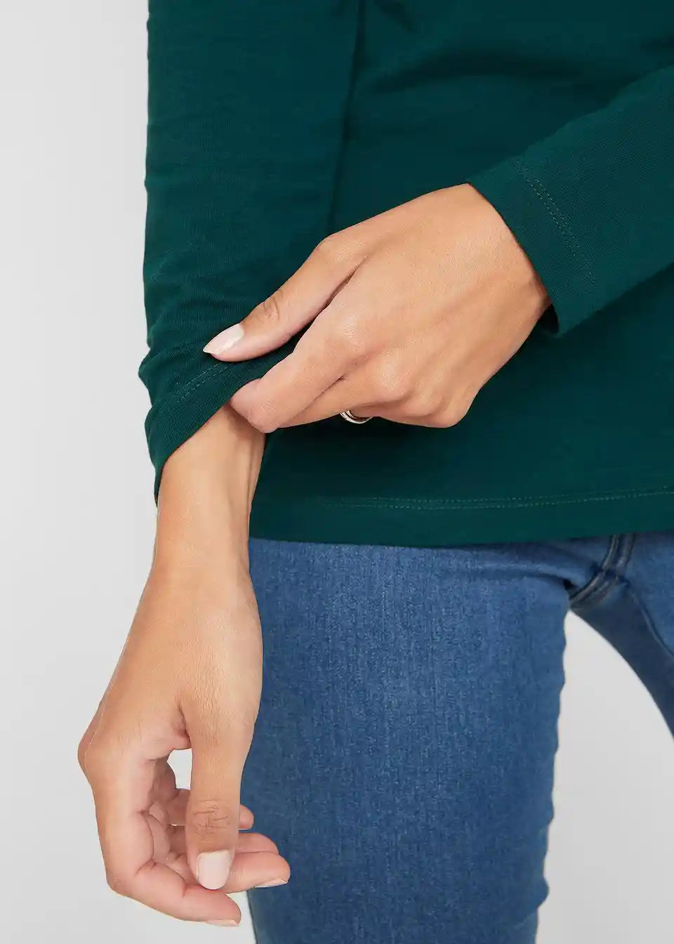 Osnovna raztegljiva majica z dolgimi rokavi in puli ovratnikom v dvojni pakiranje