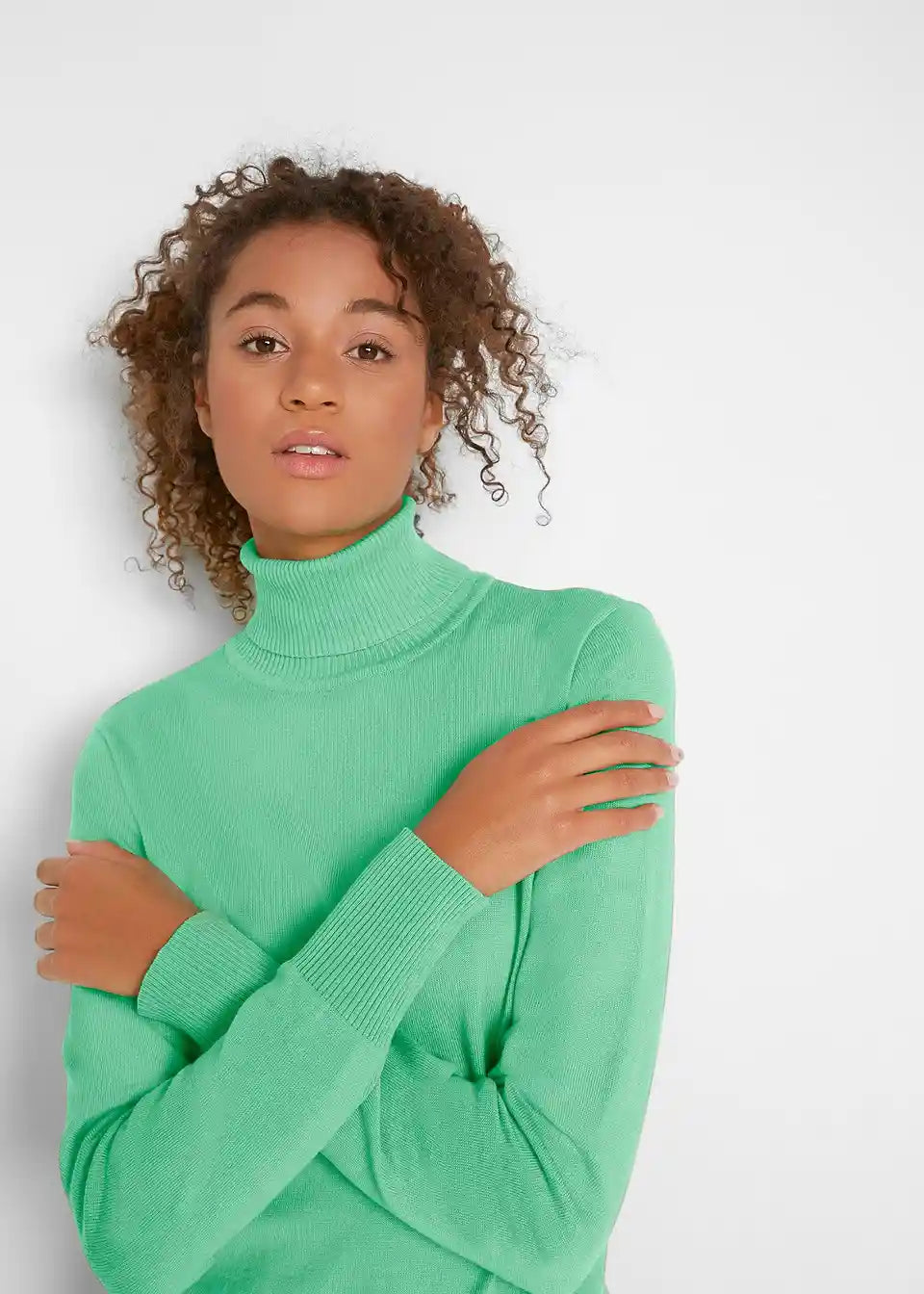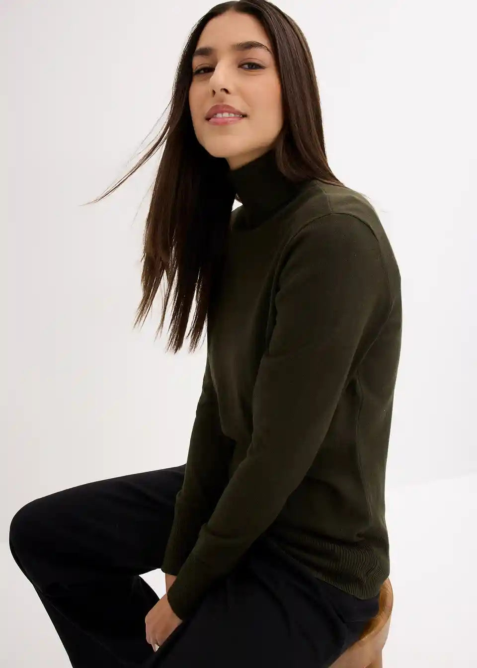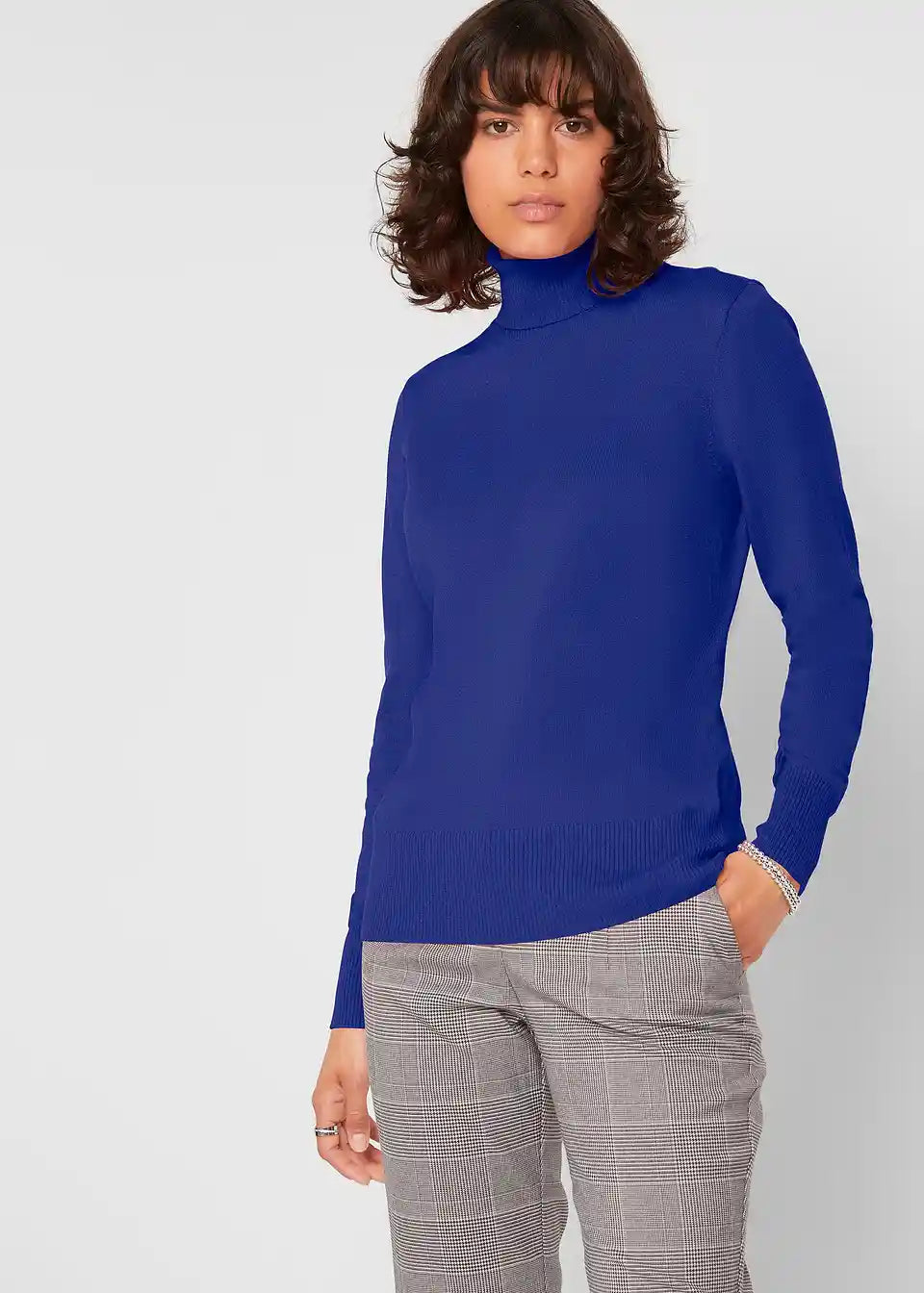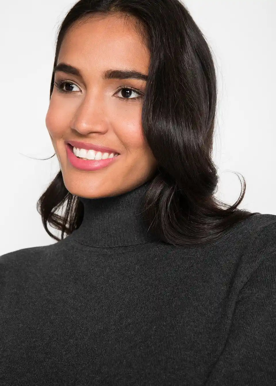 Visok roll ovratnik daje temu puloverju od znamke bpc ležeren videz. Lahka tanka pletena kakovost poskrbi, da je pulover posebno prijeten na dotik in oblikovno obstojen. Široki robovi na obrobju in rokavih poudarjajo sproščen izgled. Ta preprost osnovni kos je videti odlično tako s slim hlačami kot z udobnimi krili. Raznolike možnosti kombiniranja naredijo ta pulover z roll ovratnikom pravi najljubši kos.