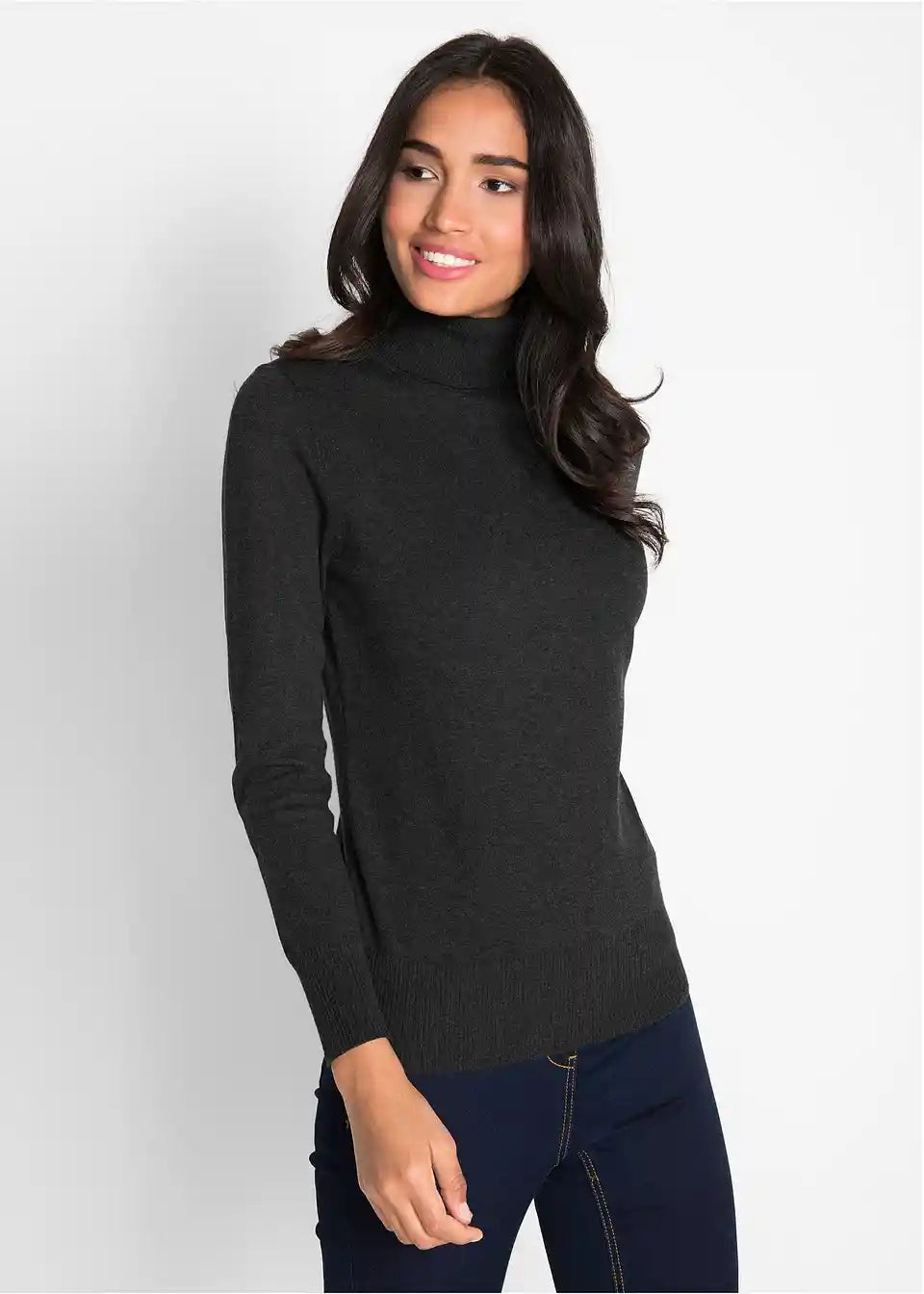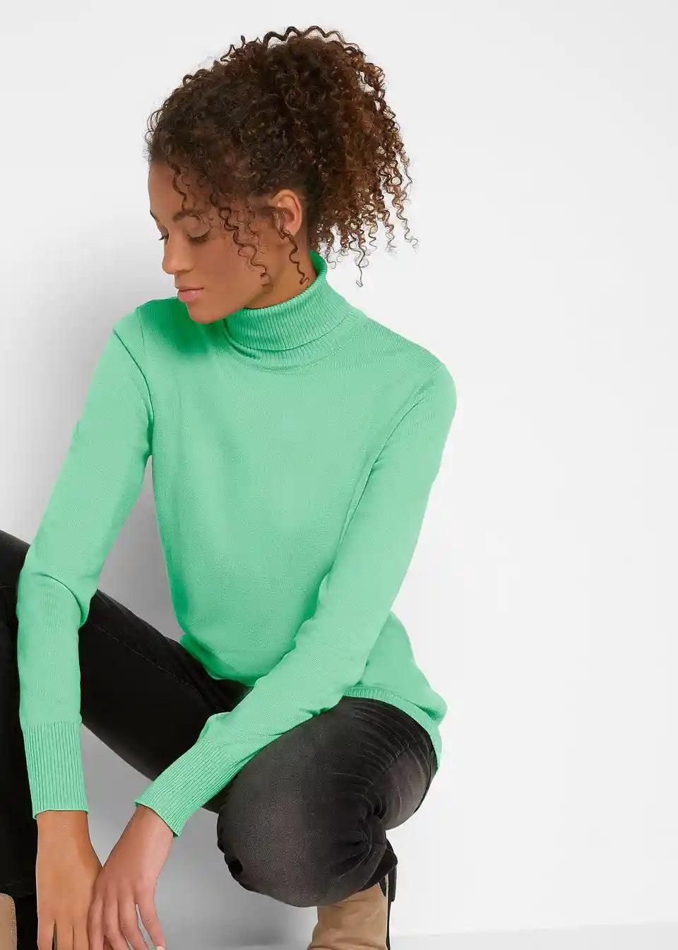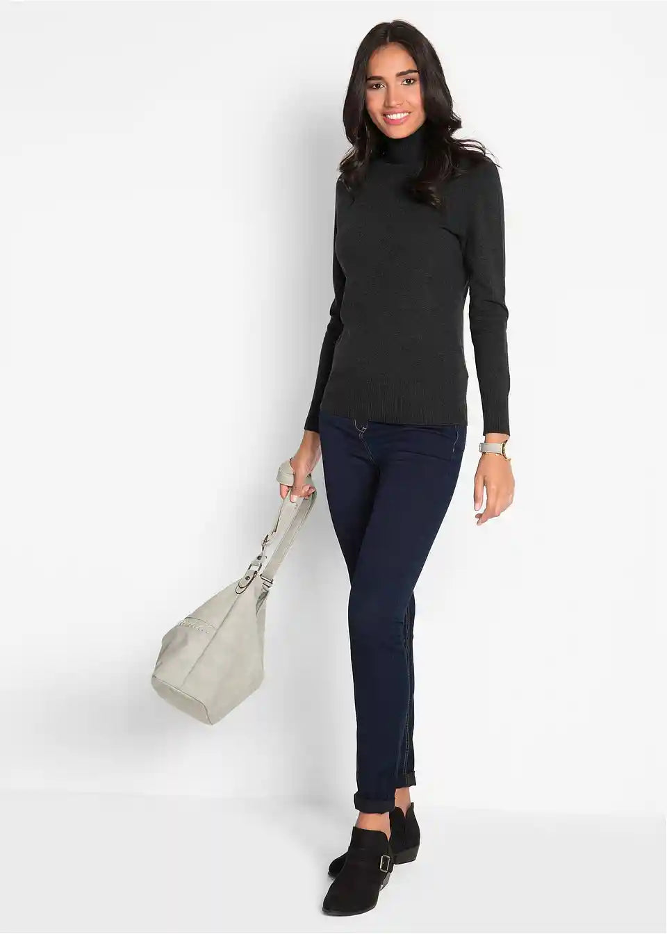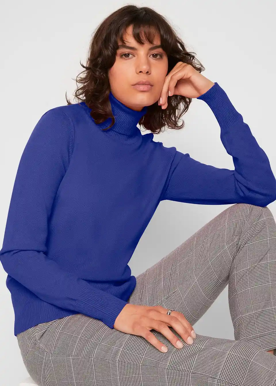 Visok roll ovratnik daje temu puloverju od znamke bpc ležeren videz. Lahka tanka pletena kakovost poskrbi, da je pulover posebno prijeten na dotik in oblikovno obstojen. Široki robovi na obrobju in rokavih poudarjajo sproščen izgled. Ta preprost osnovni kos je videti odlično tako s slim hlačami kot z udobnimi krili. Raznolike možnosti kombiniranja naredijo ta pulover z roll ovratnikom pravi najljubši kos.
