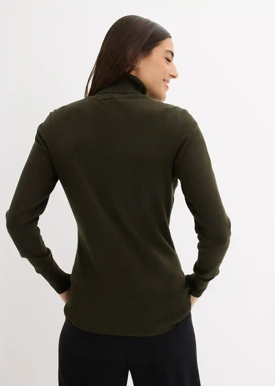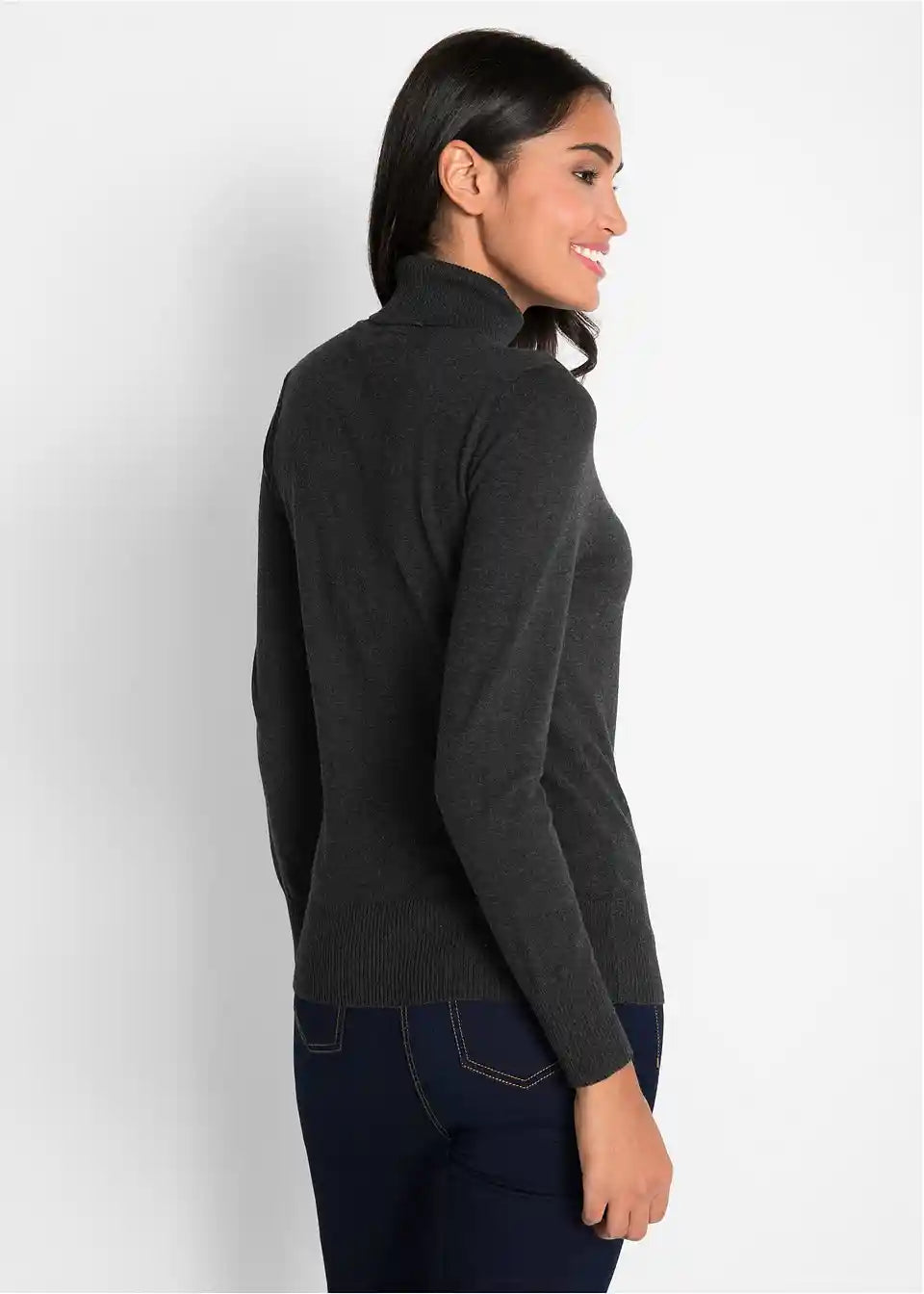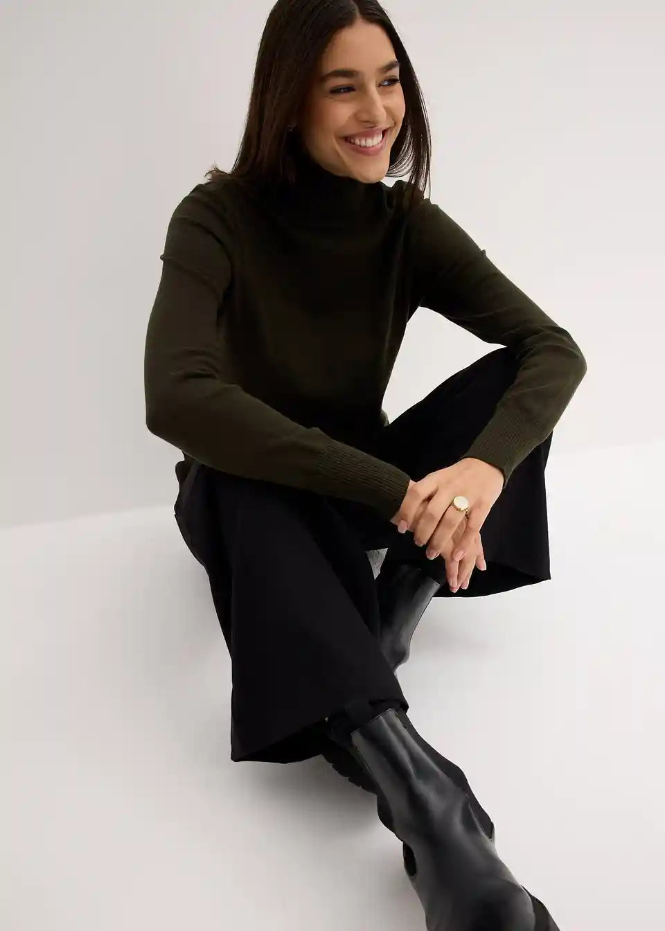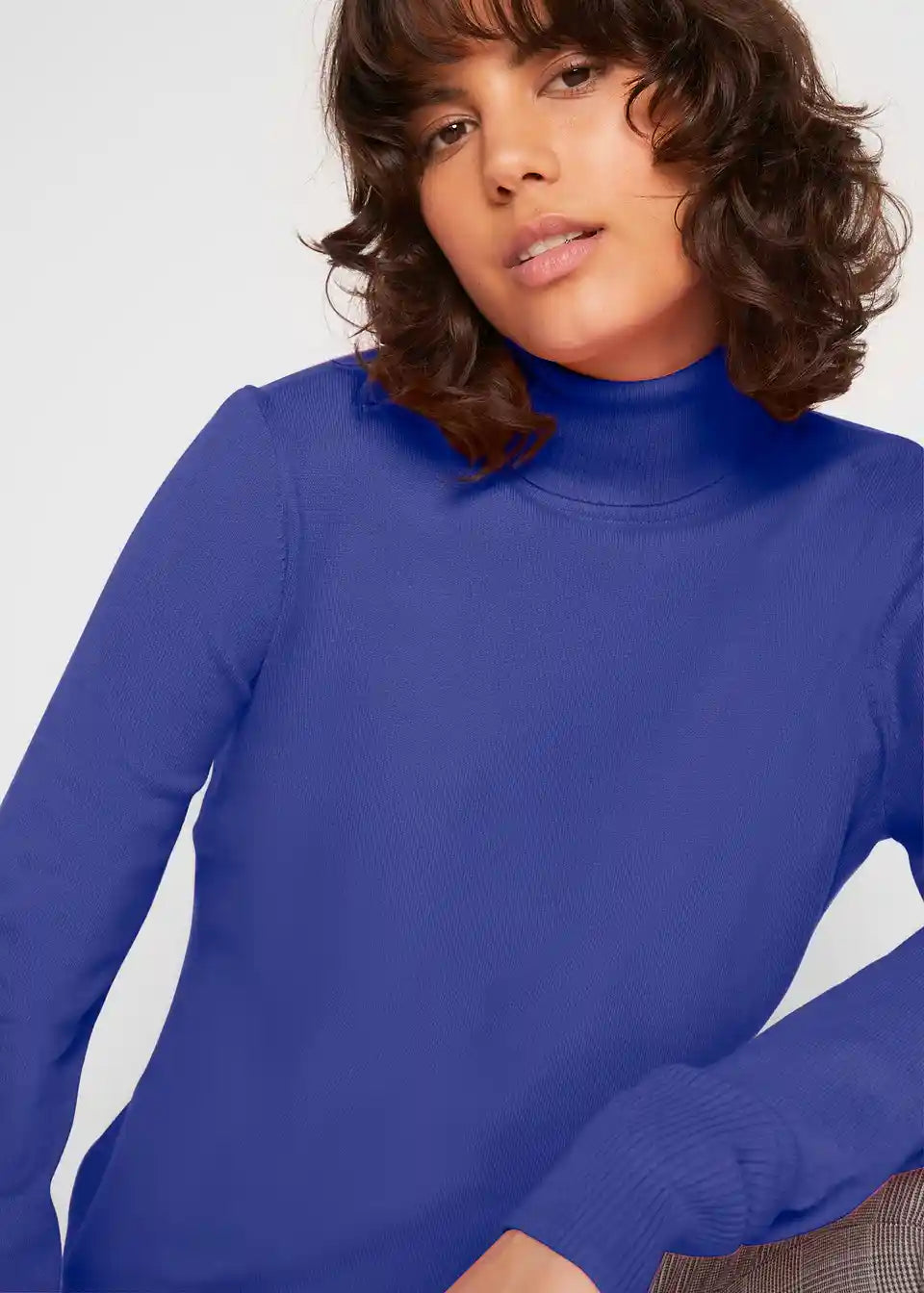 Visok roll ovratnik daje temu puloverju od znamke bpc ležeren videz. Lahka tanka pletena kakovost poskrbi, da je pulover posebno prijeten na dotik in oblikovno obstojen. Široki robovi na obrobju in rokavih poudarjajo sproščen izgled. Ta preprost osnovni kos je videti odlično tako s slim hlačami kot z udobnimi krili. Raznolike možnosti kombiniranja naredijo ta pulover z roll ovratnikom pravi najljubši kos.