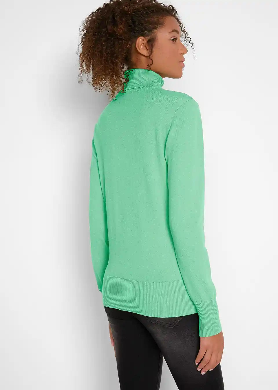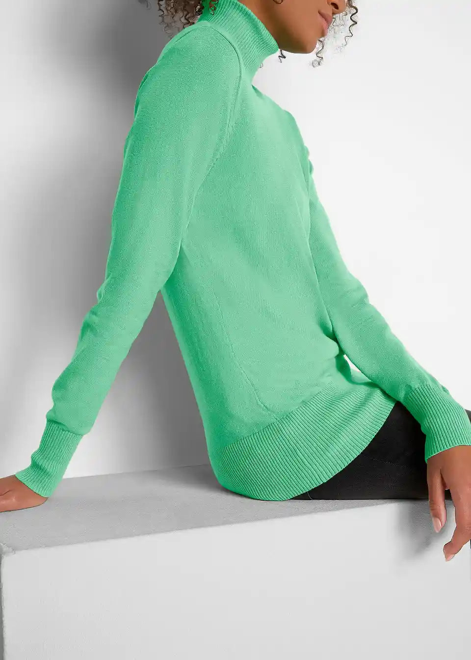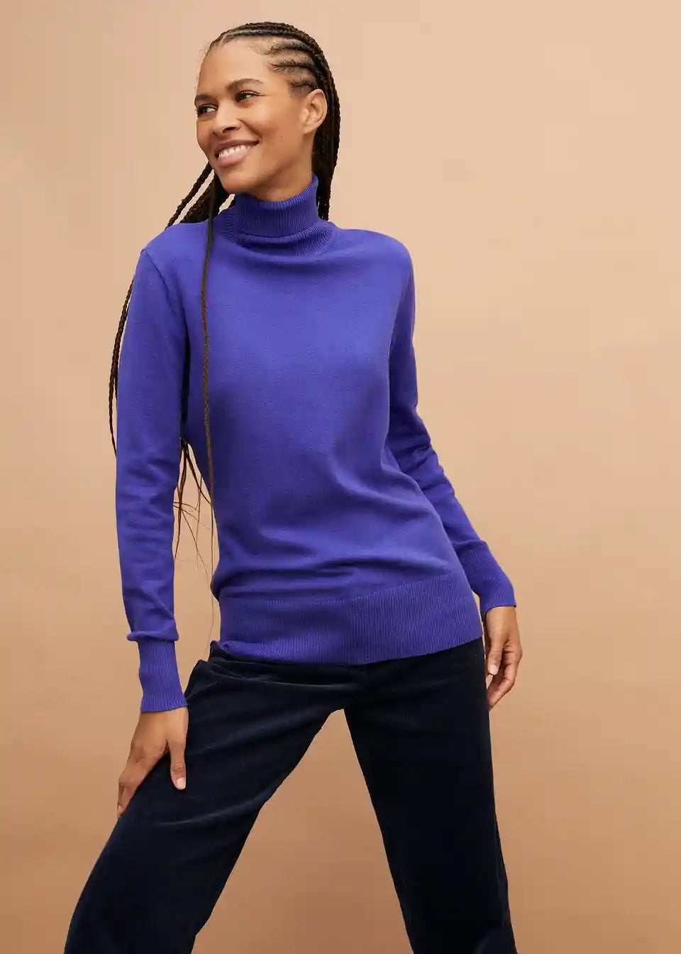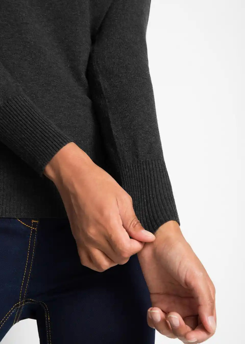 Visok roll ovratnik daje temu puloverju od znamke bpc ležeren videz. Lahka tanka pletena kakovost poskrbi, da je pulover posebno prijeten na dotik in oblikovno obstojen. Široki robovi na obrobju in rokavih poudarjajo sproščen izgled. Ta preprost osnovni kos je videti odlično tako s slim hlačami kot z udobnimi krili. Raznolike možnosti kombiniranja naredijo ta pulover z roll ovratnikom pravi najljubši kos.