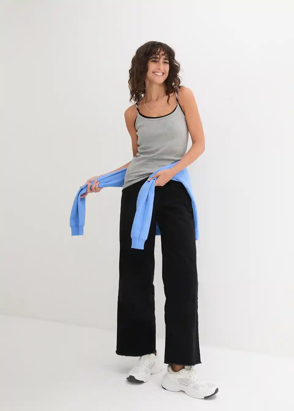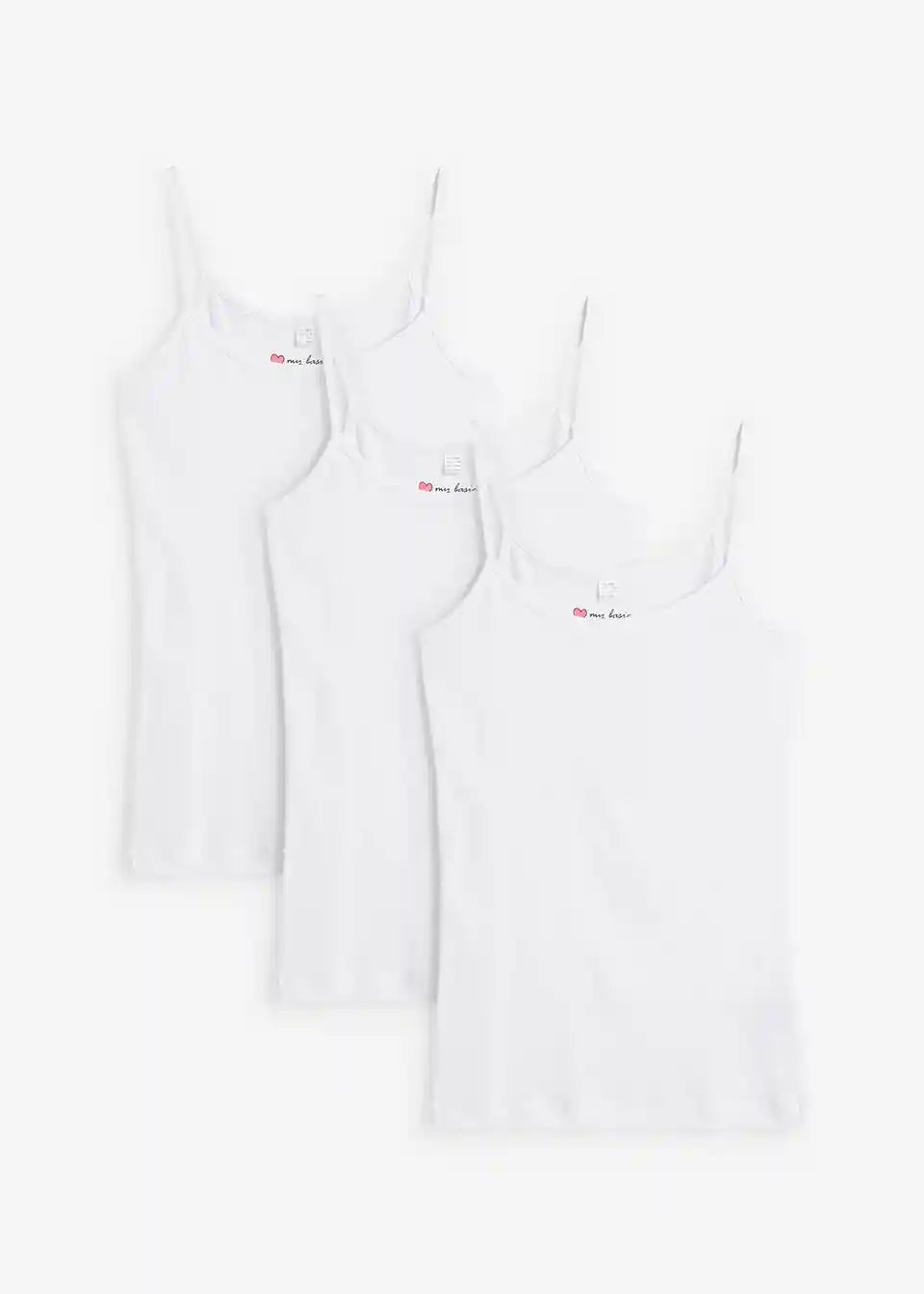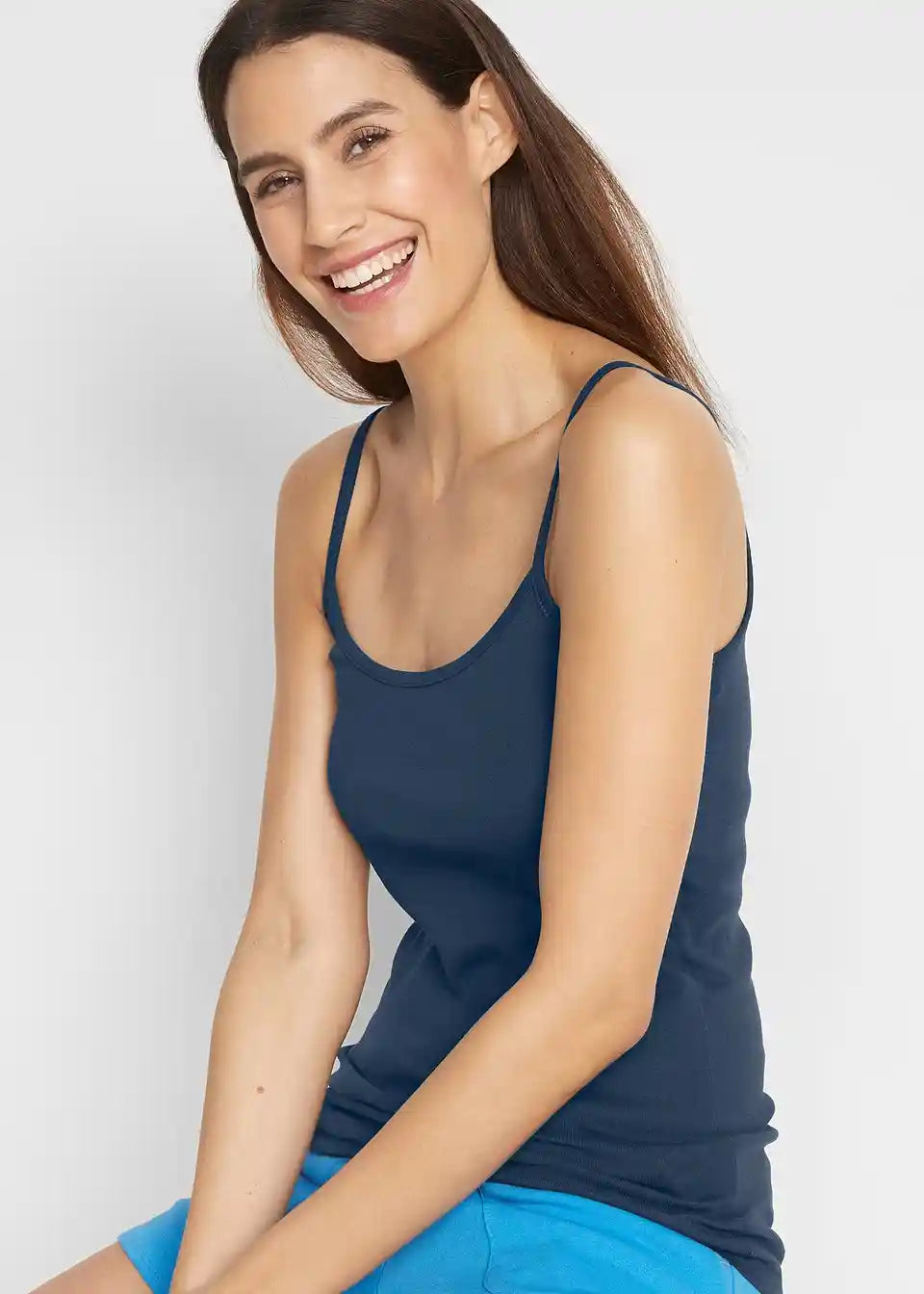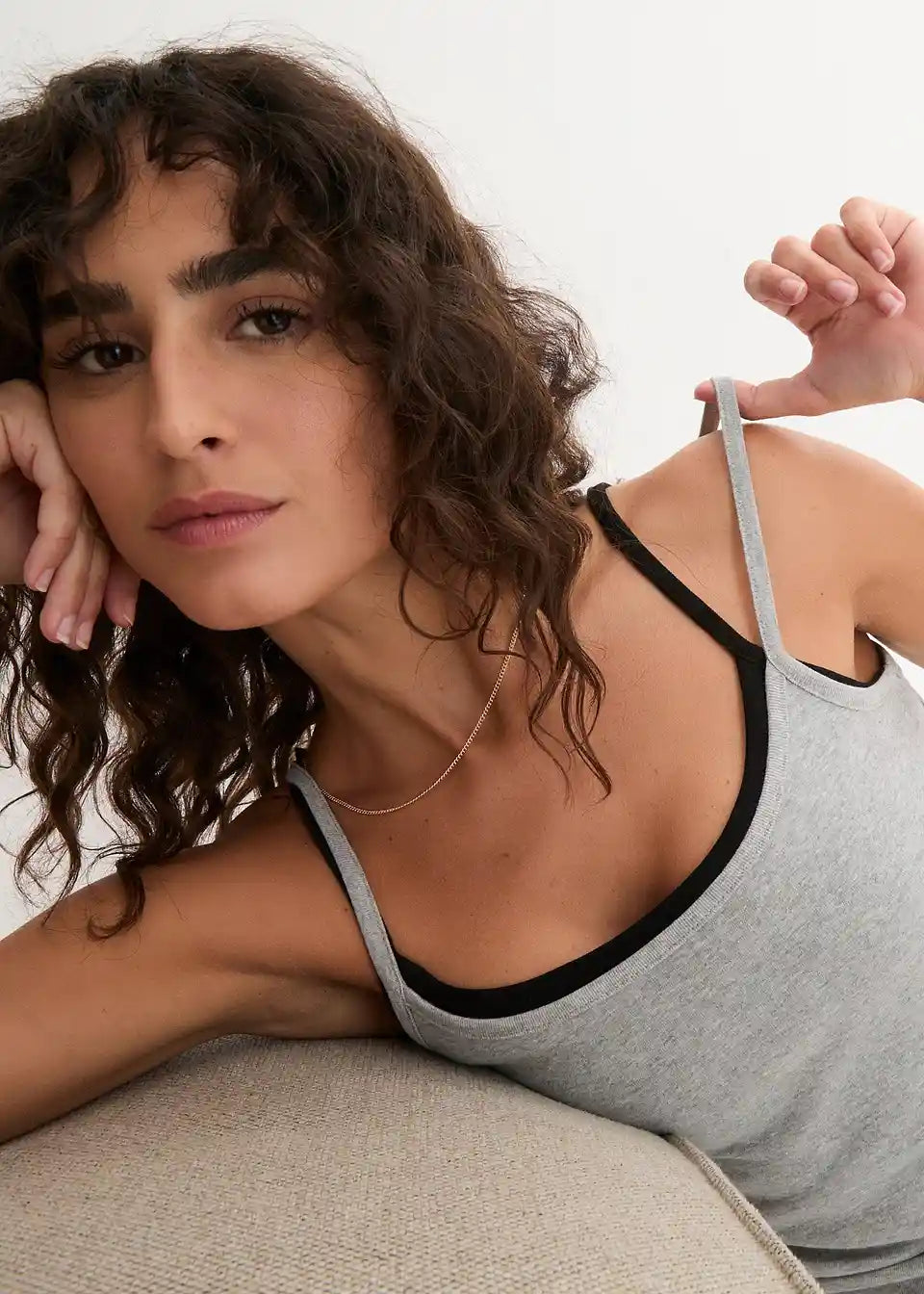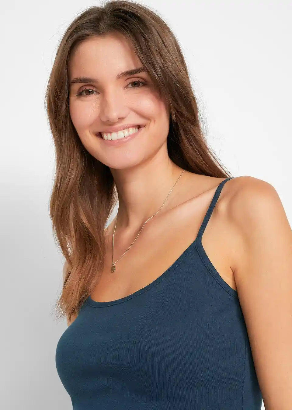 Popoln osnovni kos za vsak dan: Ta čudovit top bpc omogoča številne kombinacije in zaokroža sproščene stajlinge. Oprijet kroj in dolžina lepo objameta kožo. Tanke naramnice naredijo zgornji del idealen za nošenje pod puloverji, majicami in bluzami. Kot sveža izbira za tople dni ali kot osnovni kos pod različnimi oblačili, je ta top nepogrešljiv za modne dame. Praktični trojni paket prinaša raznolikost v garderobo.