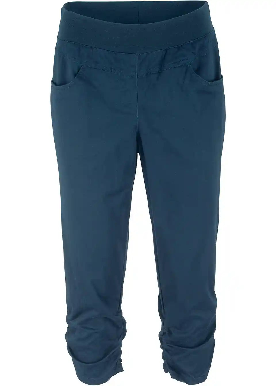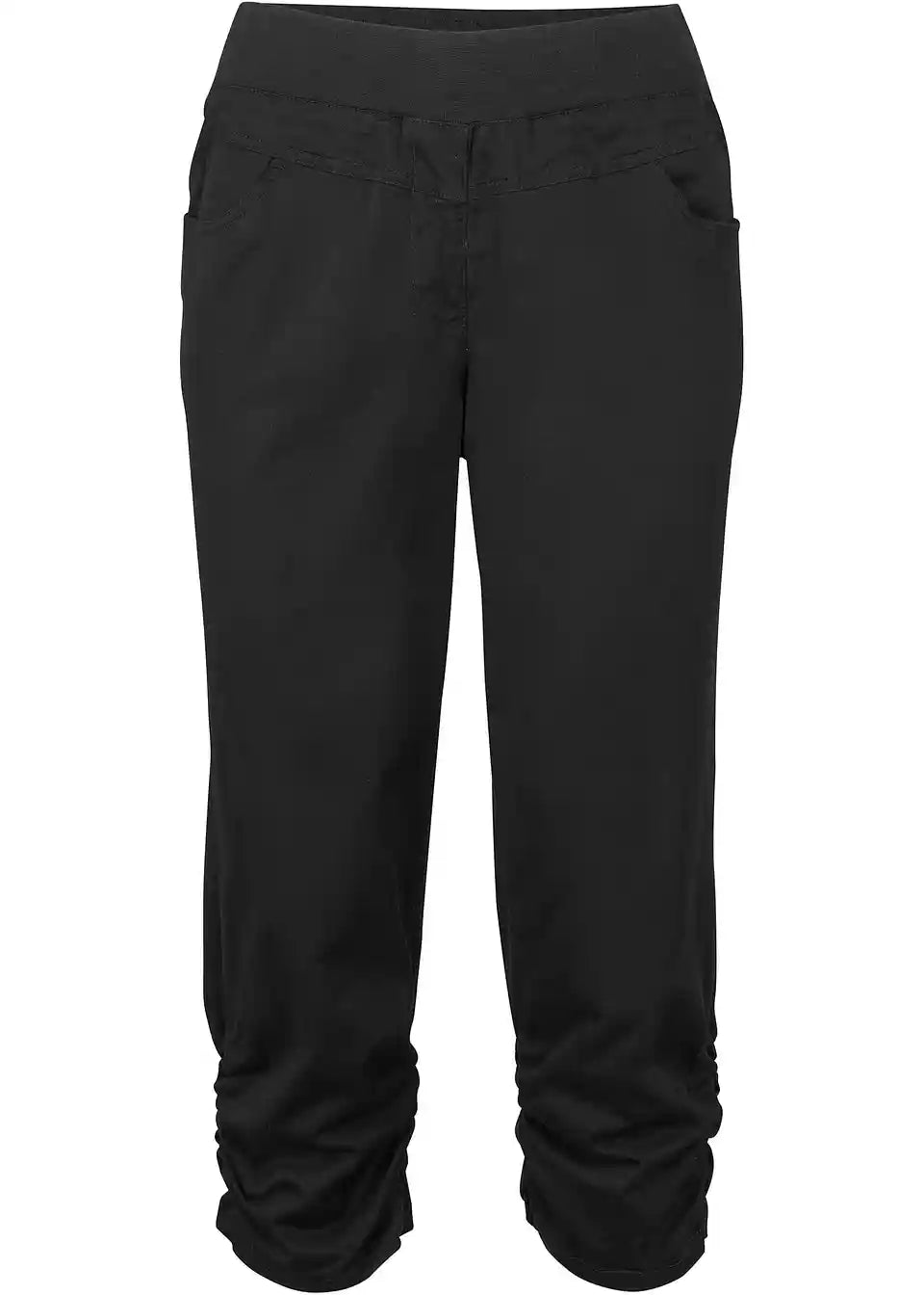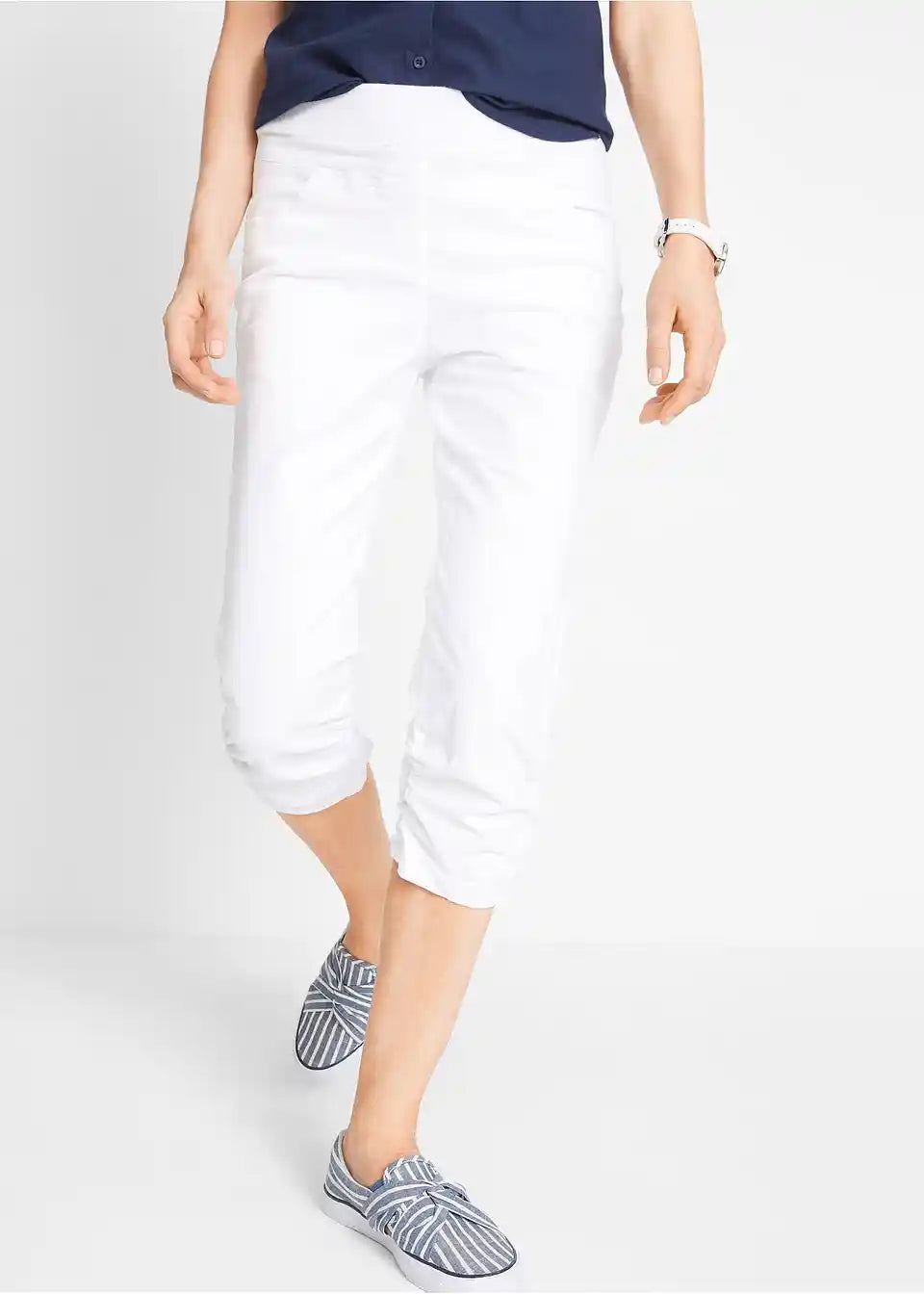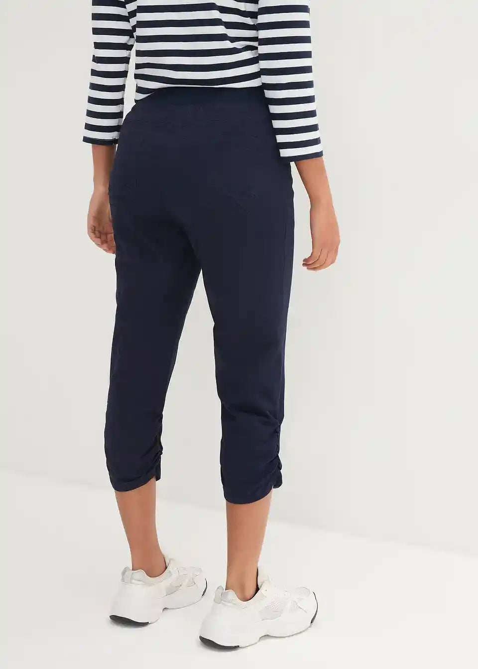 Capri hlače z elastičnim pasom in stranskimi naborki