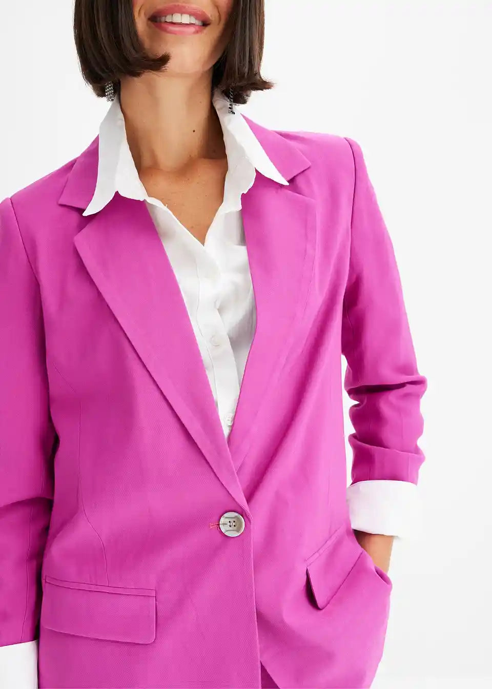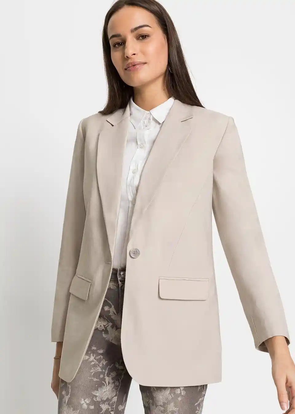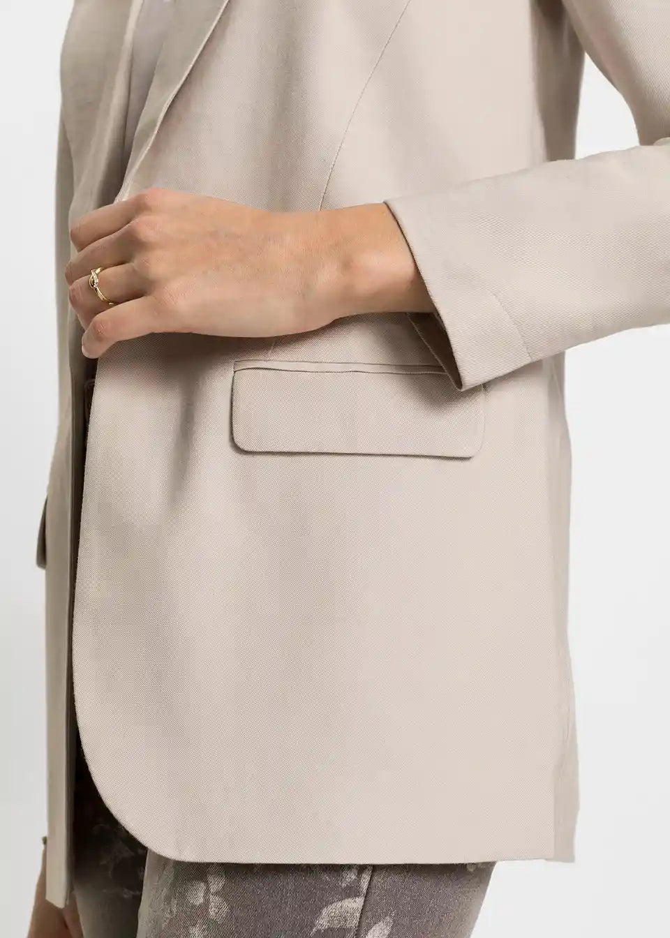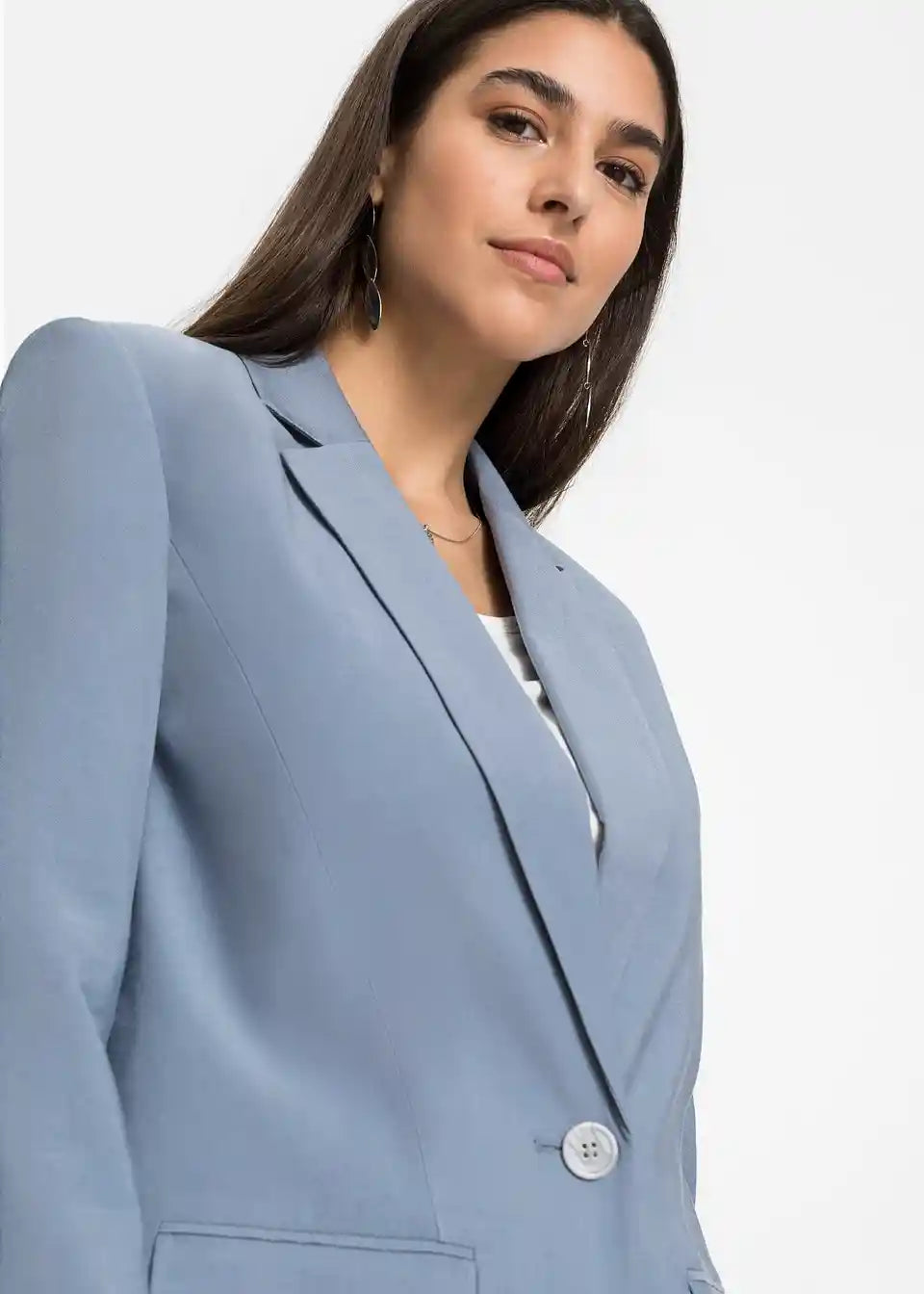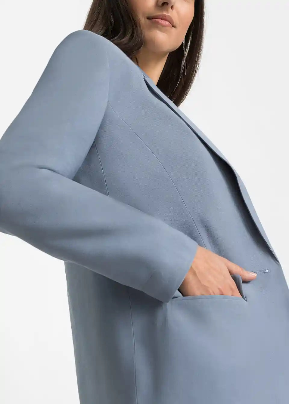 Eleganten blazer, zaprt z dekorativnim gumbom iz imitacije roga.