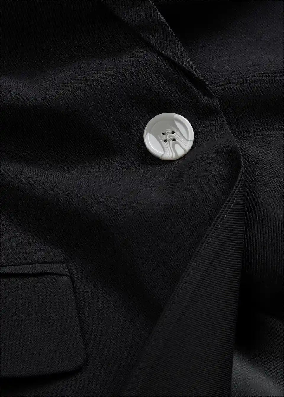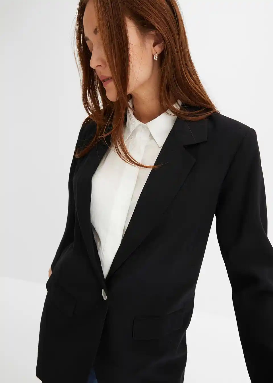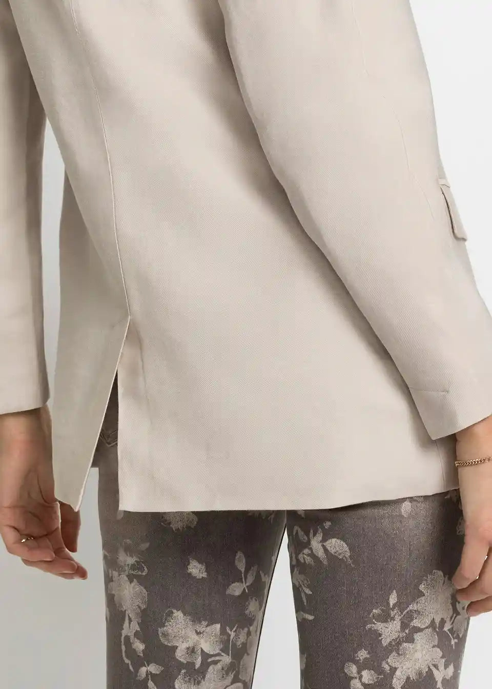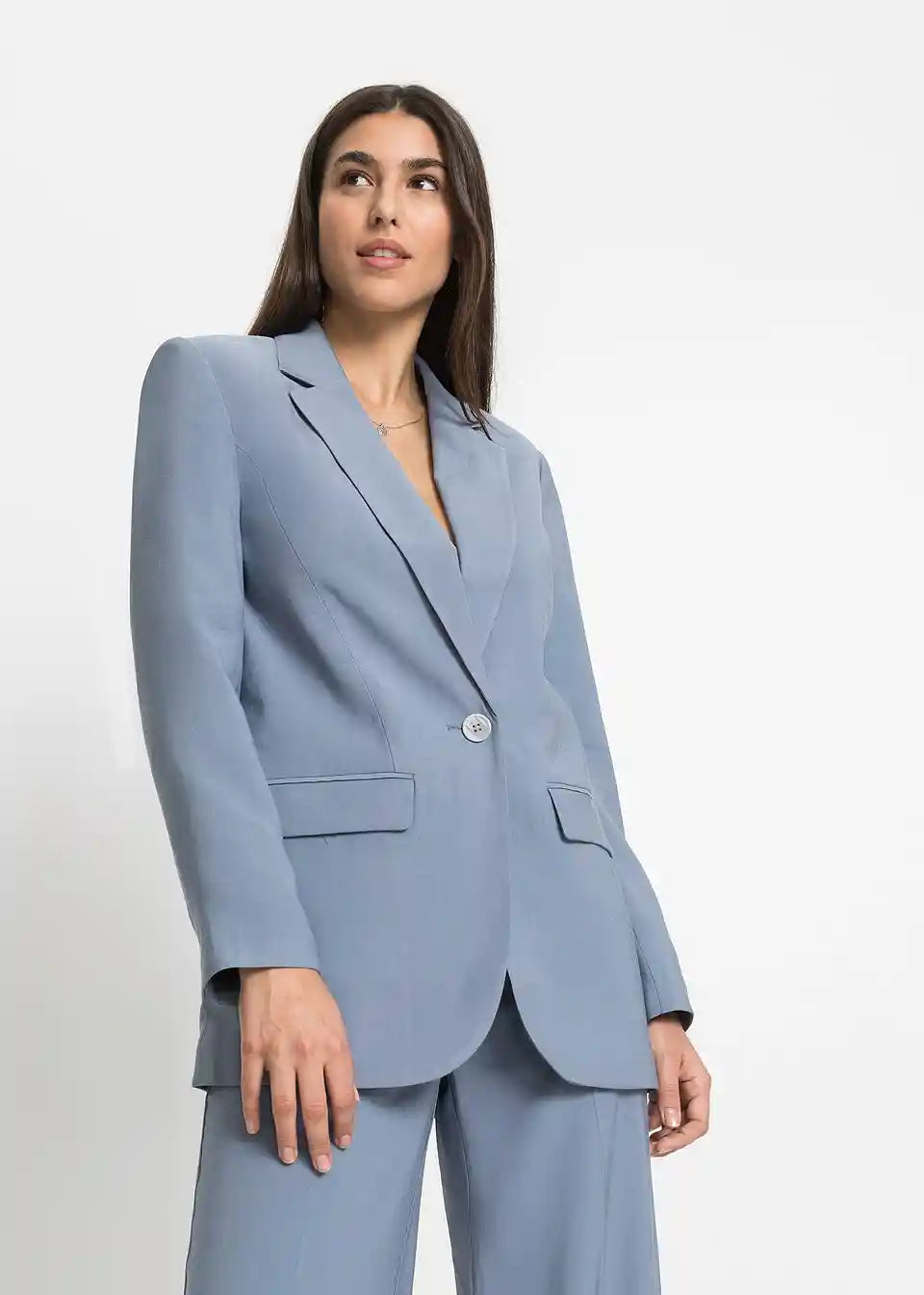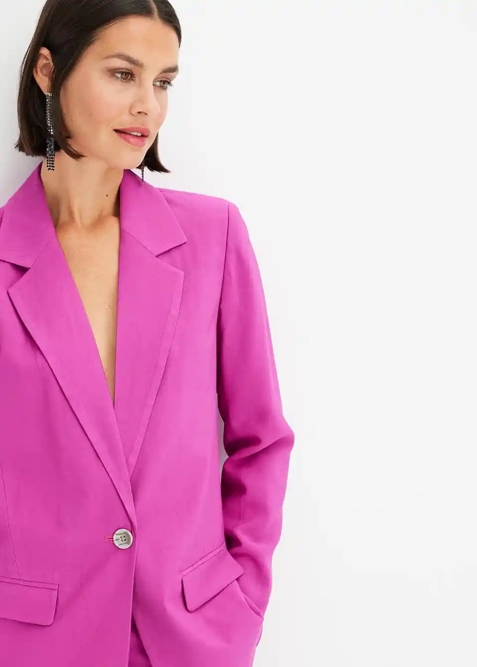 Eleganten blazer, zaprt z dekorativnim gumbom iz imitacije roga.