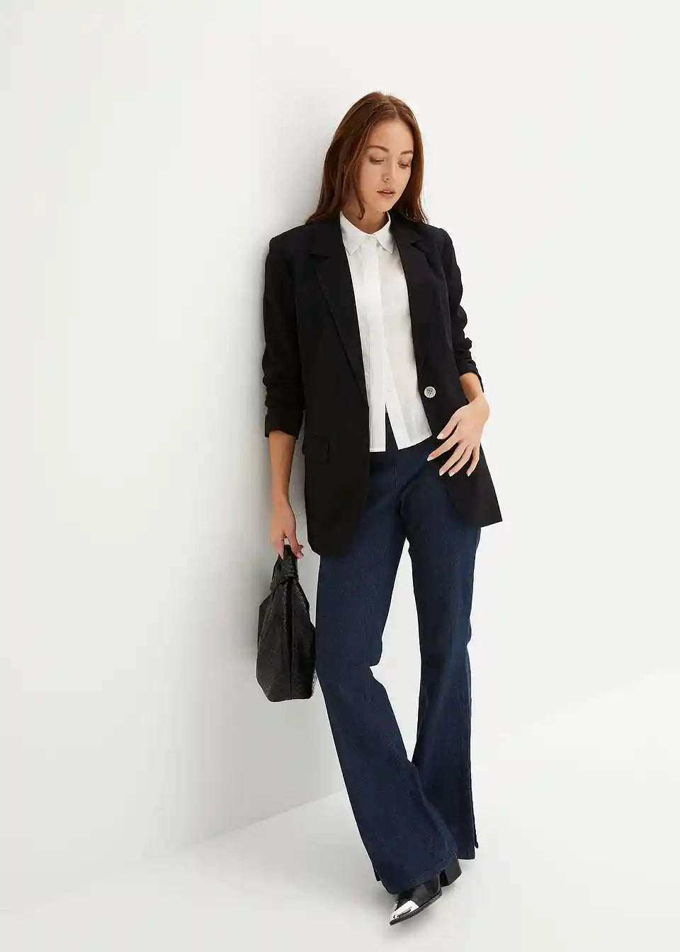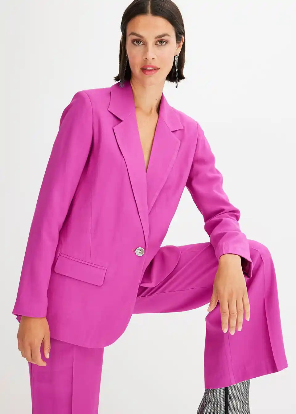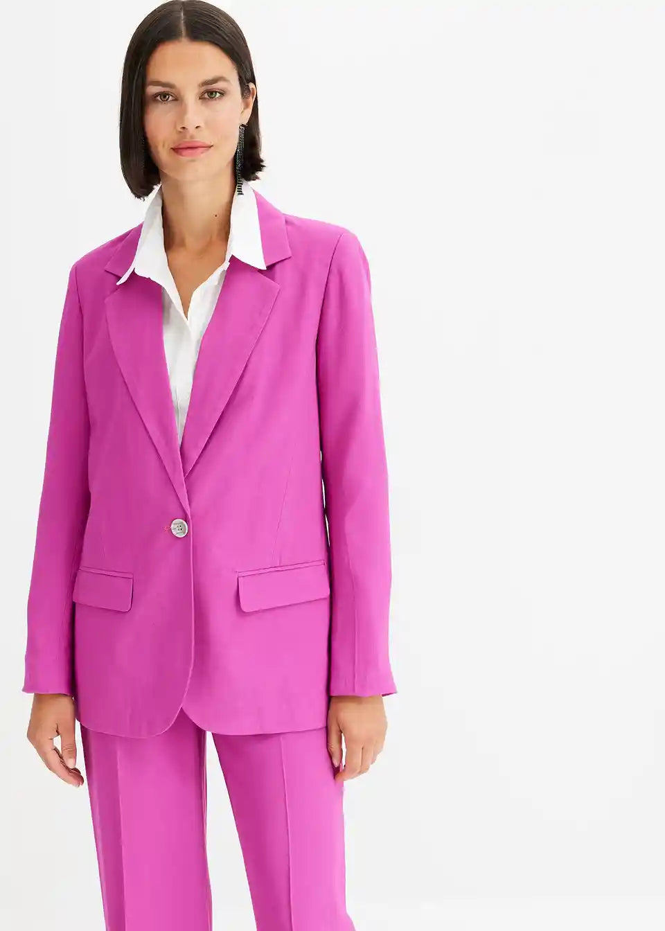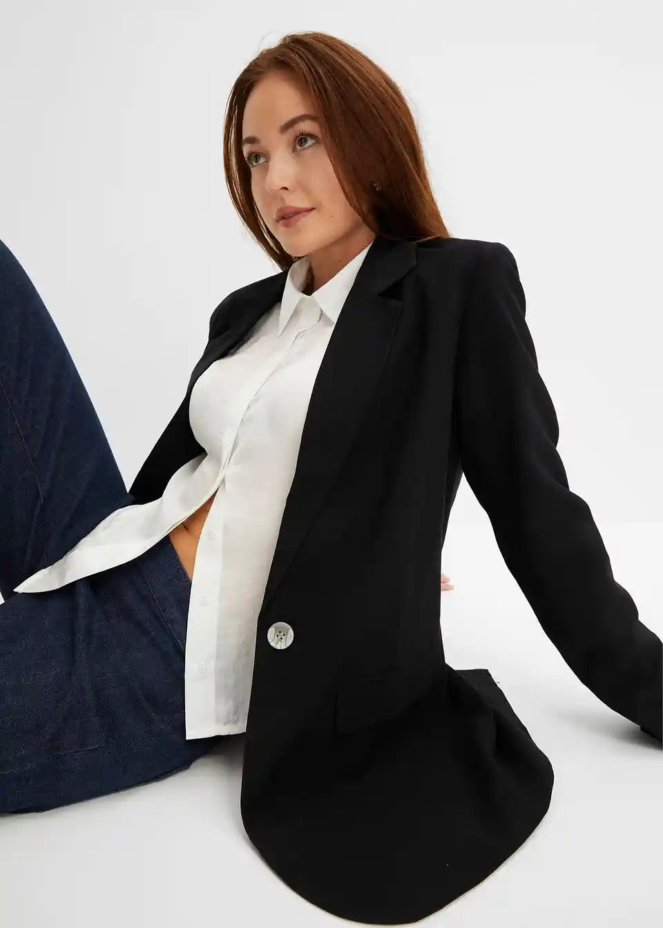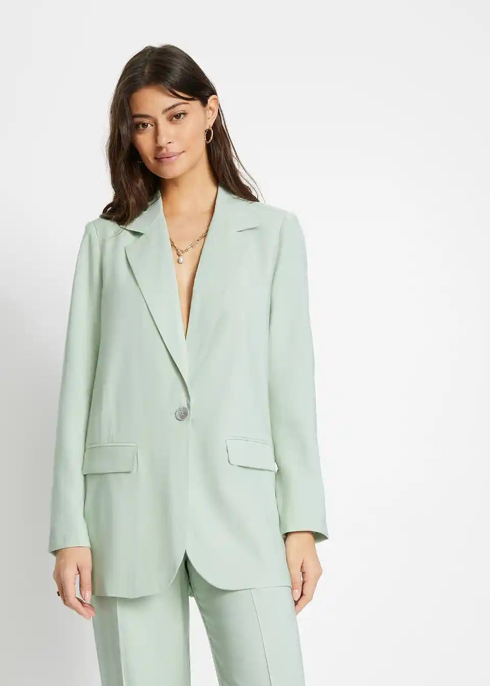 Eleganten blazer, zaprt z dekorativnim gumbom iz imitacije roga.