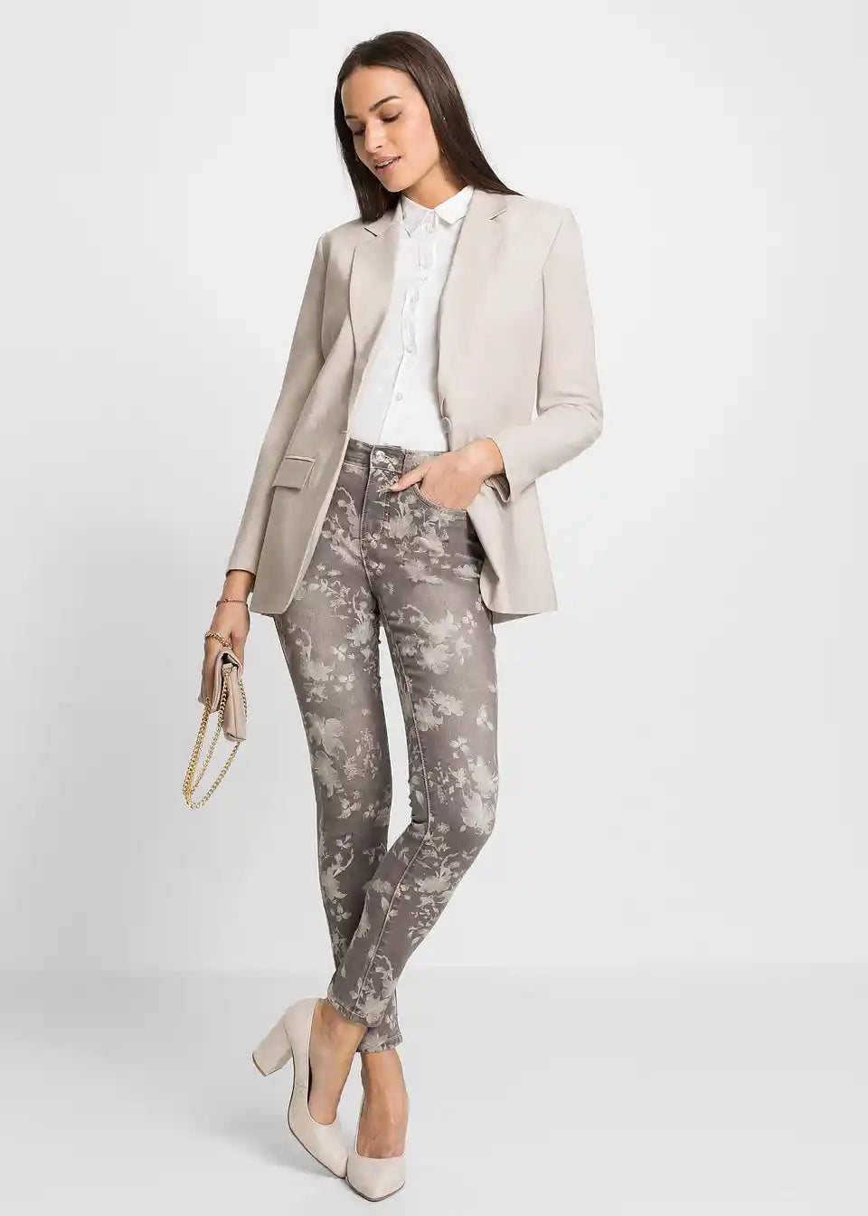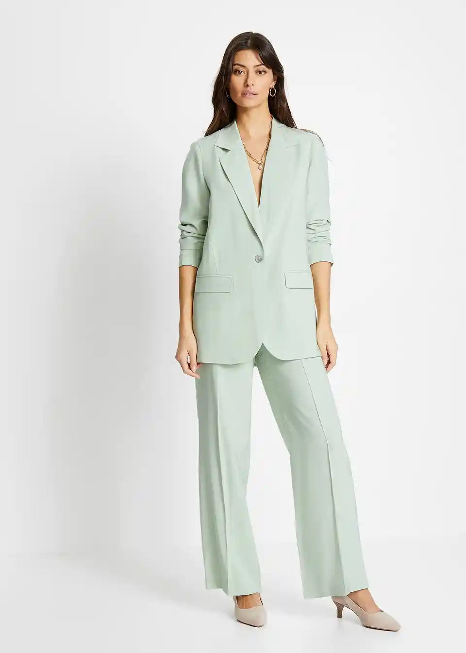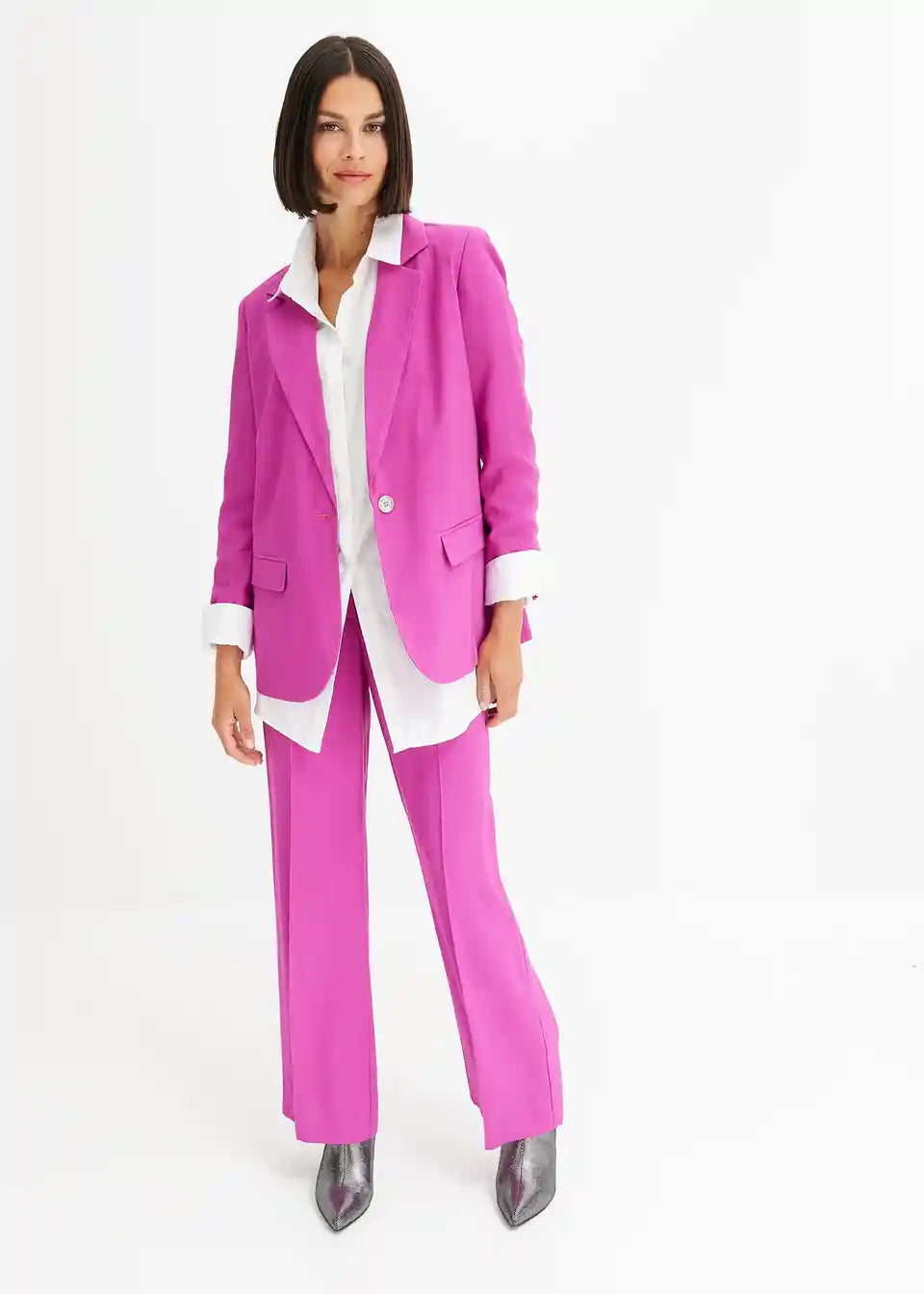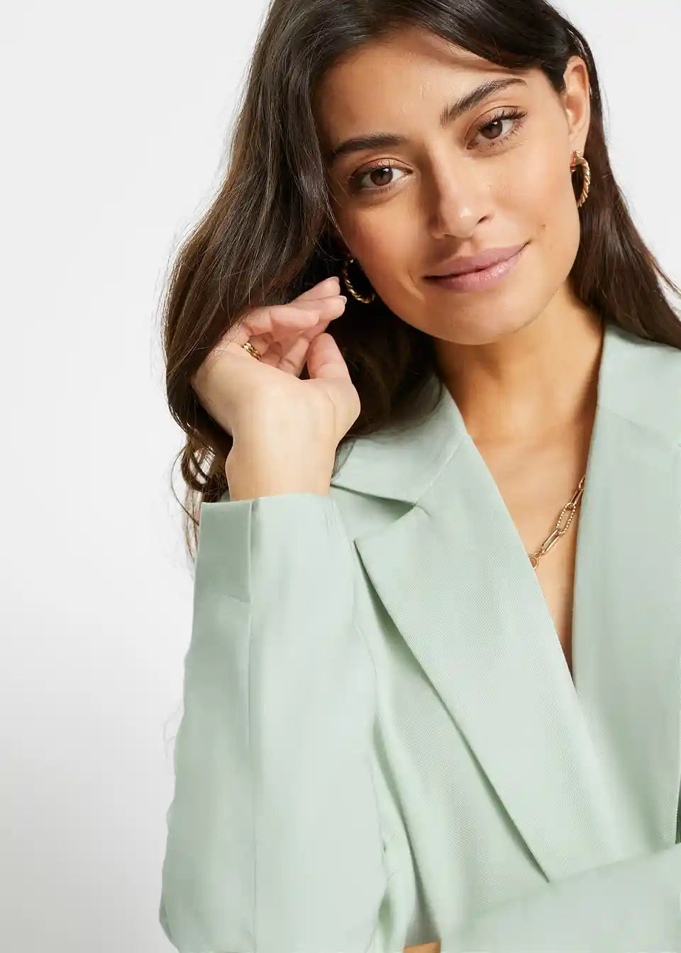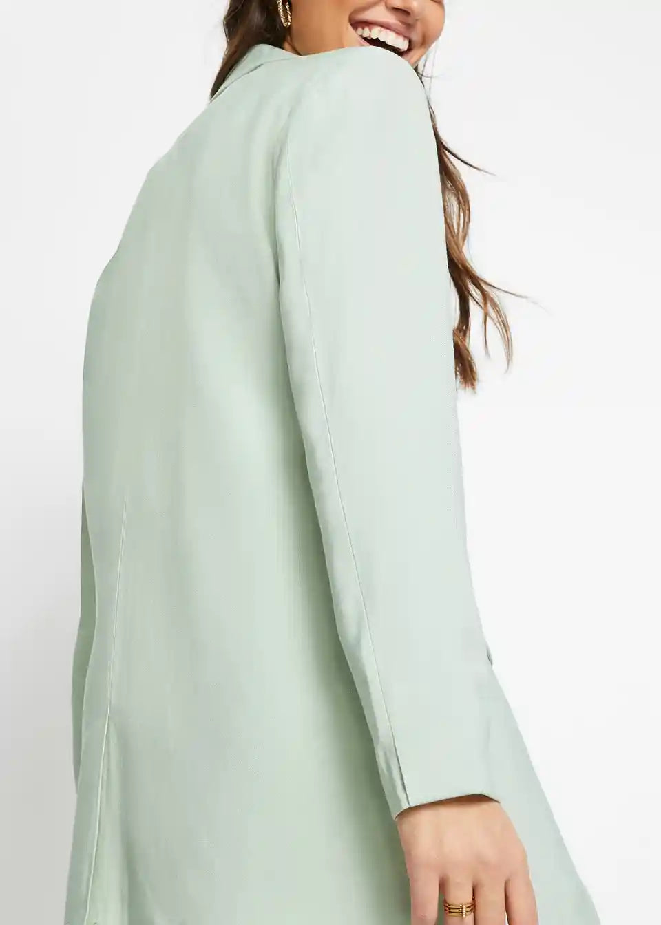 Eleganten blazer, zaprt z dekorativnim gumbom iz imitacije roga.