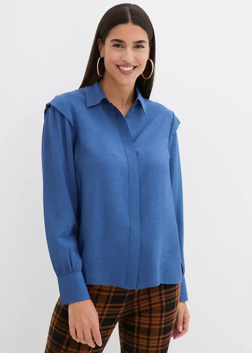 Elegantna bluza s potezno zaponko in posebnim ovratnikom