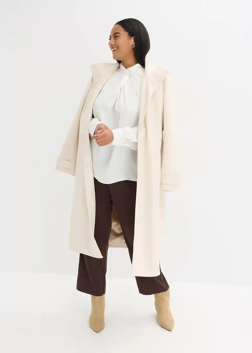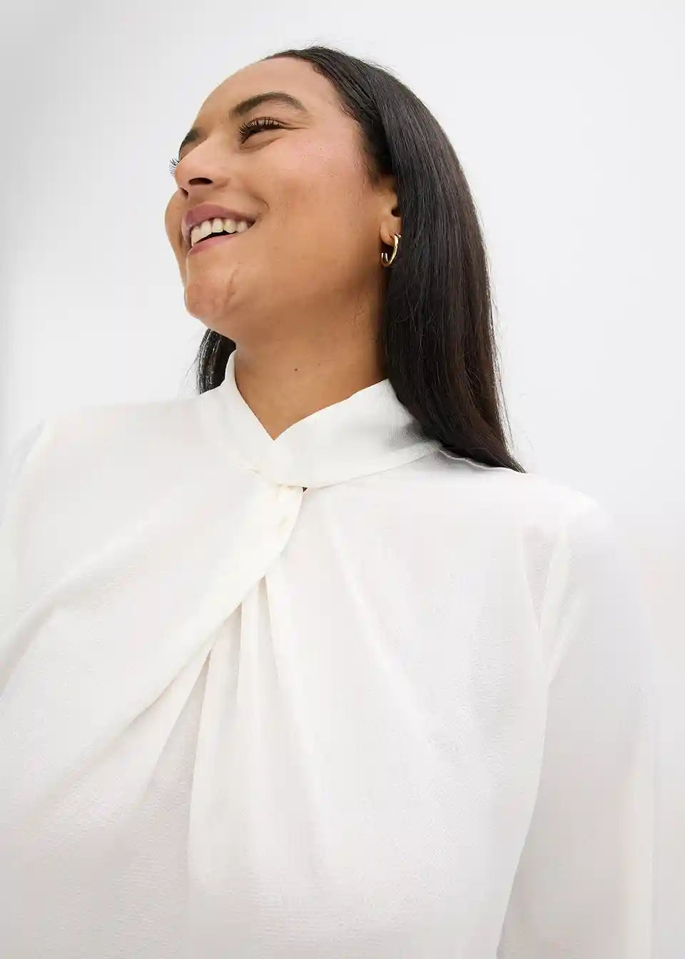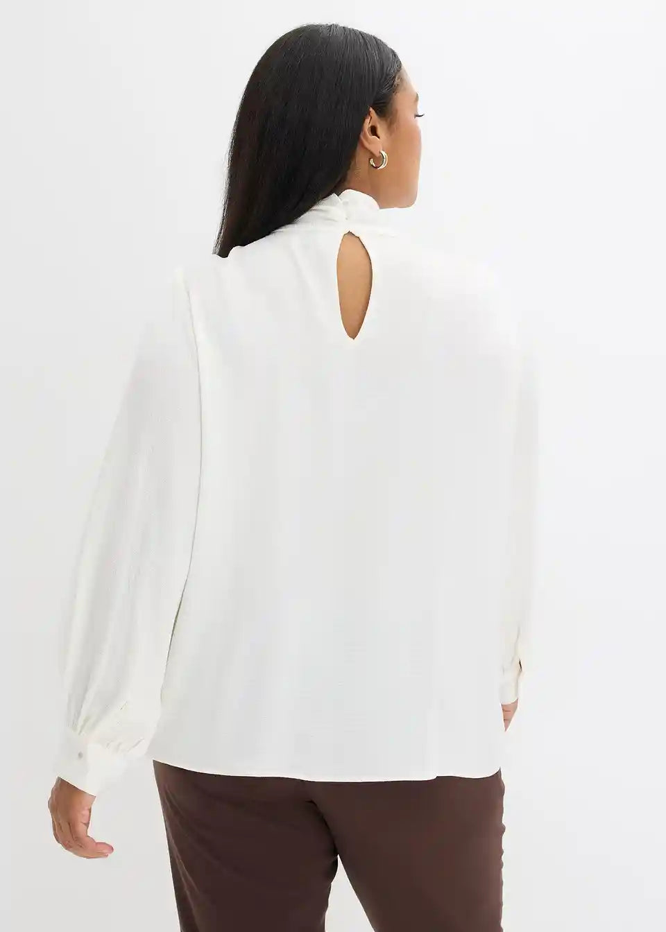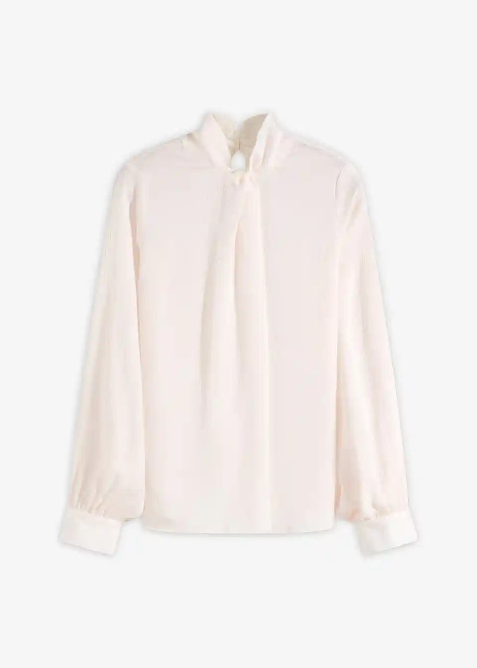 Elegantna bluza s pokončnim ovratnikom in vozli