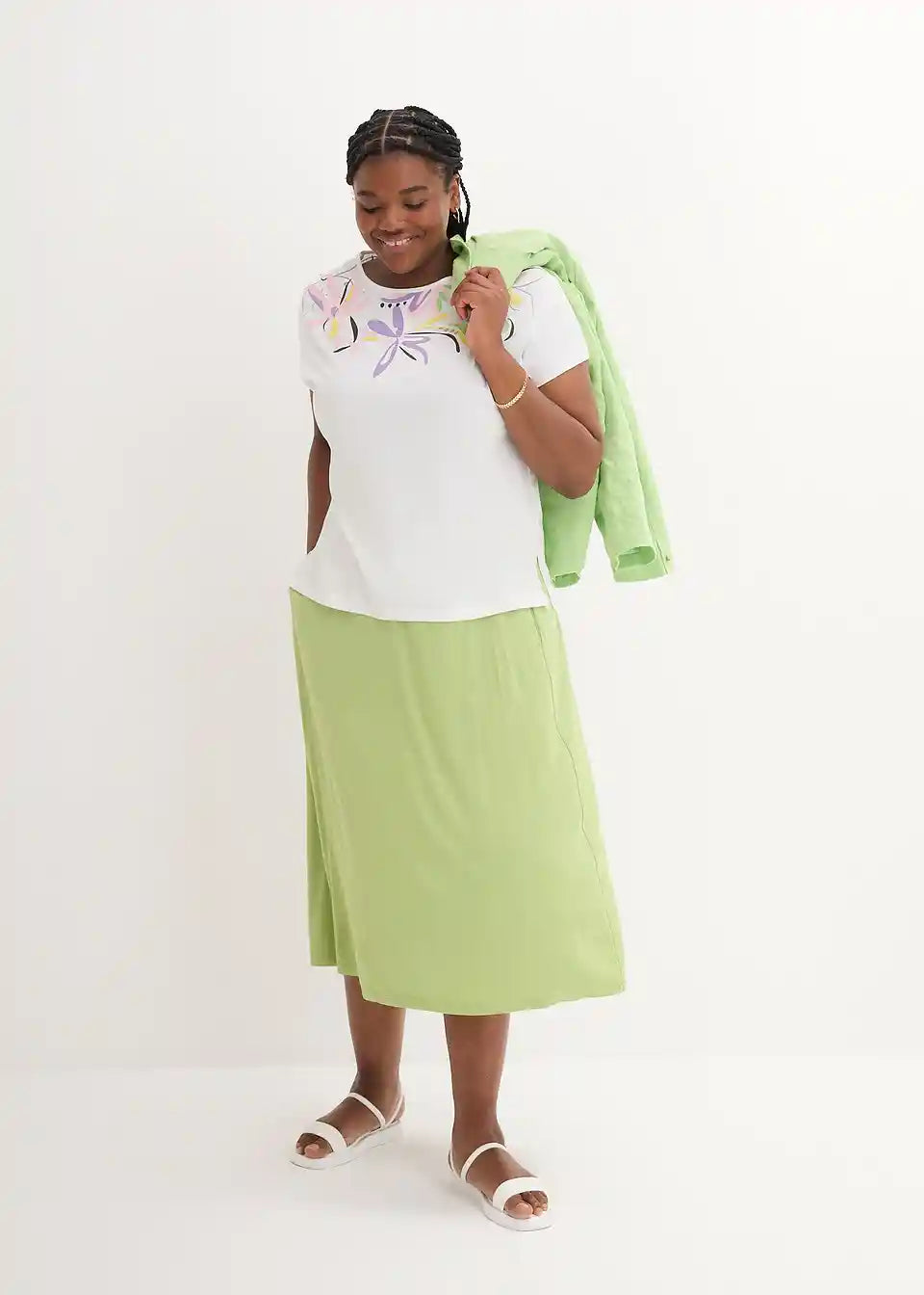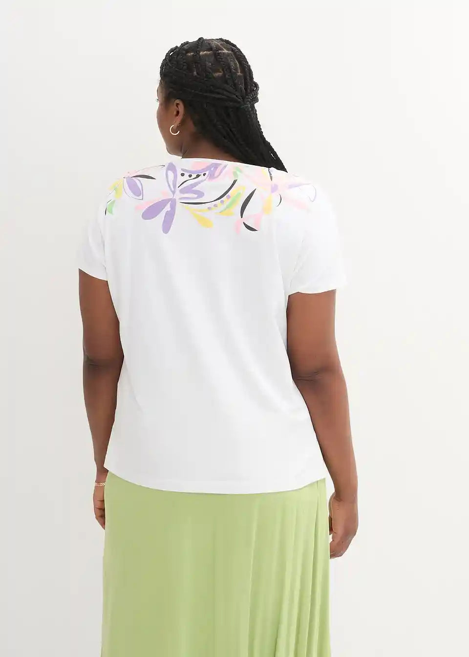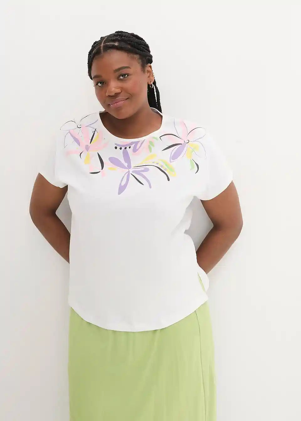 Sproščeno krojena bombažna majica z okroglim izrezom