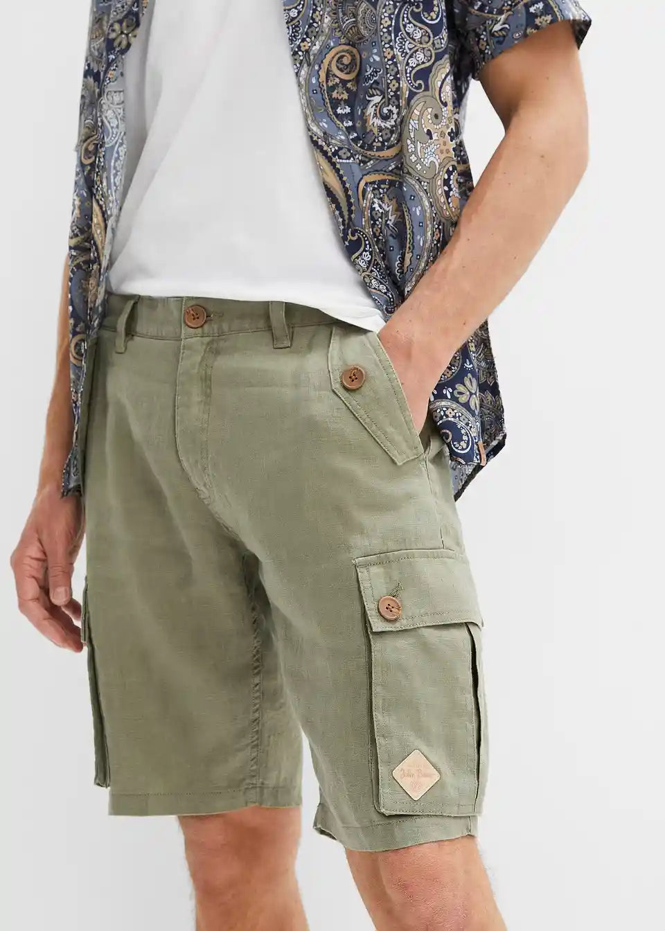 Sproščena Cargo Bermuda iz čistega lanenega materiala