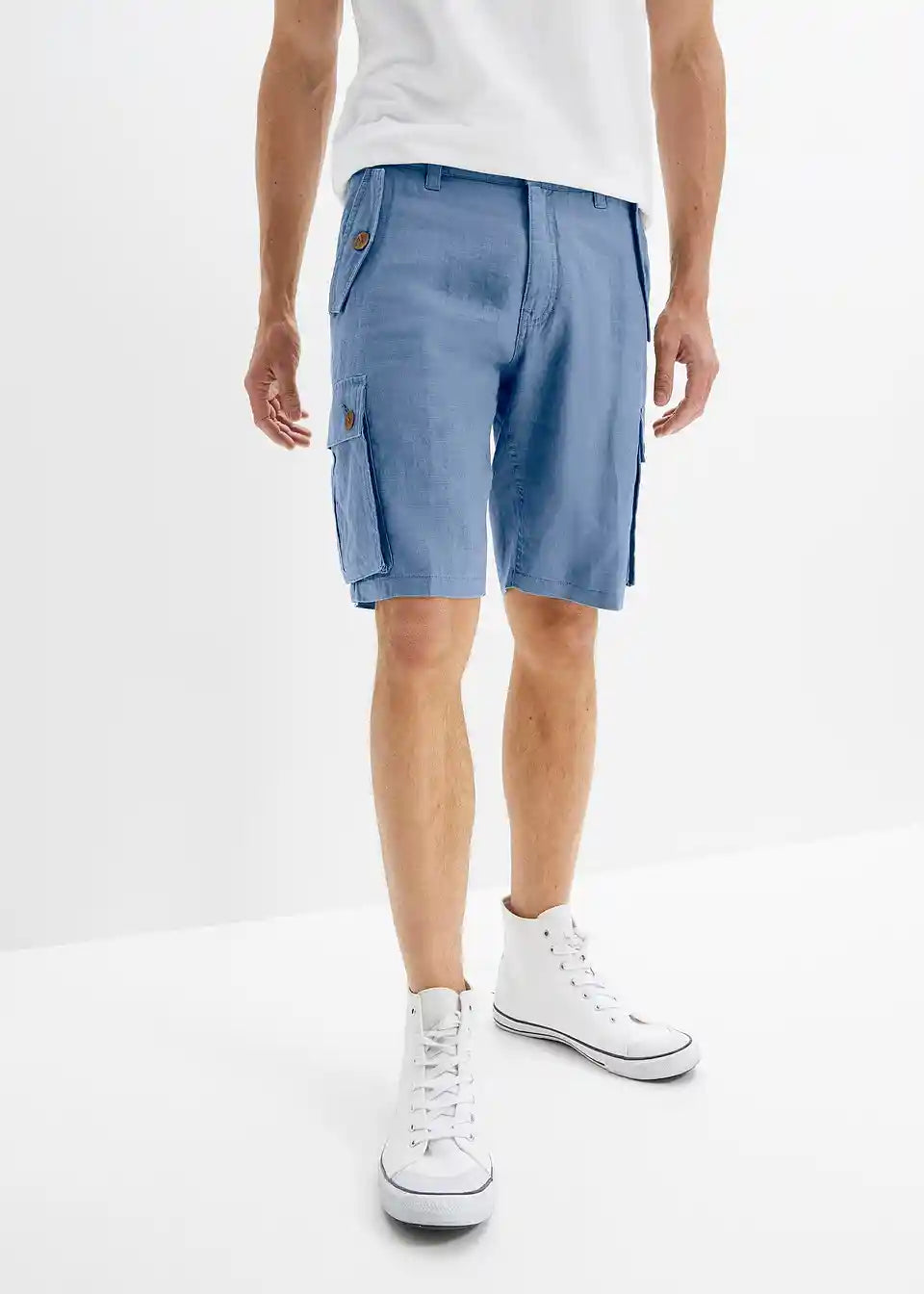 Bermuda hlače s cargo žepi iz platna v udobnem kroju