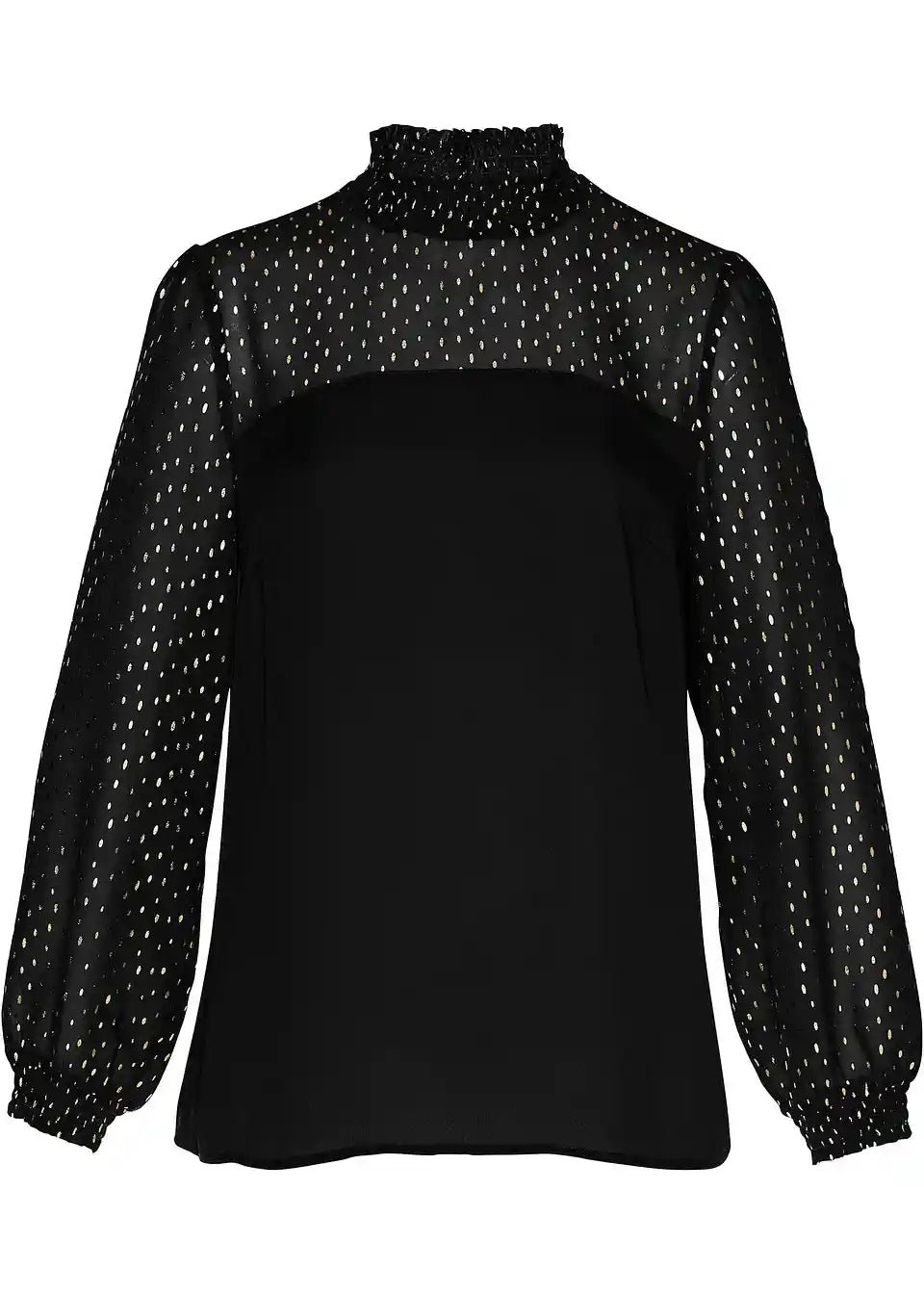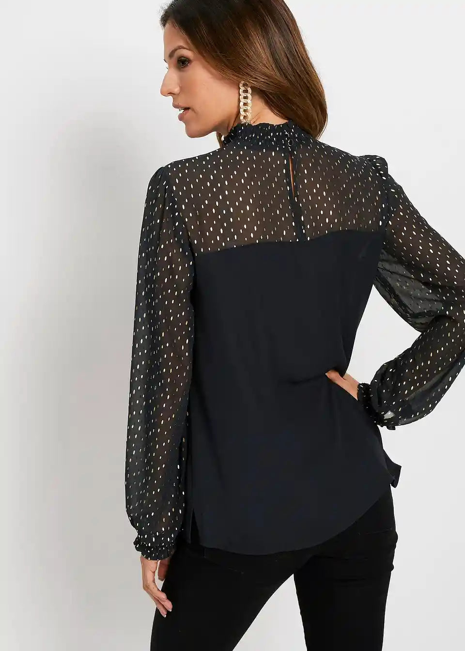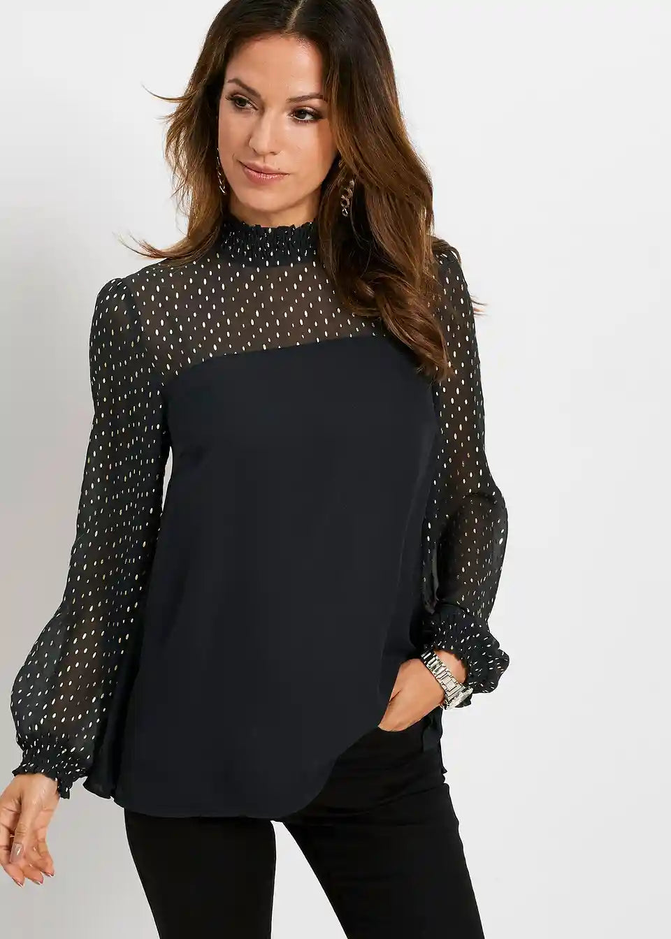 Čudovita tunika s smock detajlom na rokavu in stoječim ovratnikom