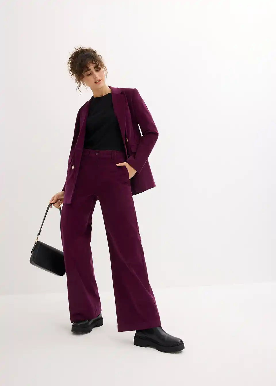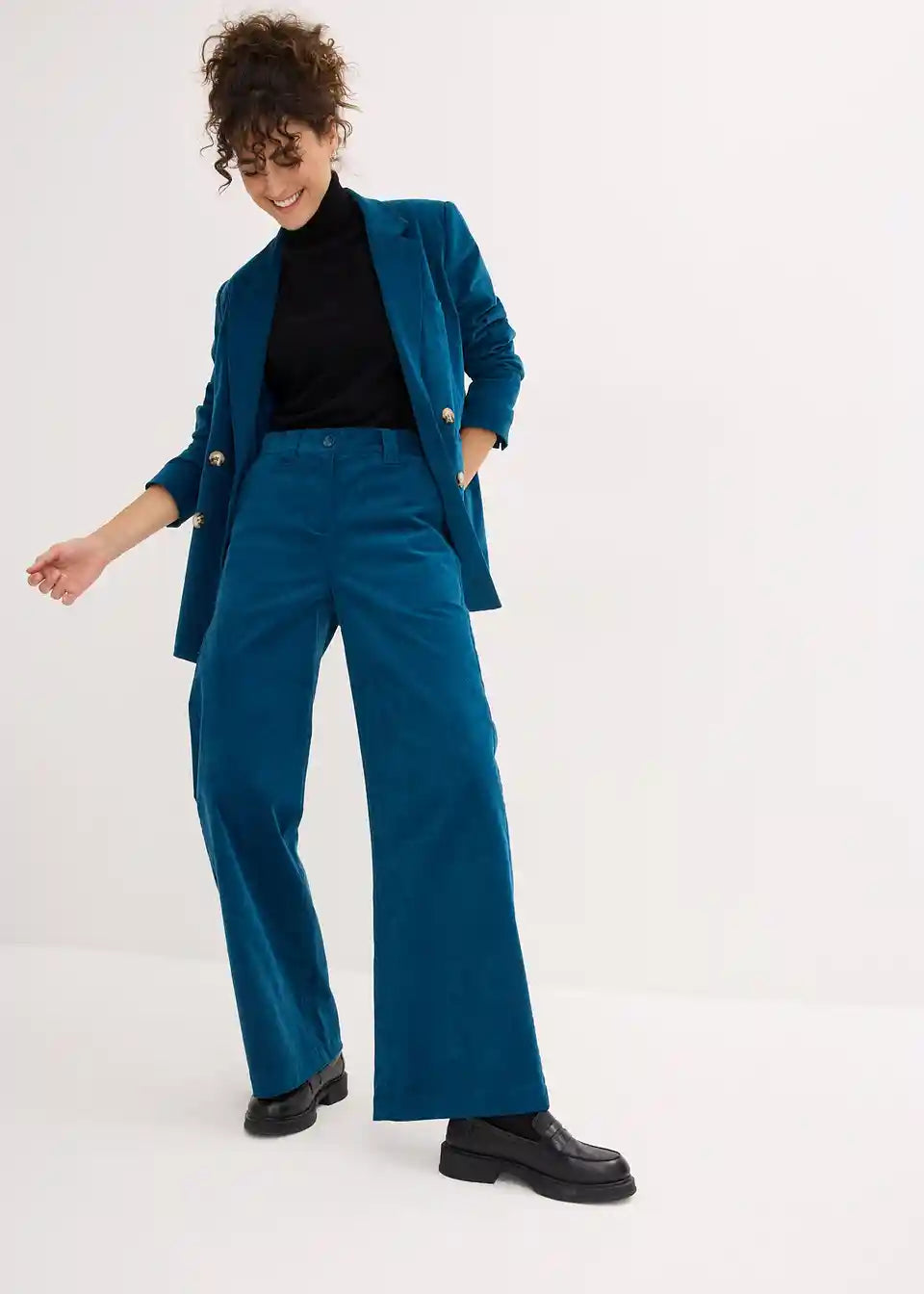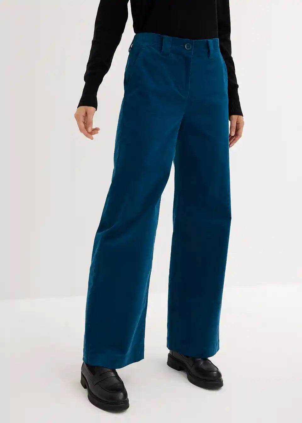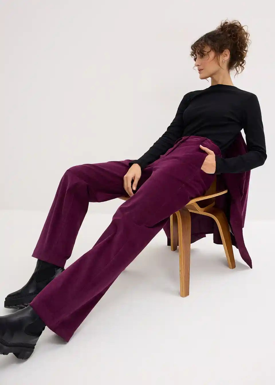 Klasika: Cord-Palazzohlače iz organskega bombaža, z zankami za pas in žepi