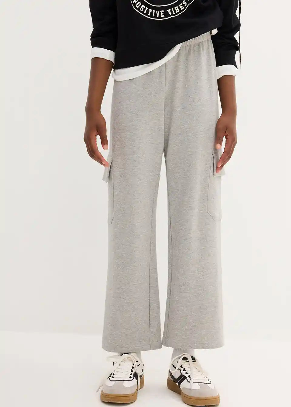 Udobne dekliške jogging hlače z elastično obrobo in našitimi žepi.