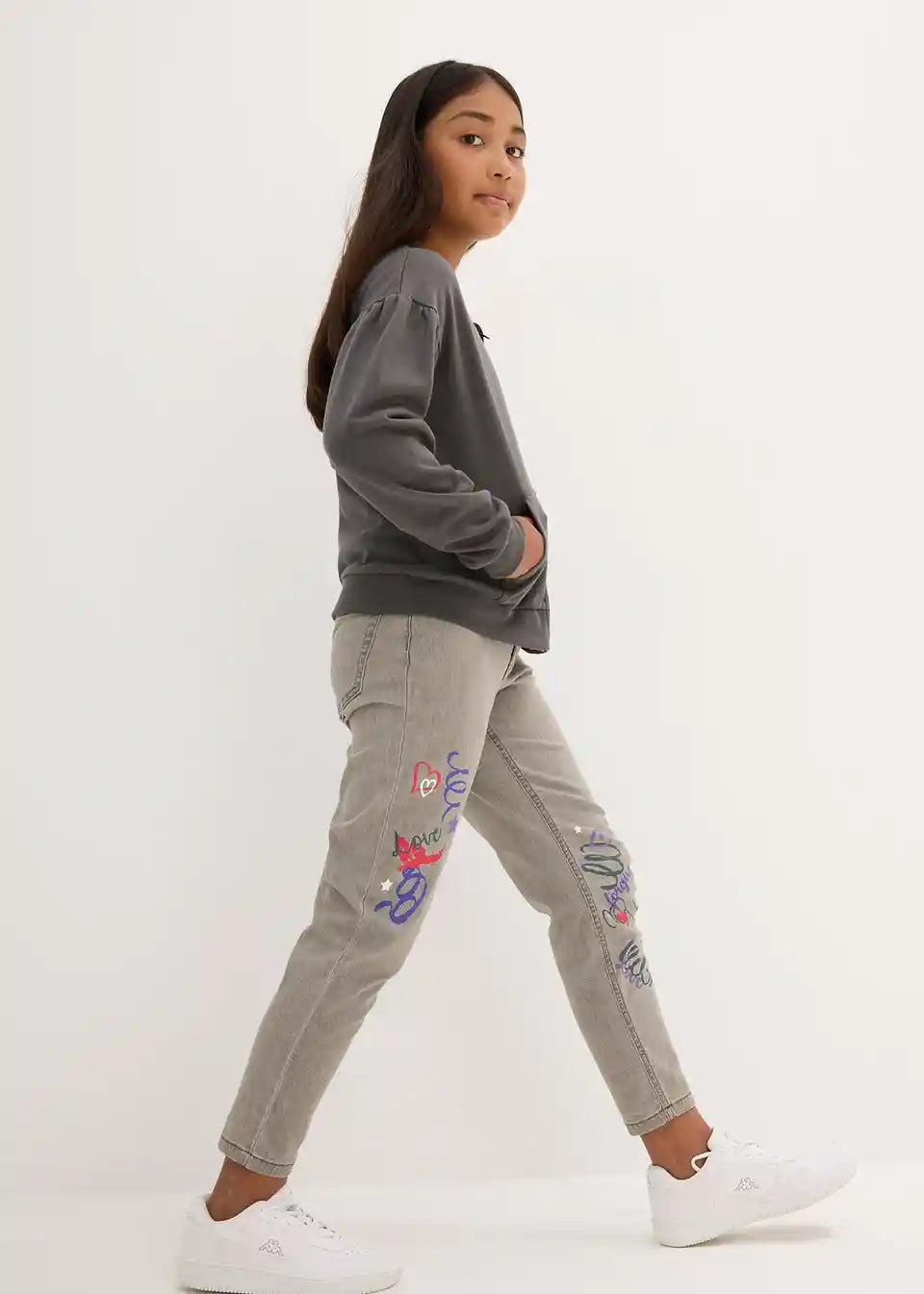 Modne dekliške Mom-Jeans s kul potiski