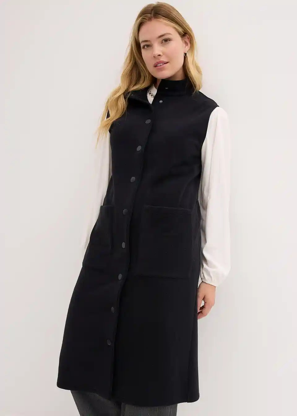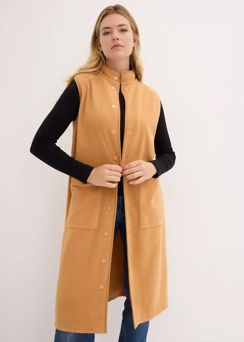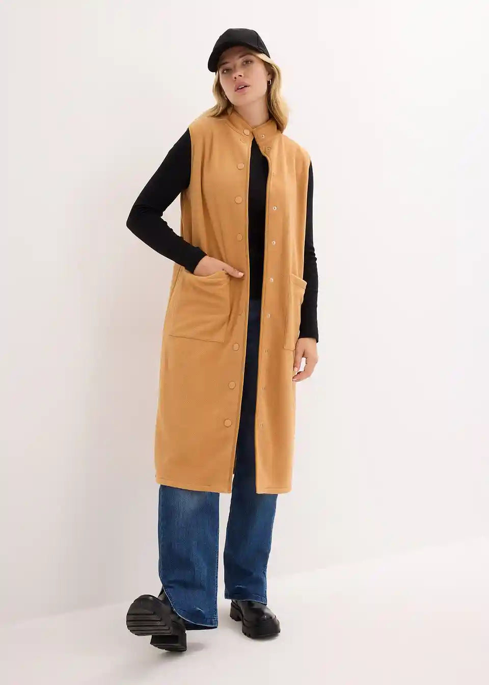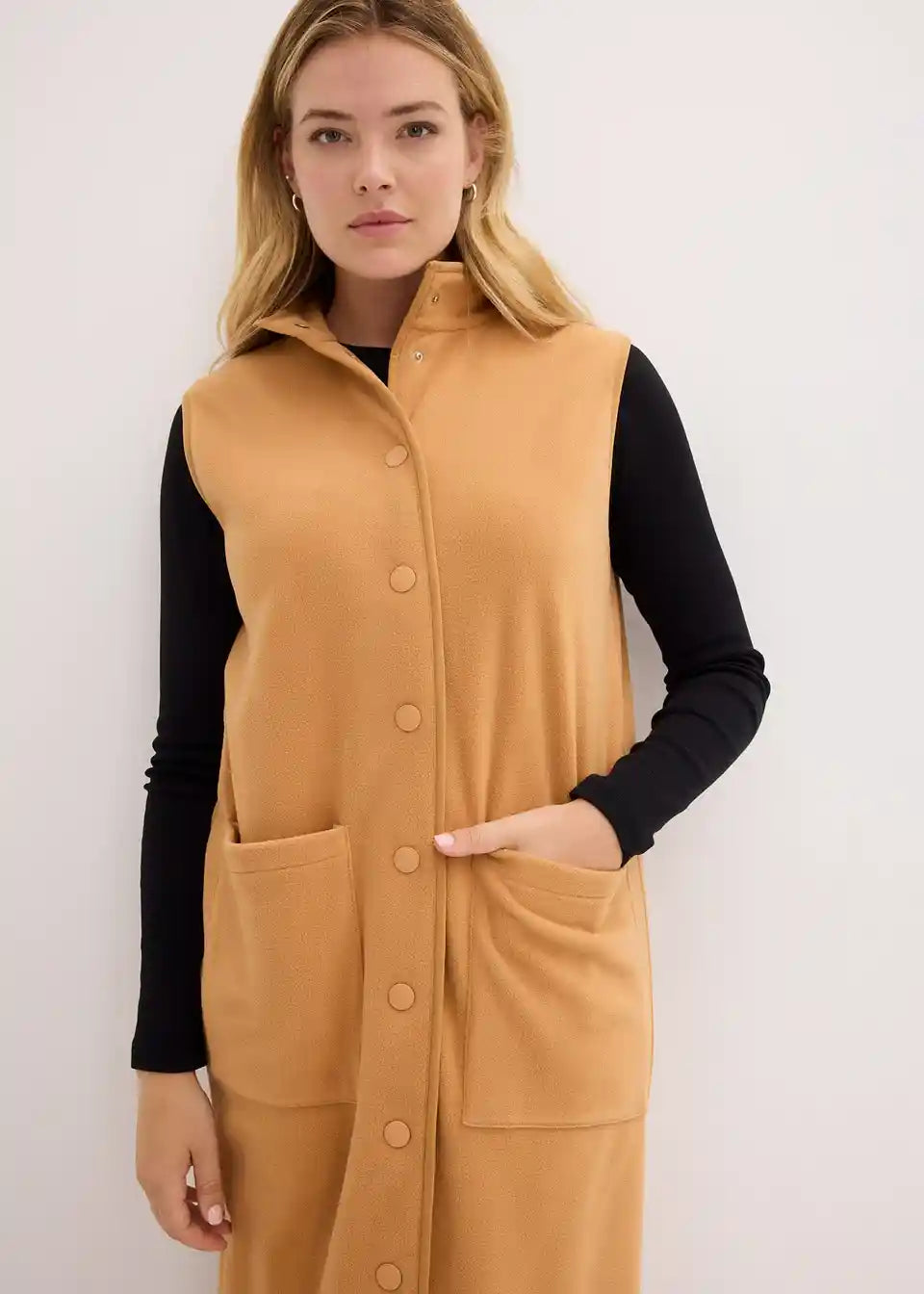 Udoben fleece telovnik z gumbi in stranskimi žepi