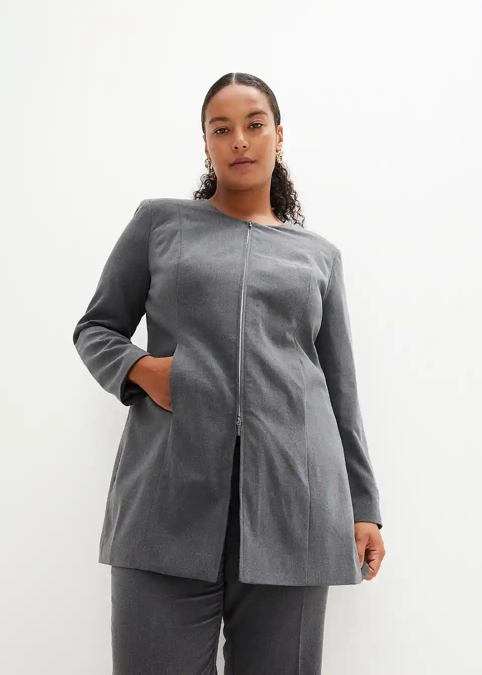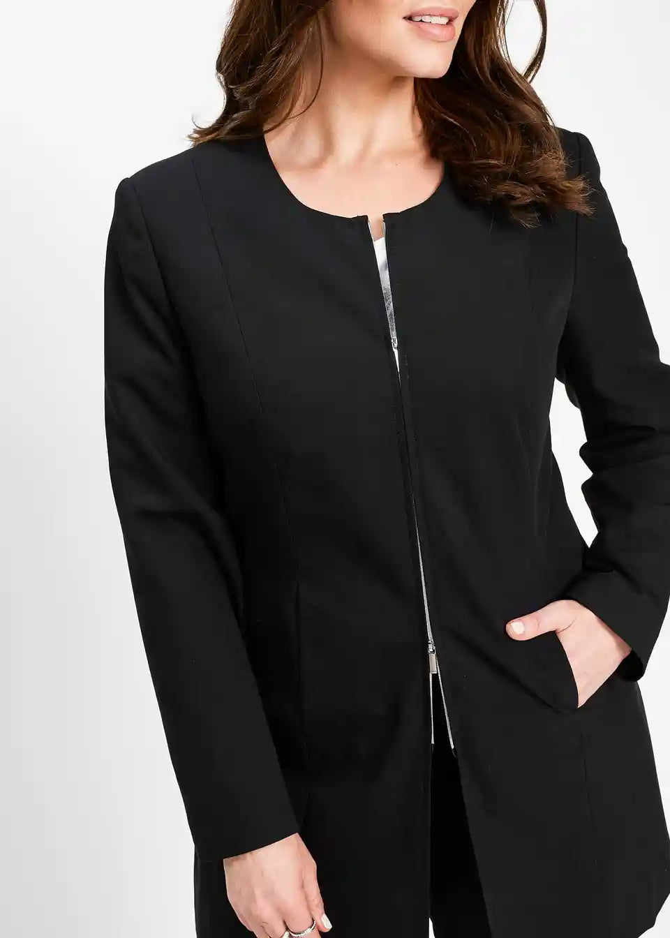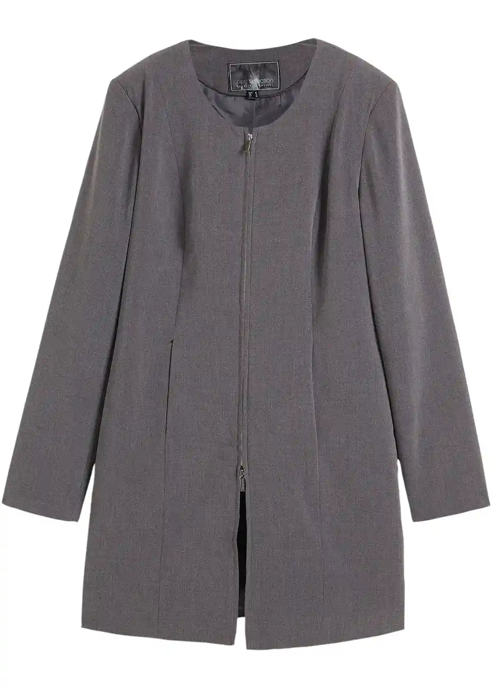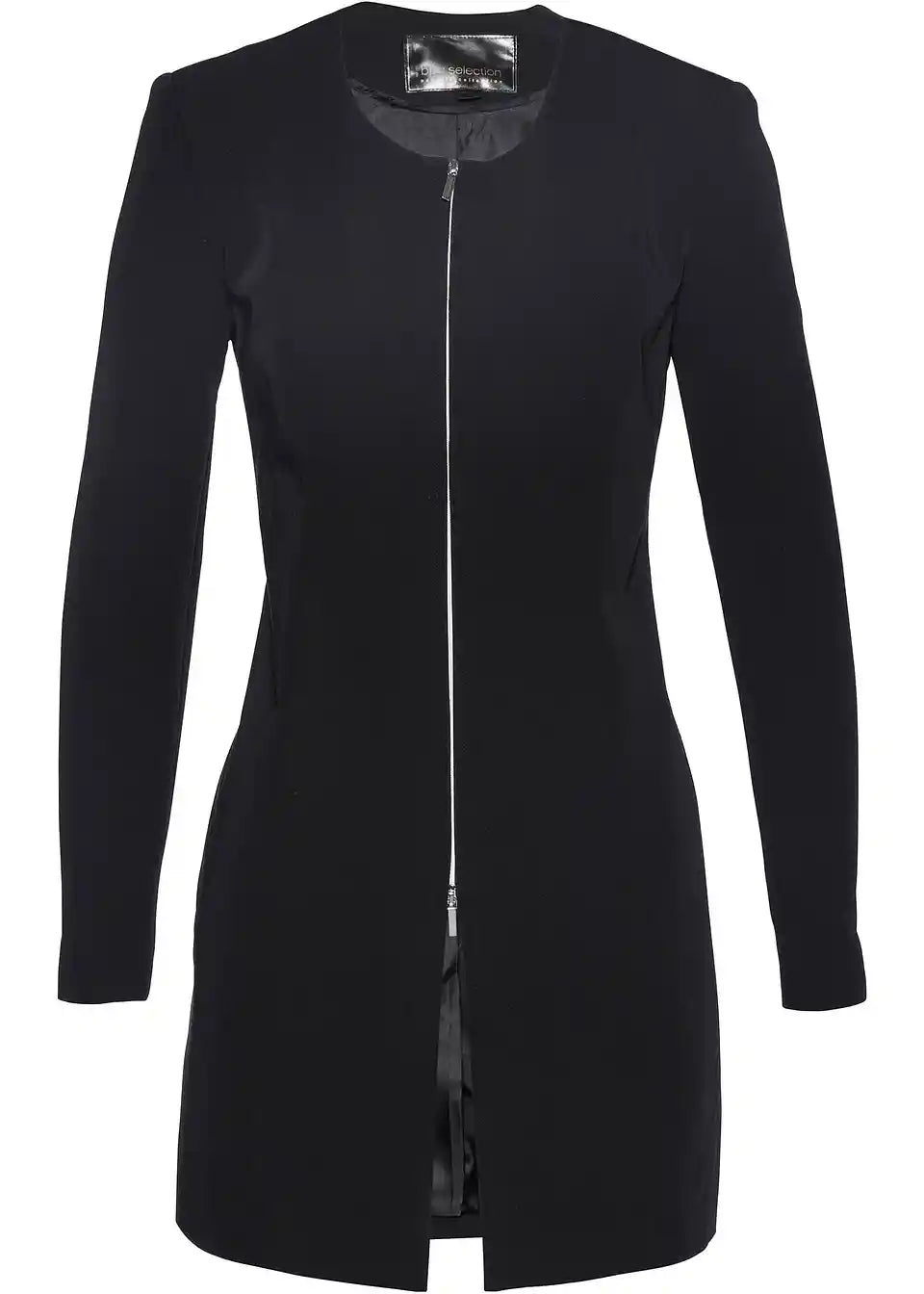 Klasični Dolgi Blazer brez ovratnika z zadrgo